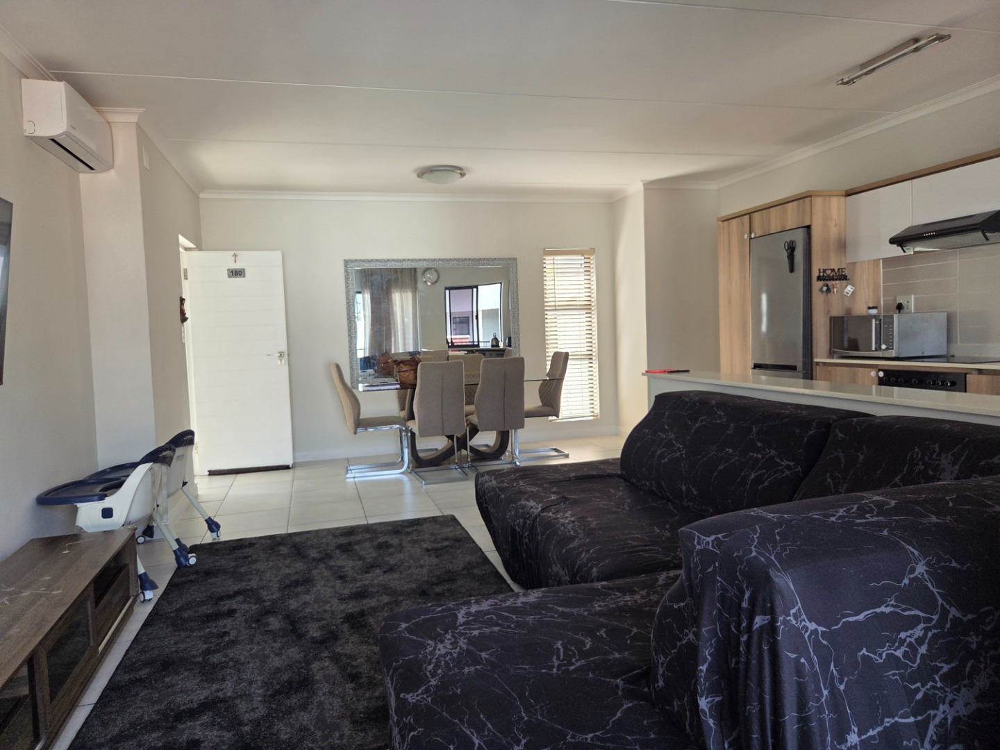 * Open-Plan Living and Dining Area with Air Conditioning