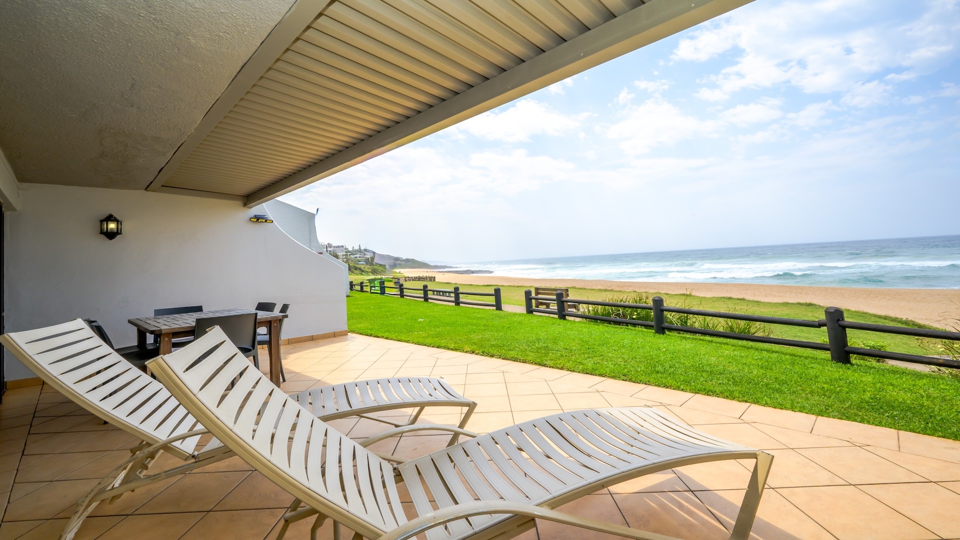 The garden and patio area are perfect for outdoor living — whether you’re enjoying a quiet morning coffee, watching dolphins in the surf, or hosting a relaxed afternoon braai with friends. The apartment also presents the option to update and personalise the interiors to suit your own coastal style.