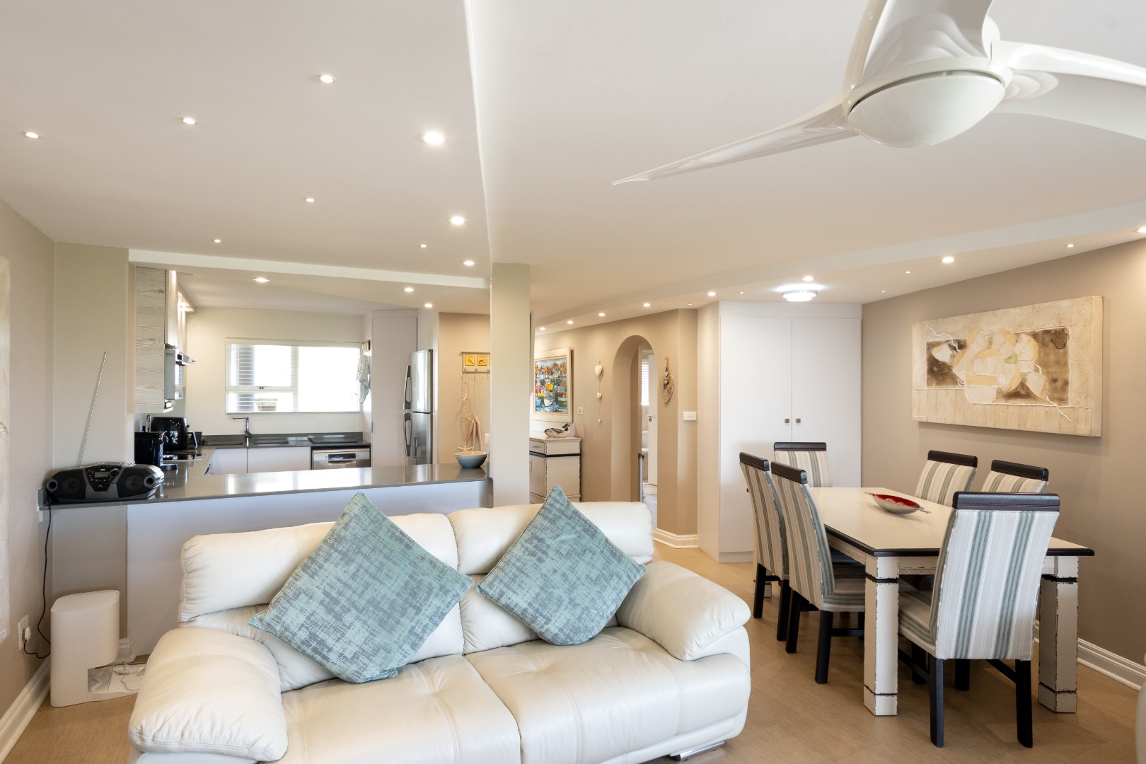 Each of the three spacious bedrooms is bathed in an abundance of natural light, fostering an inviting and serene atmosphere, complemented by two meticulously designed bathrooms, including a luxurious en-suite. The open-plan living area seamlessly extends to a private patio, where breathtaking, sweeping sea views provide a magnificent backdrop for tranquil mornings, serene afternoons, and unforgettable sundowners. Imagine the gentle sea breeze and the rhythmic sound of waves enhancing every moment.