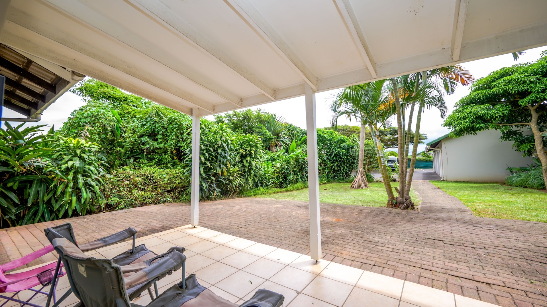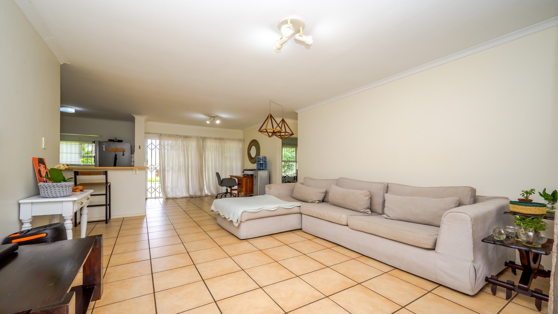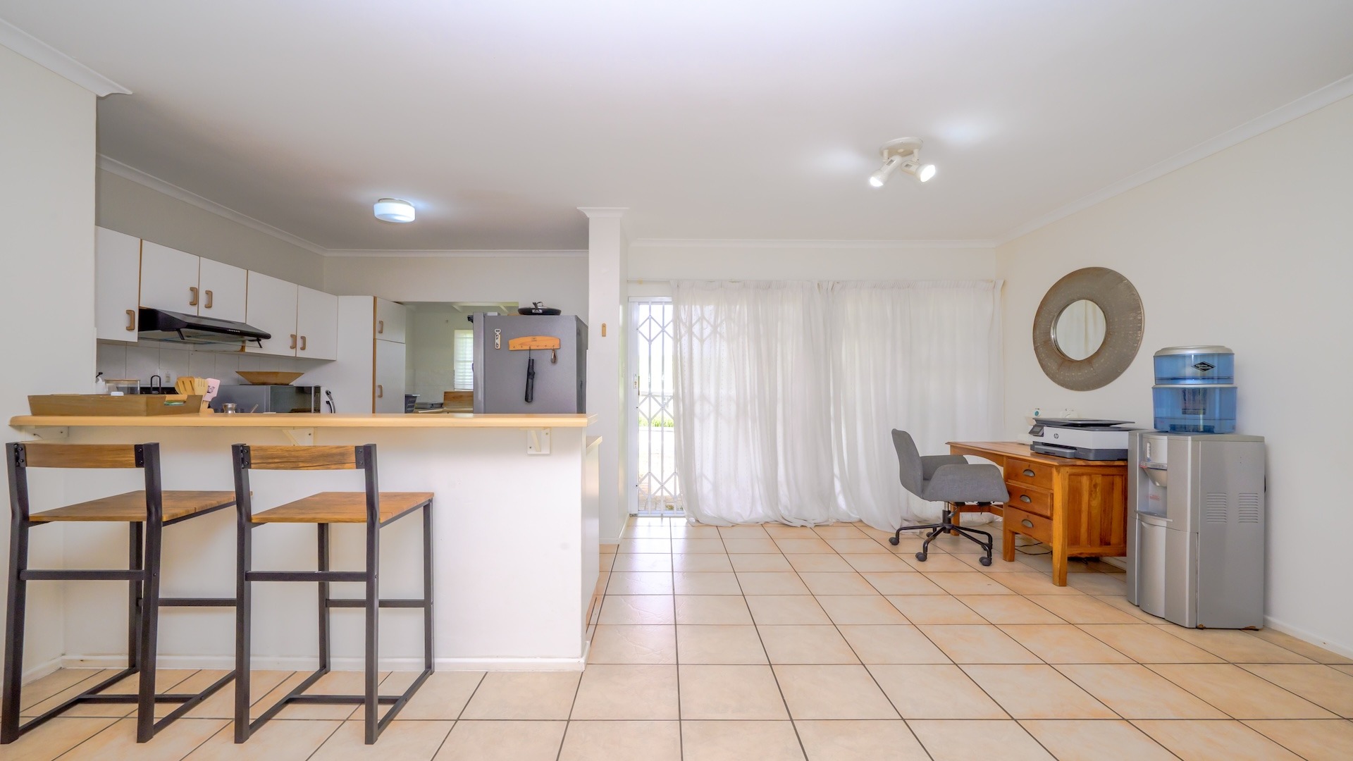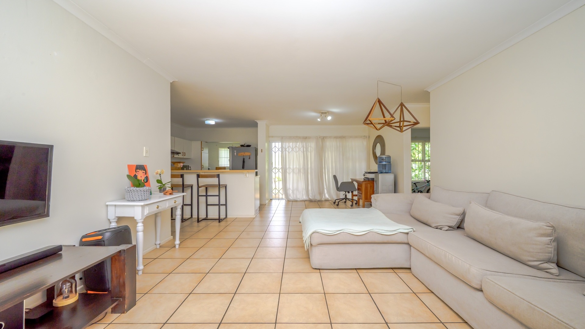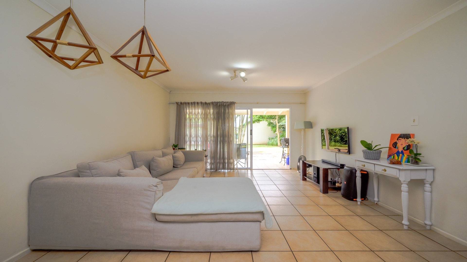 kitchen, dining and lounge area that flows out onto a patio and private garden, ideal for relaxed indoor-outdoor living.