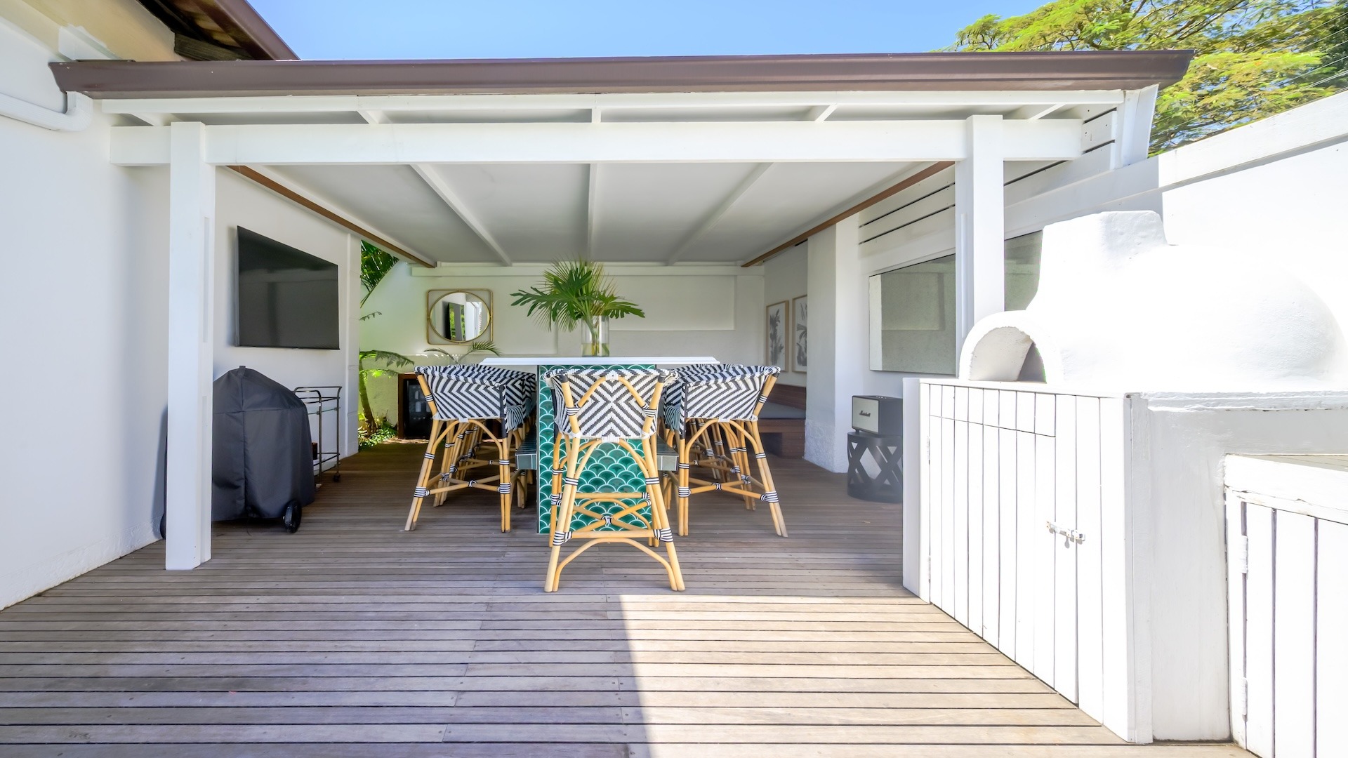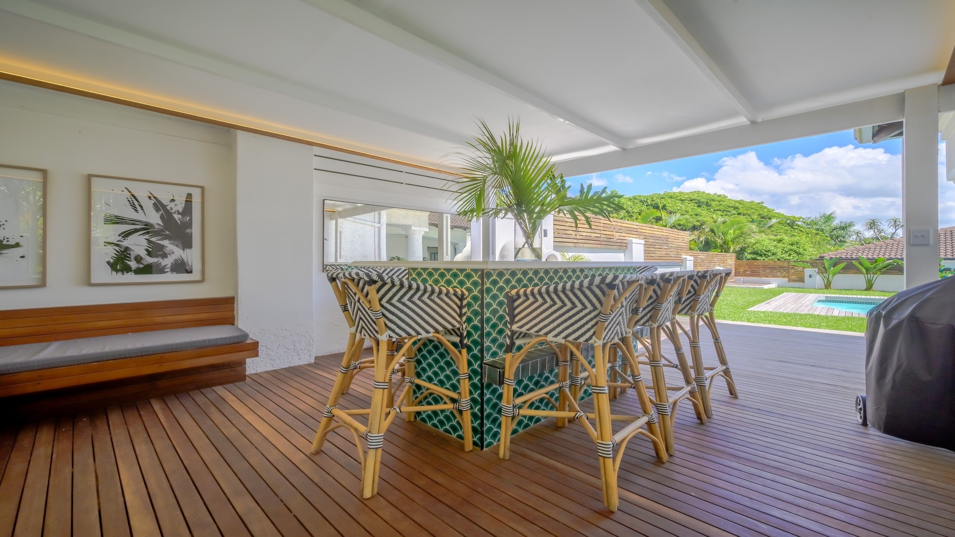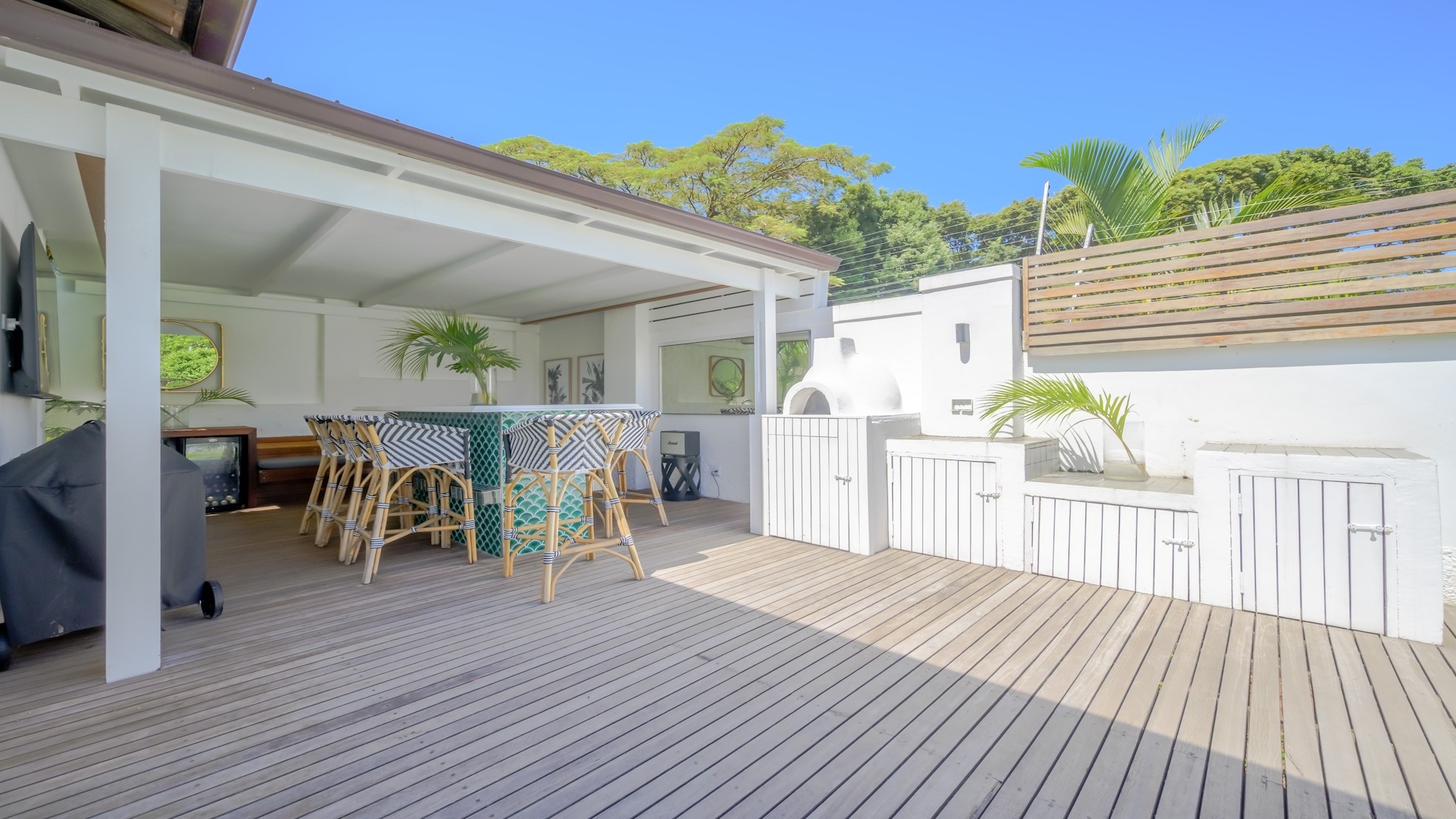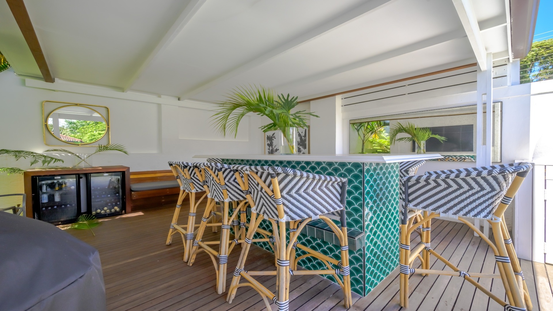 Designed with entertainers in mind, the home boasts a dedicated bar area that flows out to the outdoor entertainment space overlooking a
