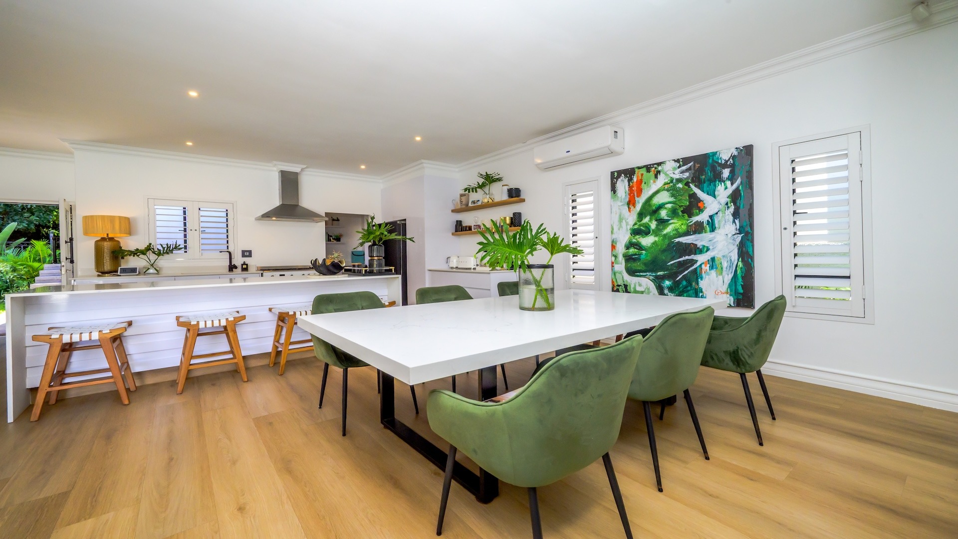 open-plan layout seamlessly connects the kitchen, dining, and living areas, making it ideal for both everyday living and entertaining.