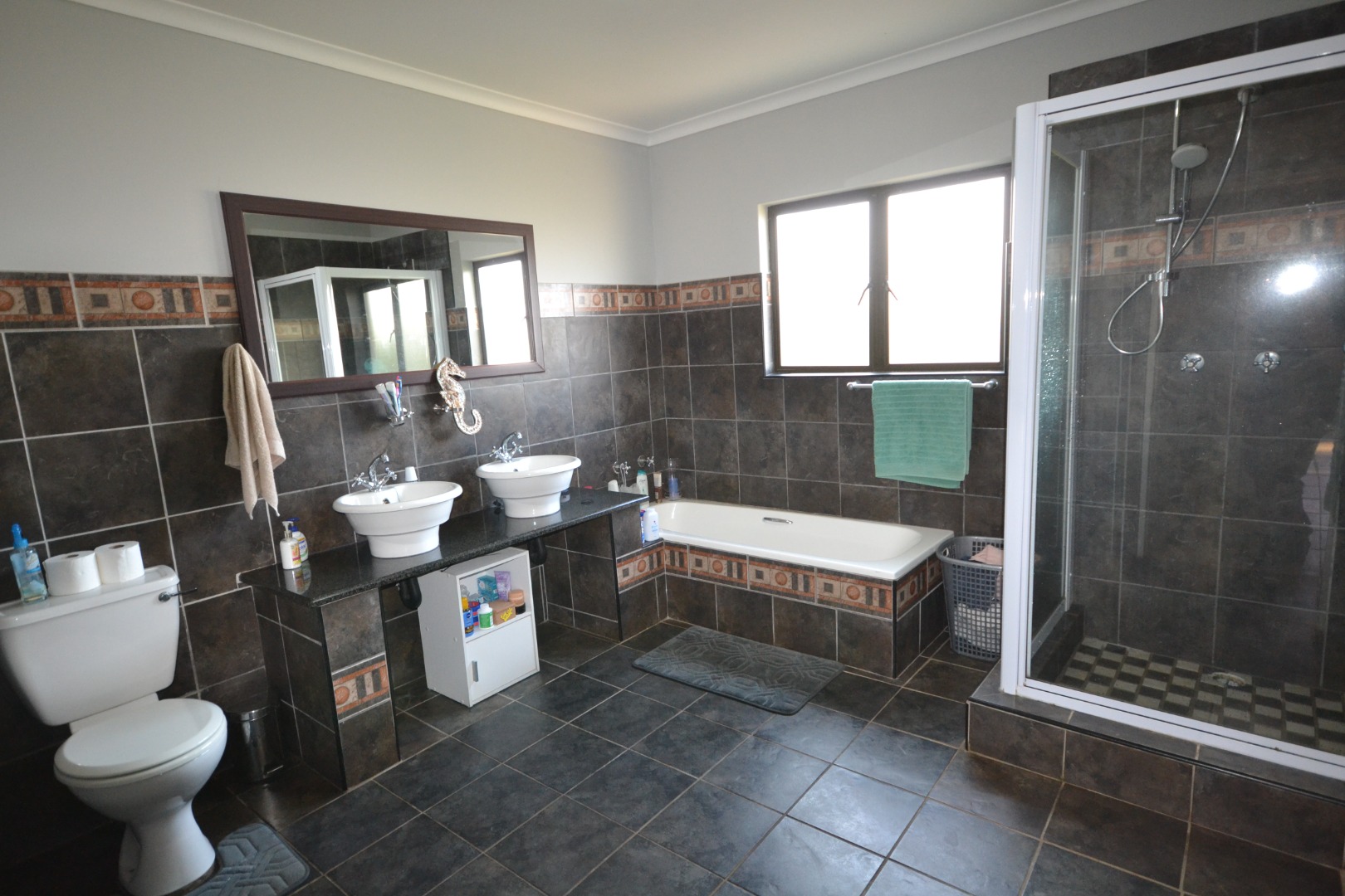 On the ground level, separate from the main house is a beautiful 2 bedroom, self-contained cottage with a patio and braai area.