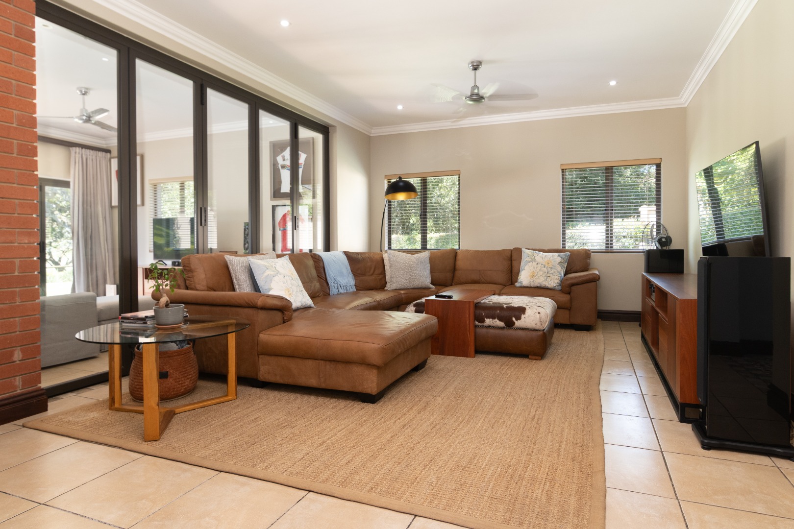 Entertain in style with an indoor gas braai, gas fireplace for cozy evenings, and glass stack doors opening to a smaller TV or entertainment room. The living spaces flow effortlessly outdoors to a sparkling pool, firepit, built-in seating, and a manicured garden—ideal for hosting family and friends.