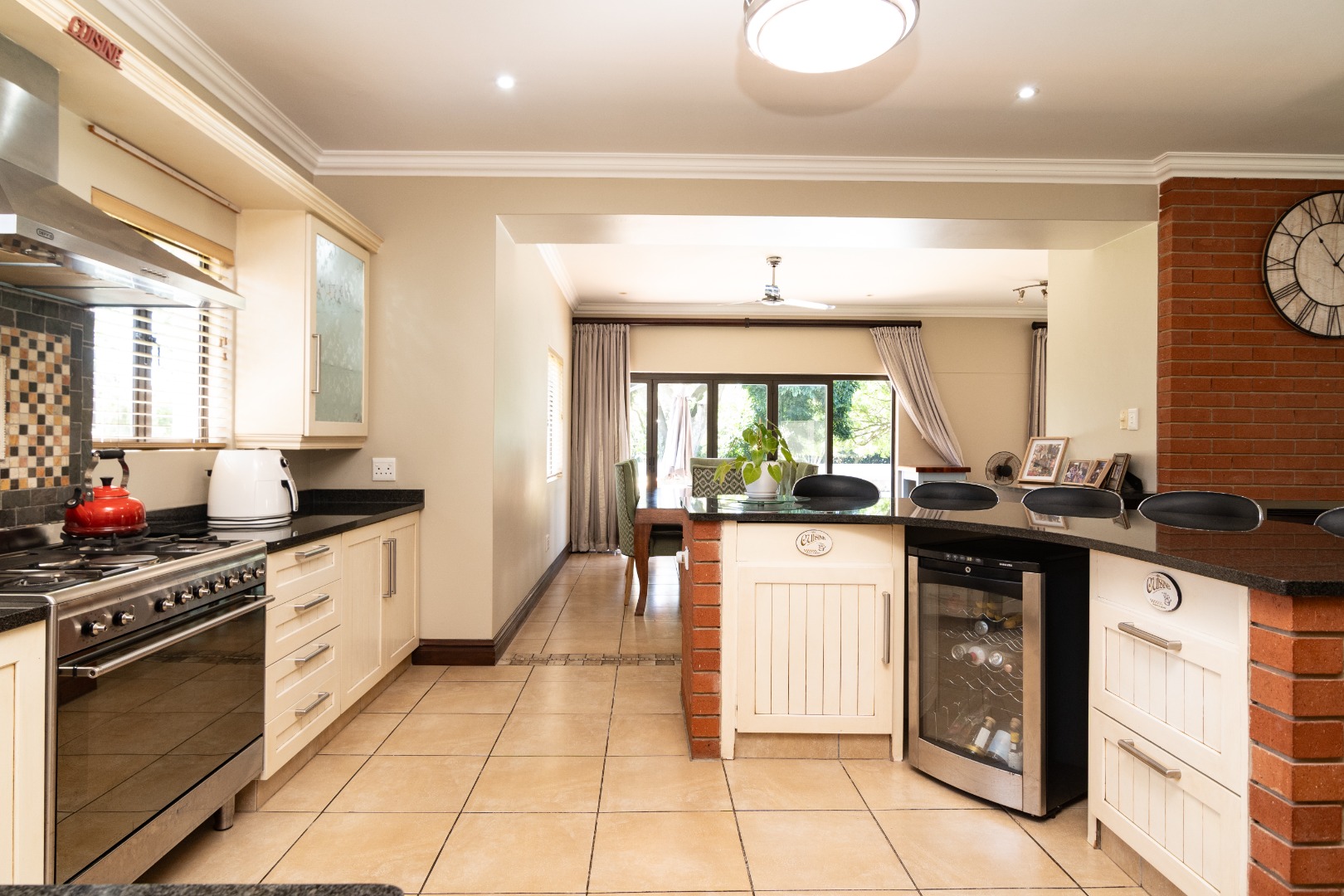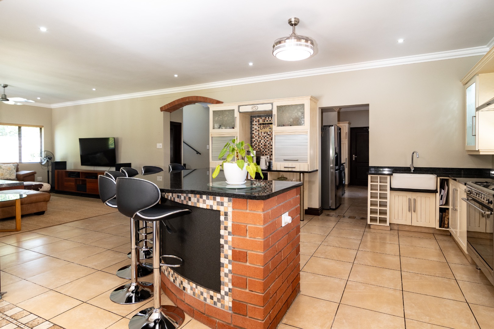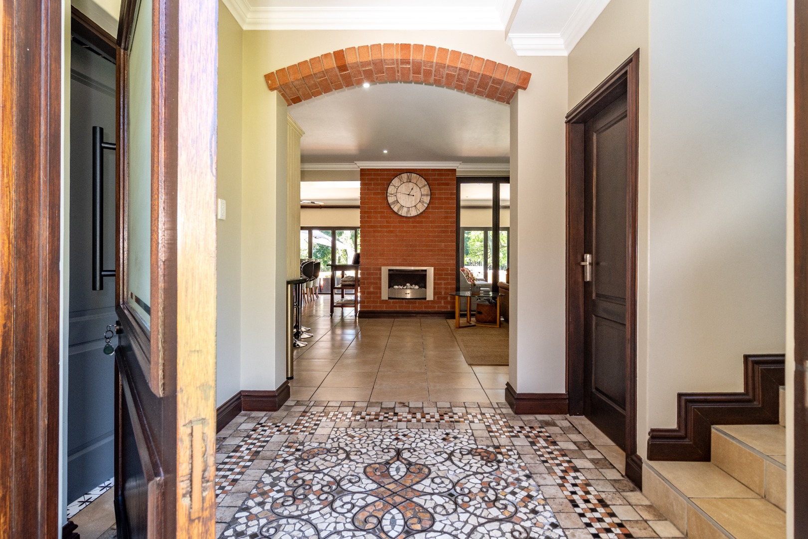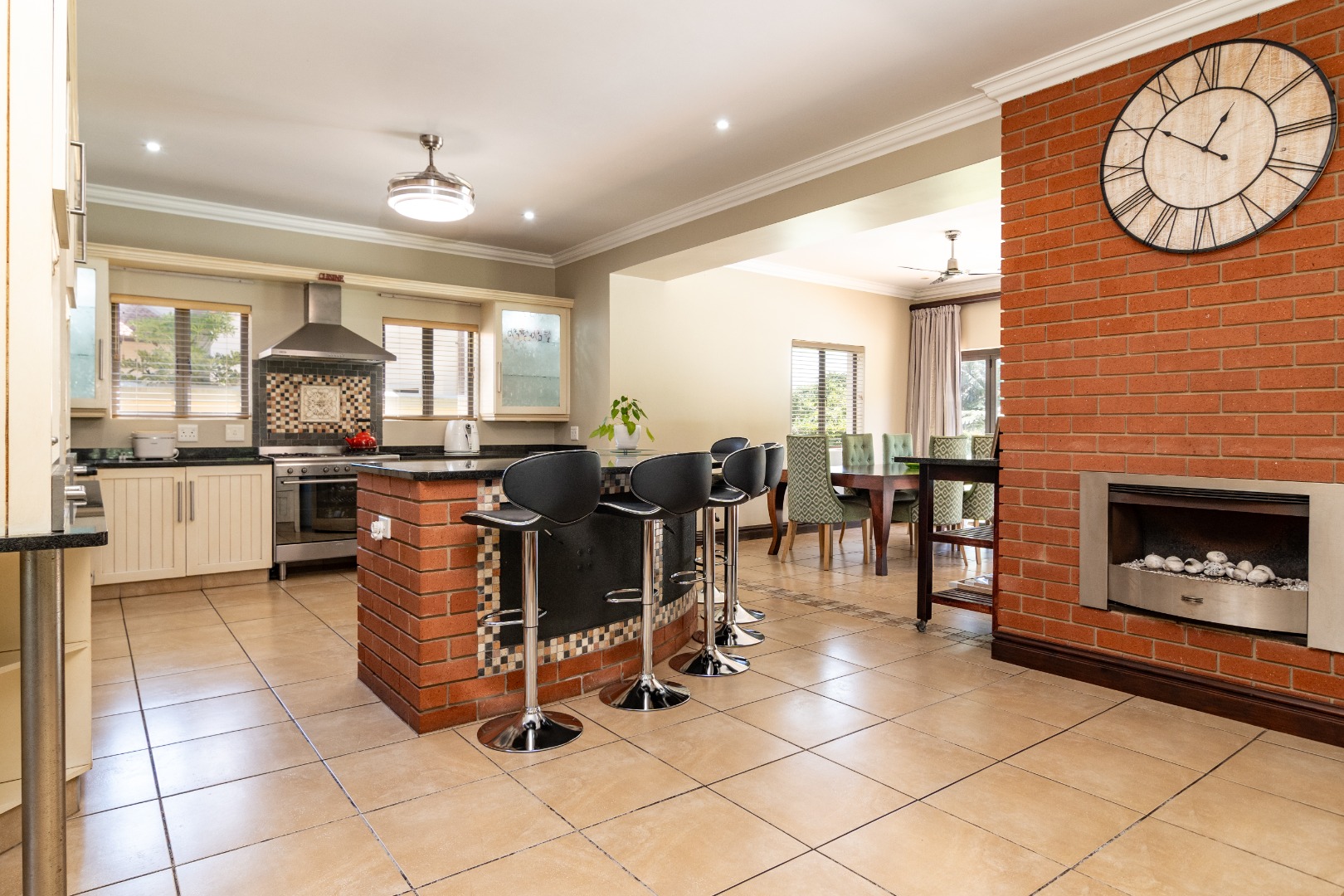 Entertain in style with an indoor gas braai, gas fireplace for cozy evenings, and glass stack doors opening to a smaller TV or entertainment room. The living spaces flow effortlessly outdoors to a sparkling pool, firepit, built-in seating, and a manicured garden—ideal for hosting family and friends.