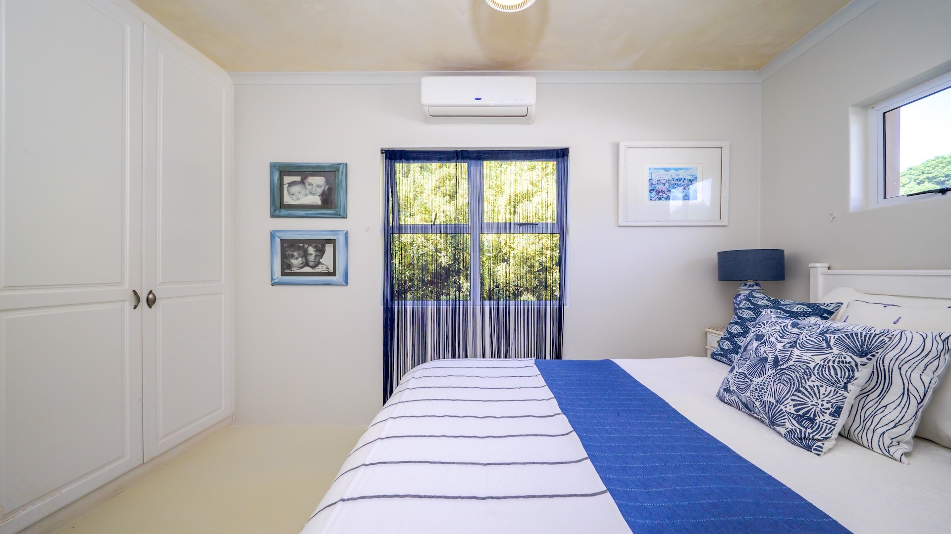 The patio is enclosed with frameless stacking windows, allowing you to open up the space to the ocean breeze. Fitted roll-down blinds add both privacy and comfort. The resin-based screeded floors are not only durable but easy on the feet, but also beautifully complement the apartment’s modern décor.