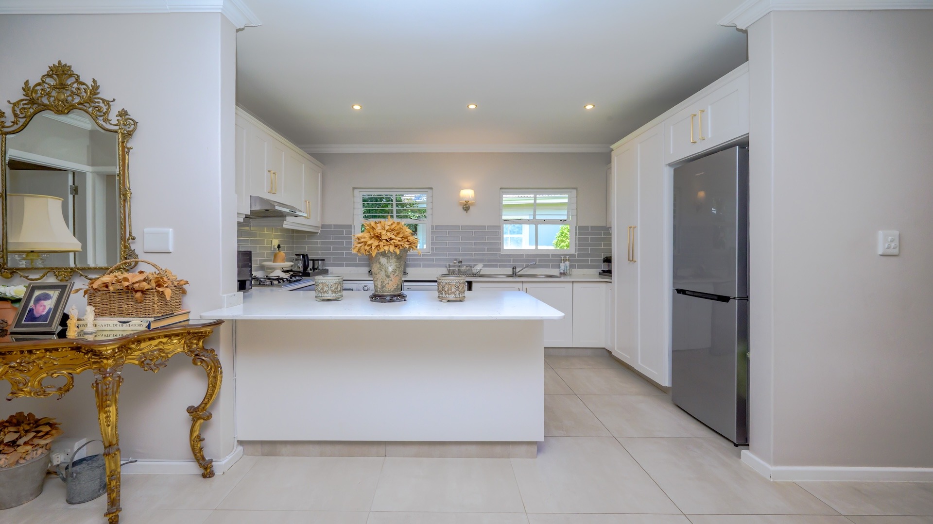 This exceptional home requires no work and has been finished to perfection with high-end fittings and top-quality finishes throughout. The spacious open-plan living area creates a warm and welcoming atmosphere, flowing seamlessly through stacking doors onto a charming patio overlooking a manicured, private garden — ideal for relaxed indoor-outdoor living.