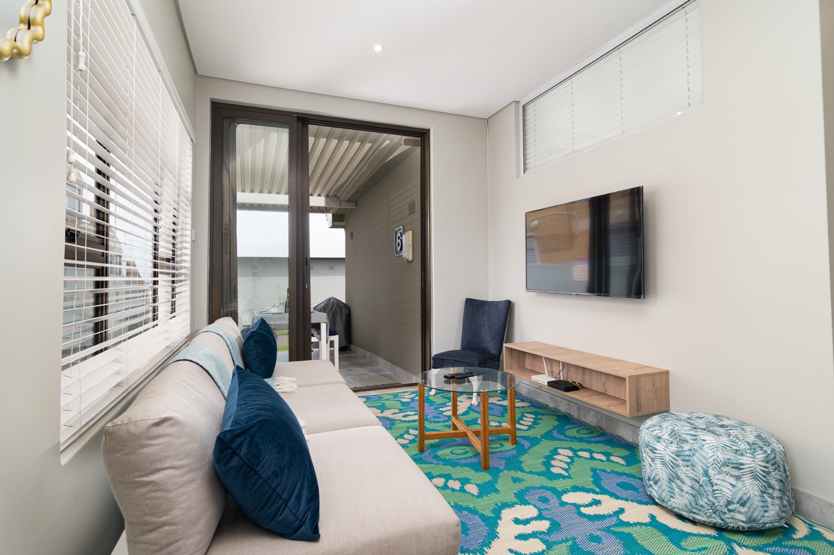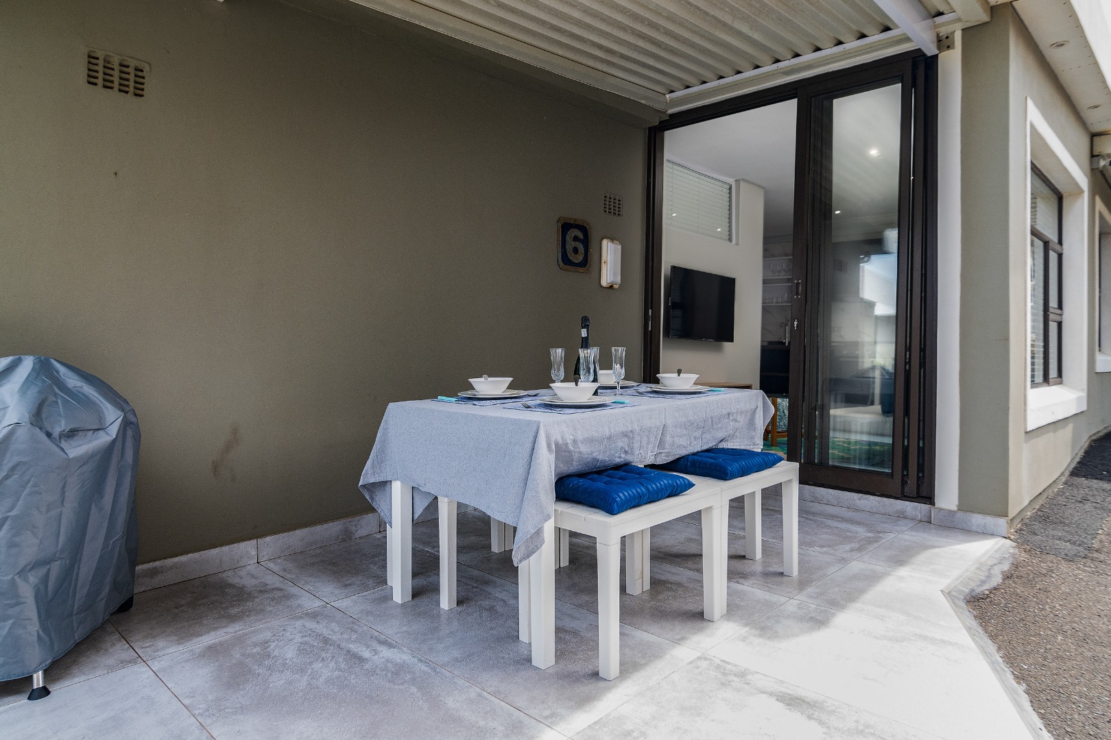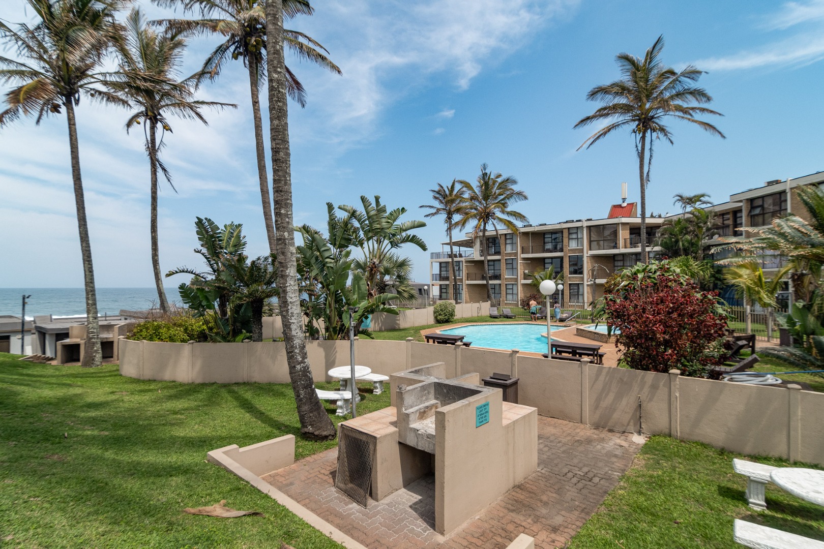 Discover this lovely 2-bedroom, 1-bathroom apartment in Ballito's Compensation Beach, offering a relaxed coastal lifestyle with a sea view. This 46 sqm holiday home features a modern, open-plan lounge and dining area, perfect for easy living.