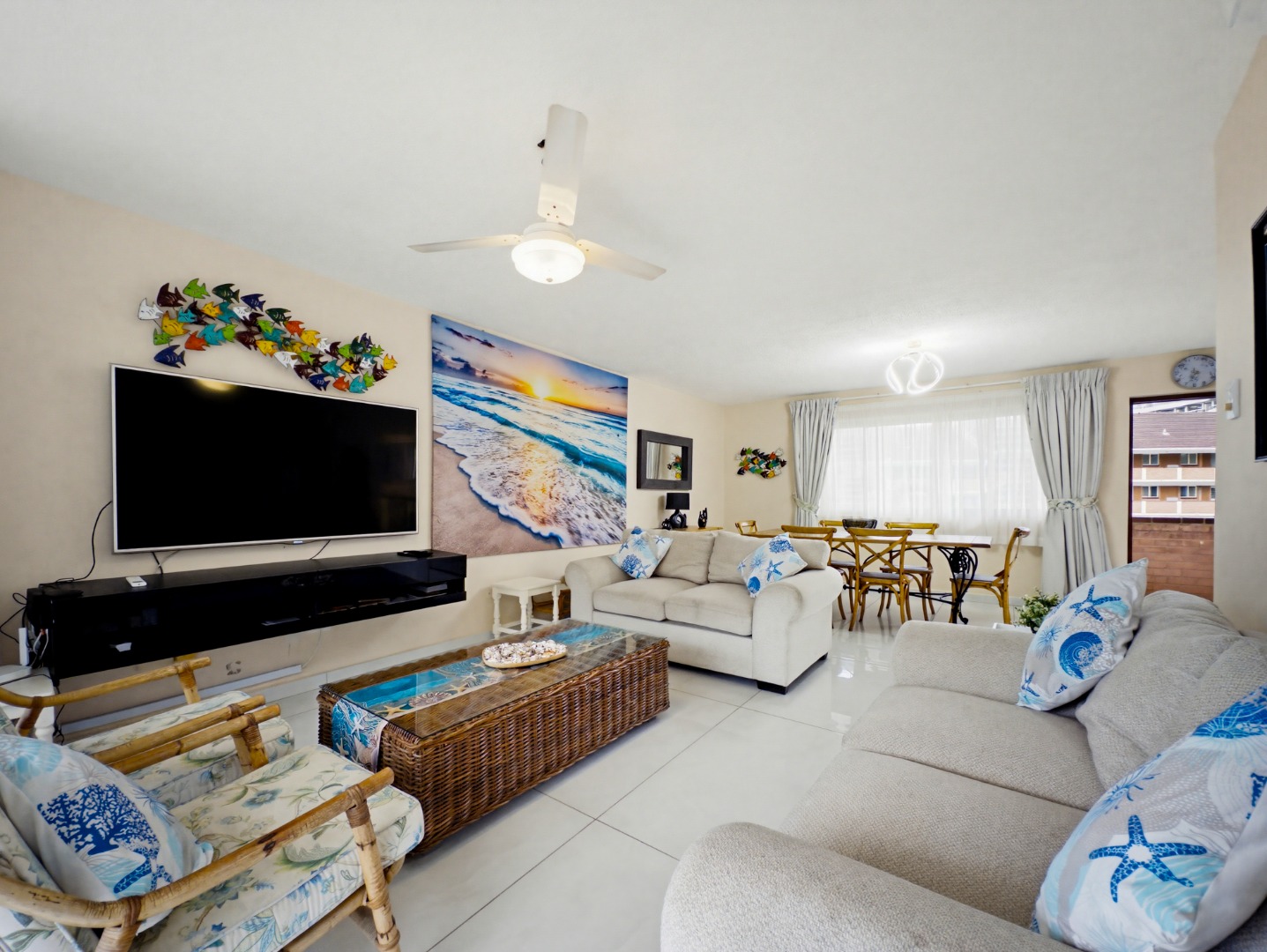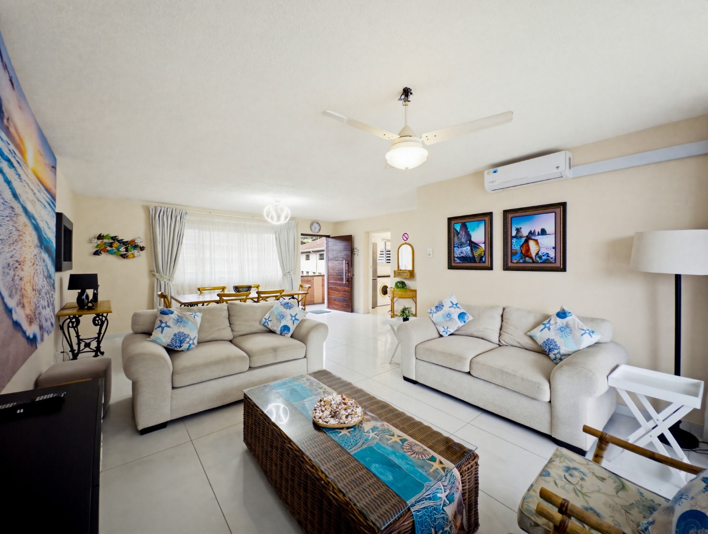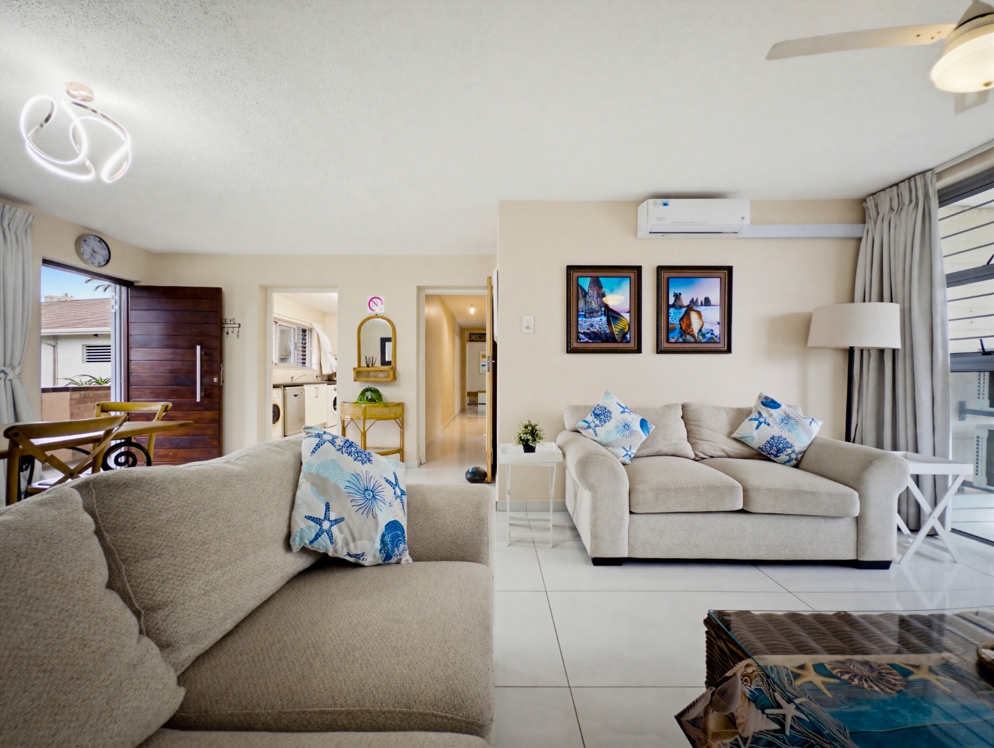 Discover this fully furnished apartment in Ballito's desirable Compensation Beach. Spanning 138 sqm, the thoughtfully designed interior comprises a well appointed kitchen, a dedicated dining area, and a comfortable lounge, all seamlessly connected. Air conditioning and elegant sliding doors enhance natural light throughout.