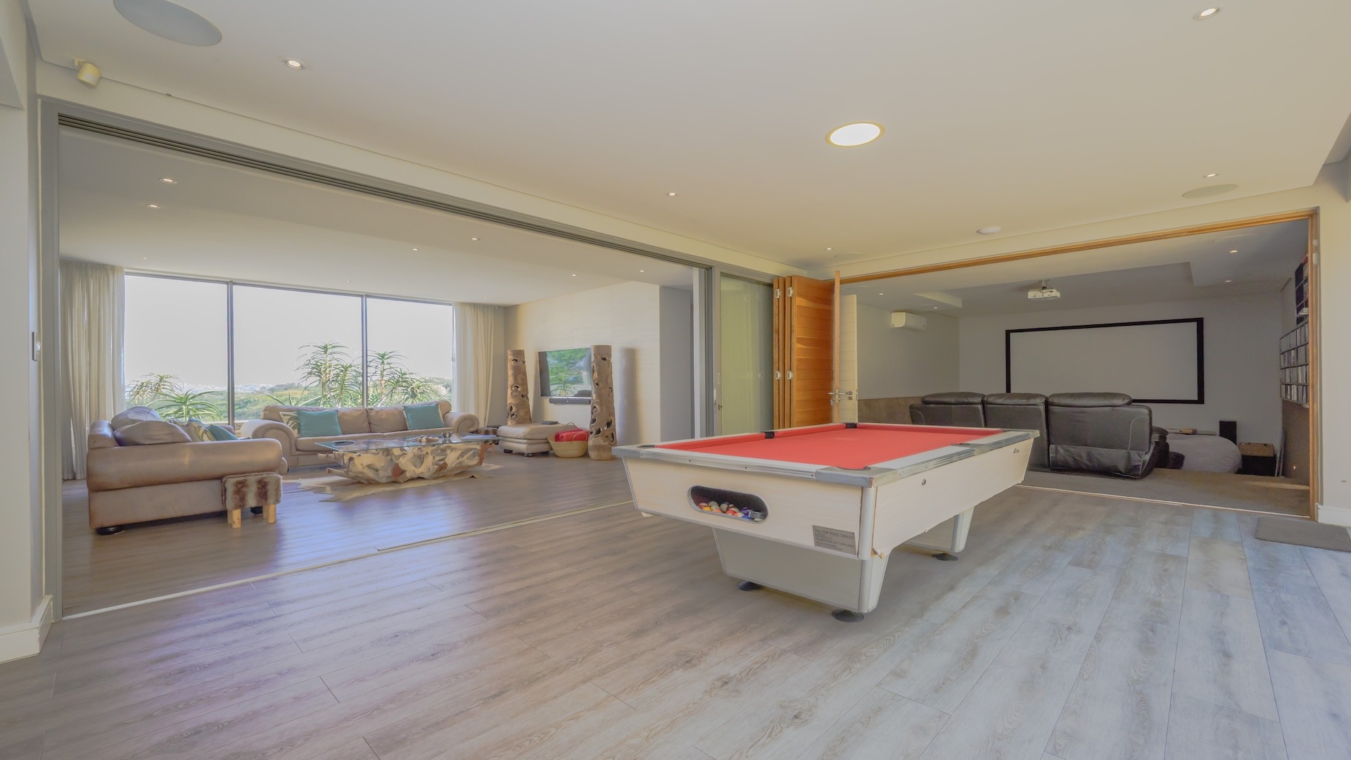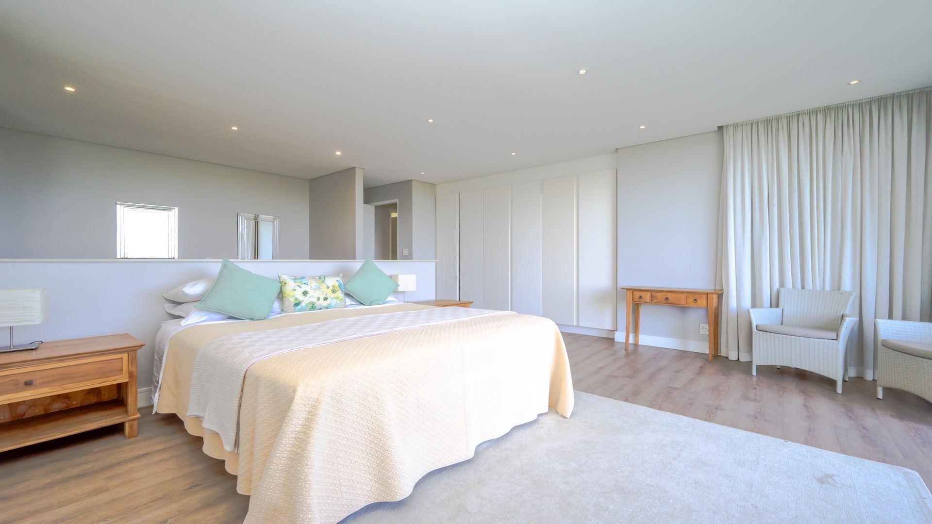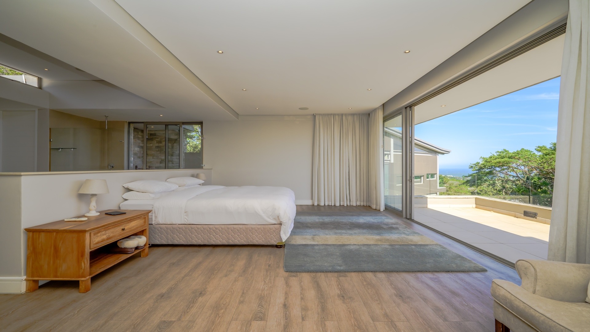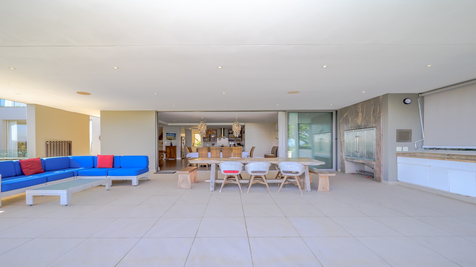 Thoughtful amenities such as air conditioning, a built-in bar, and a cozy fireplace elevate the ambiance, catering to every desire. Outdoor living is a true indulgence, with a spacious balcony, patio, and deck providing multiple vantage points to soak in the coastal panorama. A sparkling swimming pool and a built-in braai area create the perfect setting for alfresco gatherings amidst the meticulously maintained garden. Practical considerations are met with four garages, ample additional parking, staff quarters, a dedicated laundry room, and generous storage. Embracing