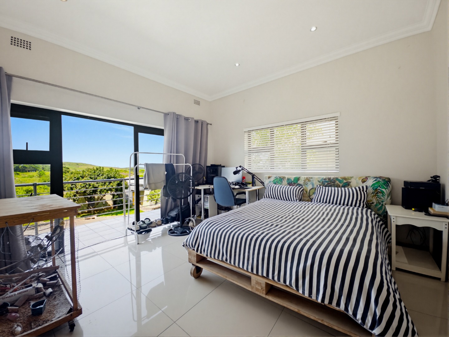 The heart of the home is a light-filled open-plan living and dining area that flows into a practical kitchen, making it a natural space for easy entertaining. The ground floor features two versatile bedrooms with a shared bathroom and a private balcony—ideal for guests or a quiet retreat.