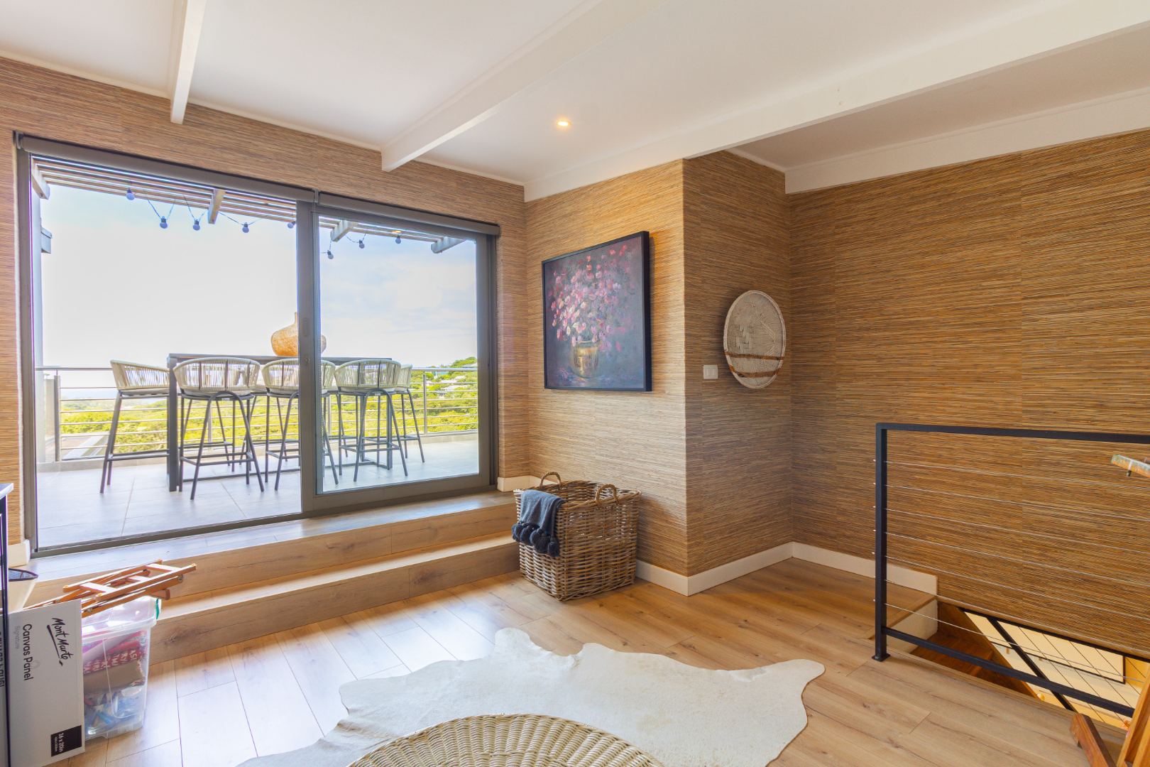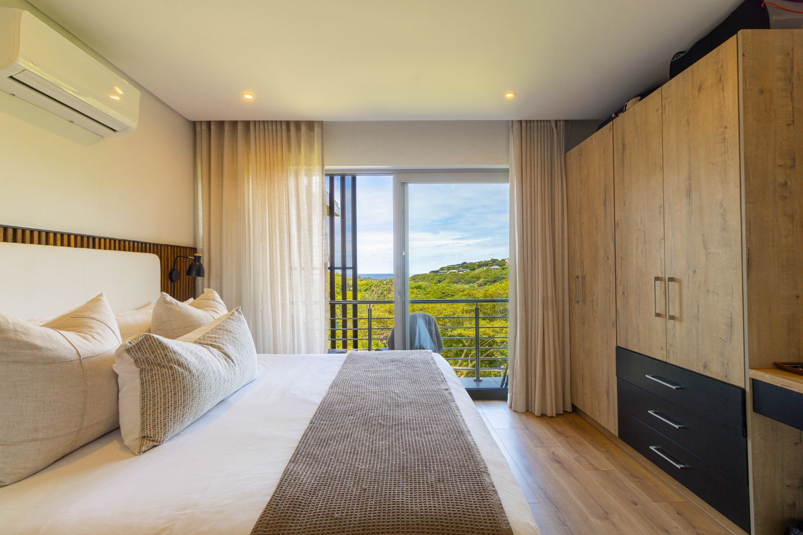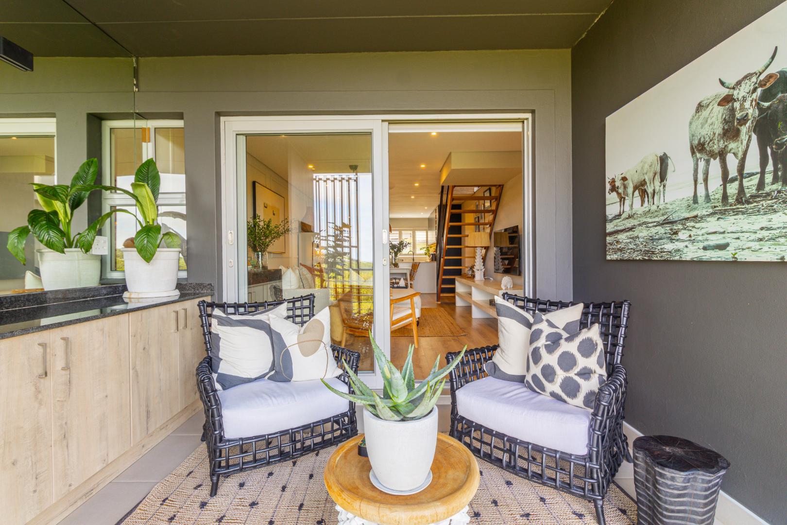 An upstairs loft offers flexible additional space and can easily be converted into a home office or study. The upper level also opens onto a private patio including all patio furniture, perfectly suited for entertaining while enjoying sea views. A built-in braai enhances the outdoor living experience, making it ideal for hosting family and friends. Externally, the property includes a lock up garage and one convenient parking bays. Residents of this secure coastal eco-estate benefit from a well-managed, eco-conscious community, offering peace of mind and sustainable living.