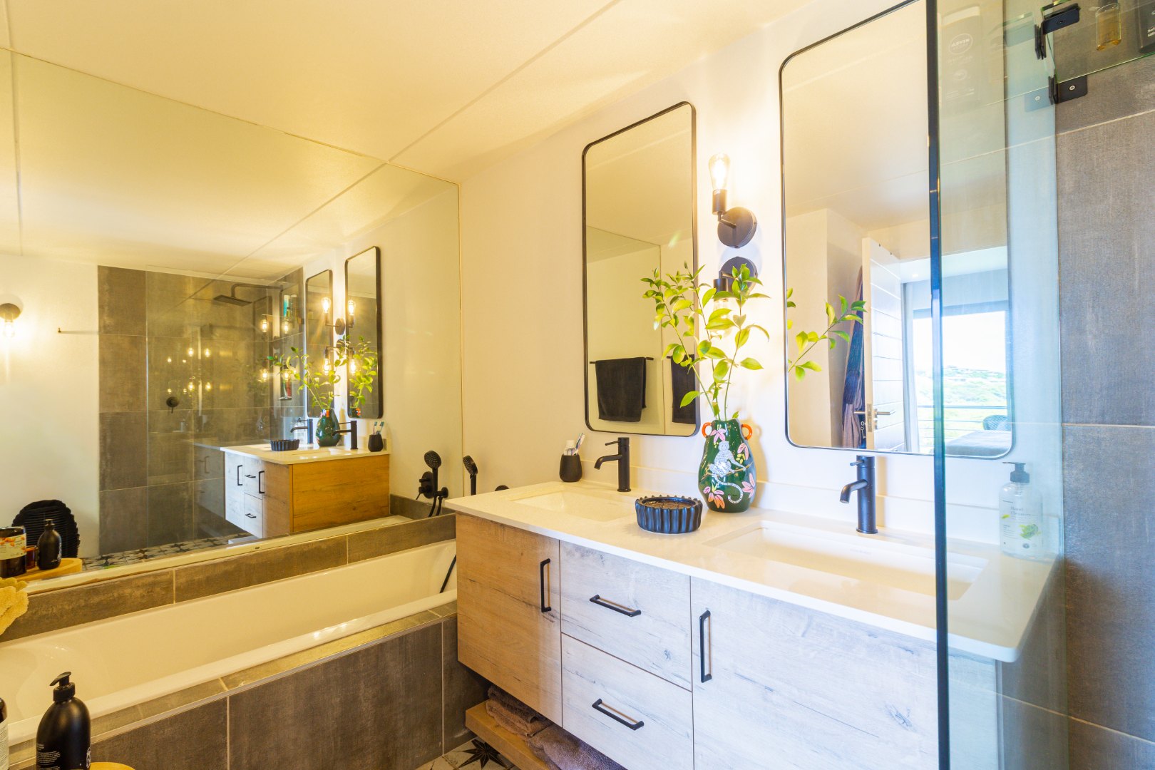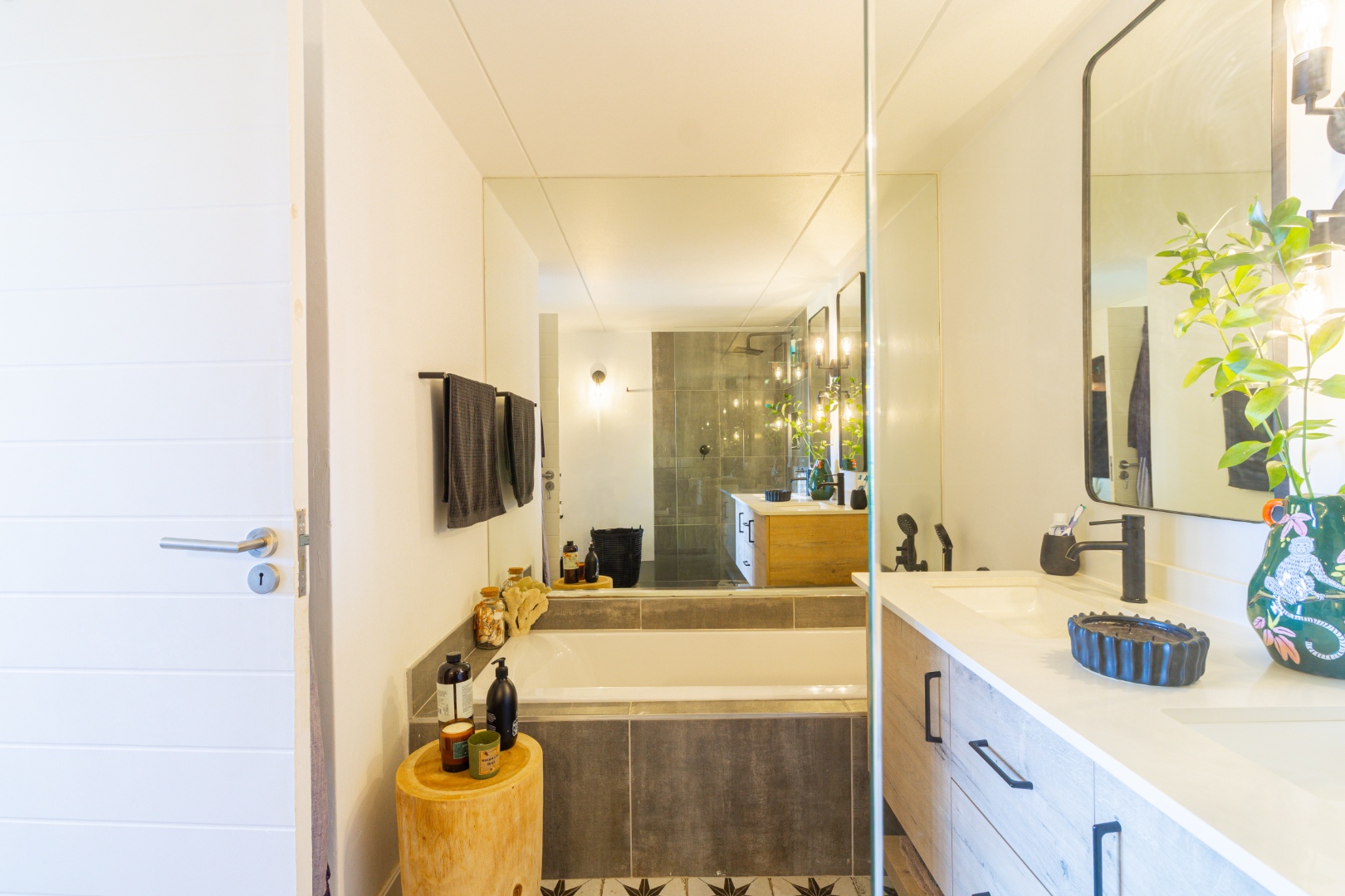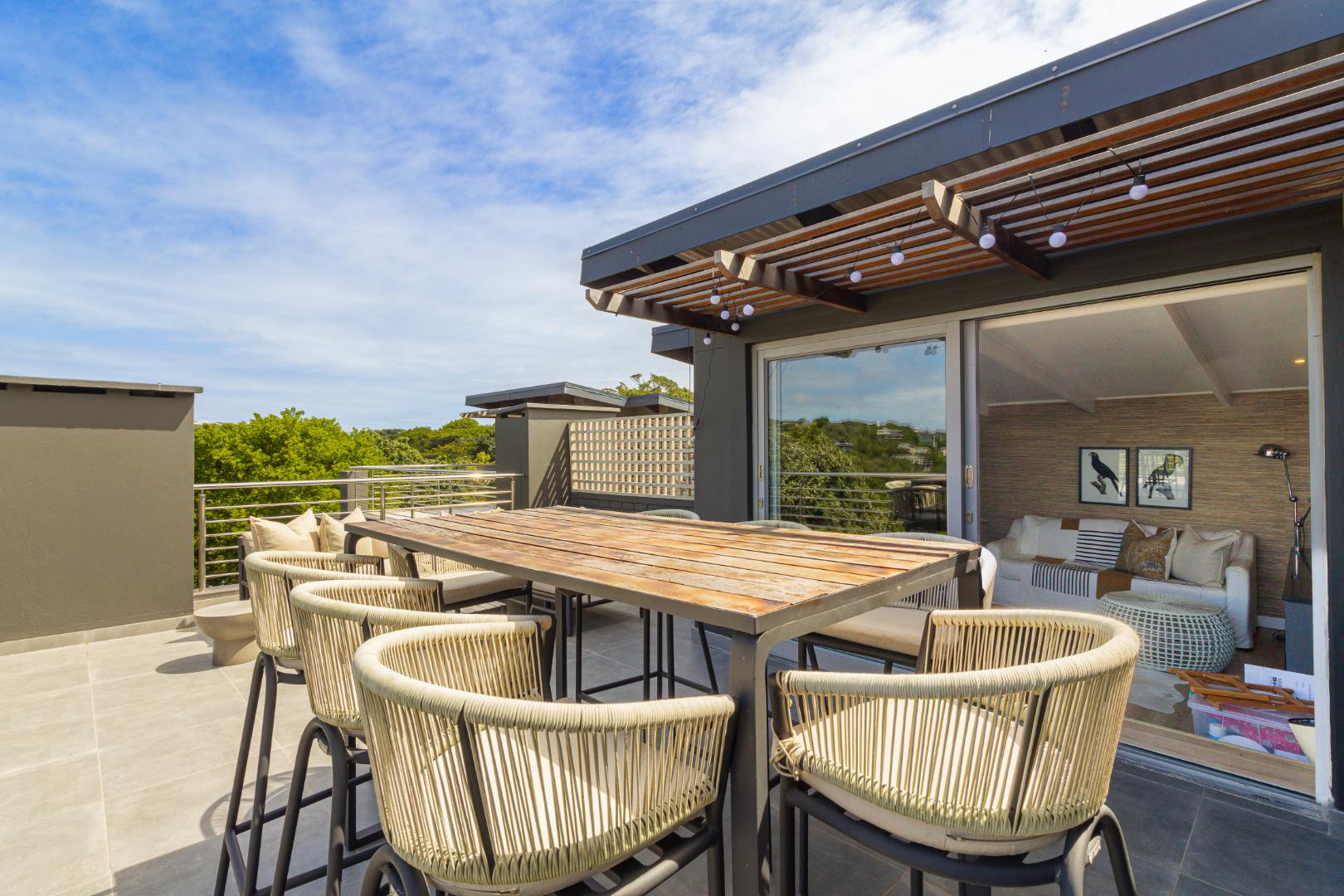 An upstairs loft offers flexible additional space and can easily be converted into a home office or study. The upper level also opens onto a private patio including all patio furniture, perfectly suited for entertaining while enjoying sea views. A built-in braai enhances the outdoor living experience, making it ideal for hosting family and friends. Externally, the property includes a lock up garage and one convenient parking bays. Residents of this secure coastal eco-estate benefit from a well-managed, eco-conscious community, offering peace of mind and sustainable living.
