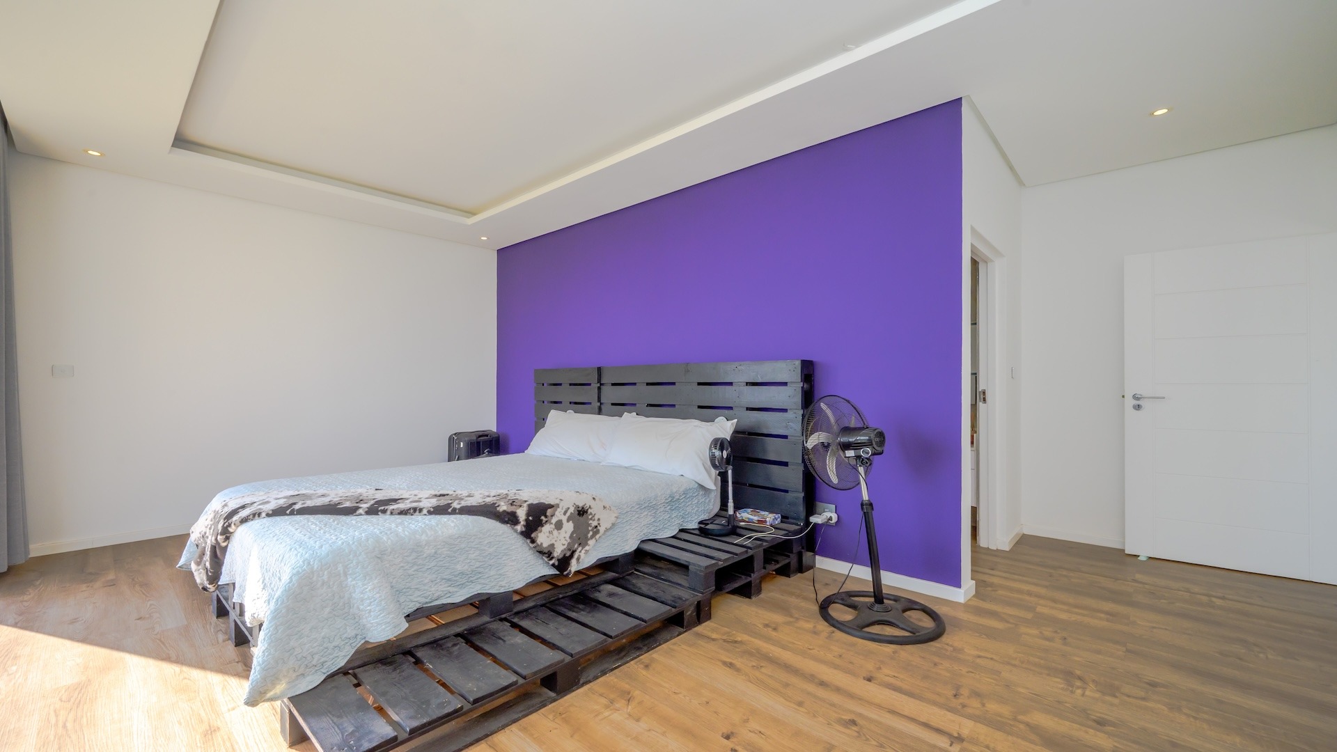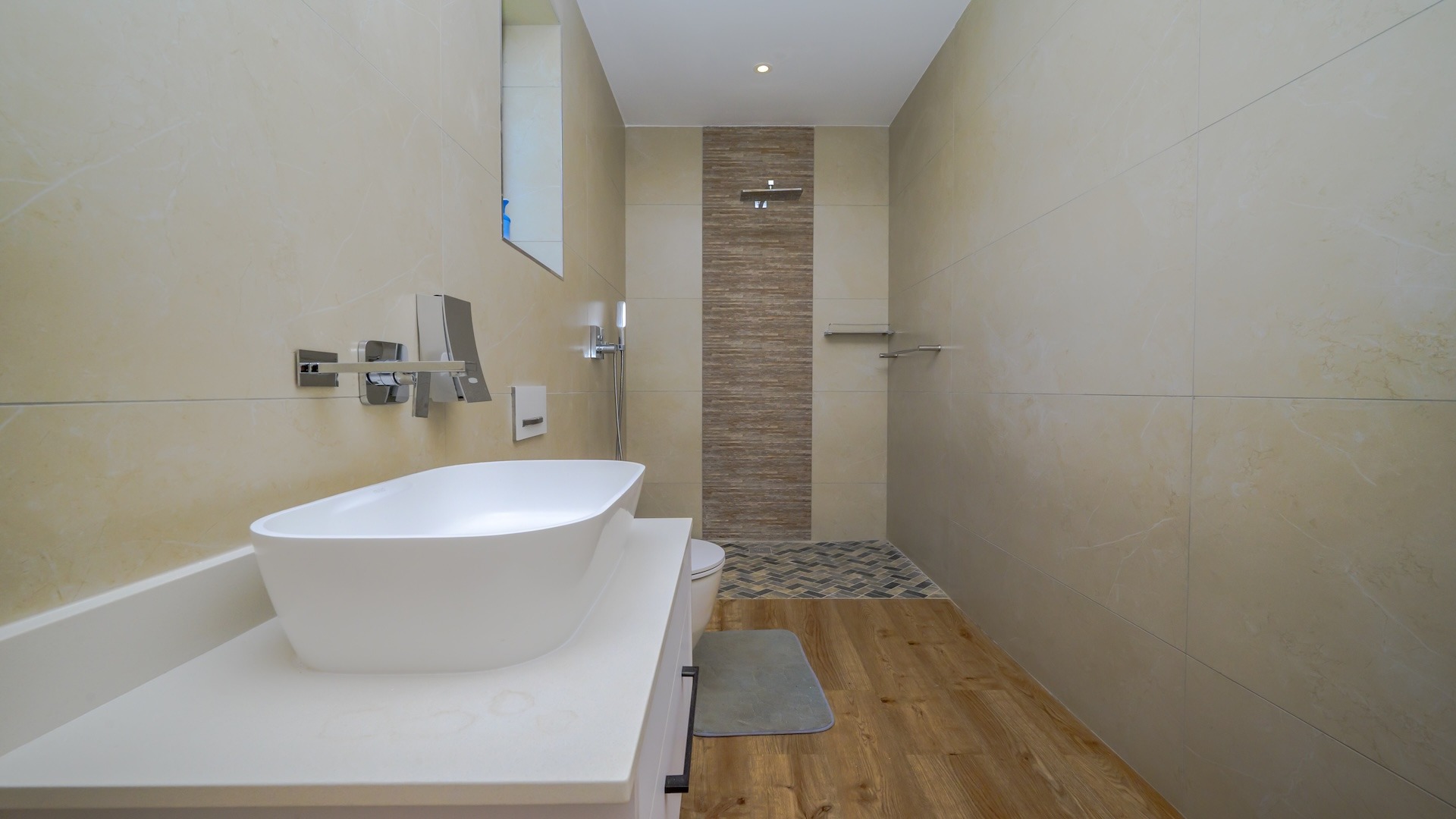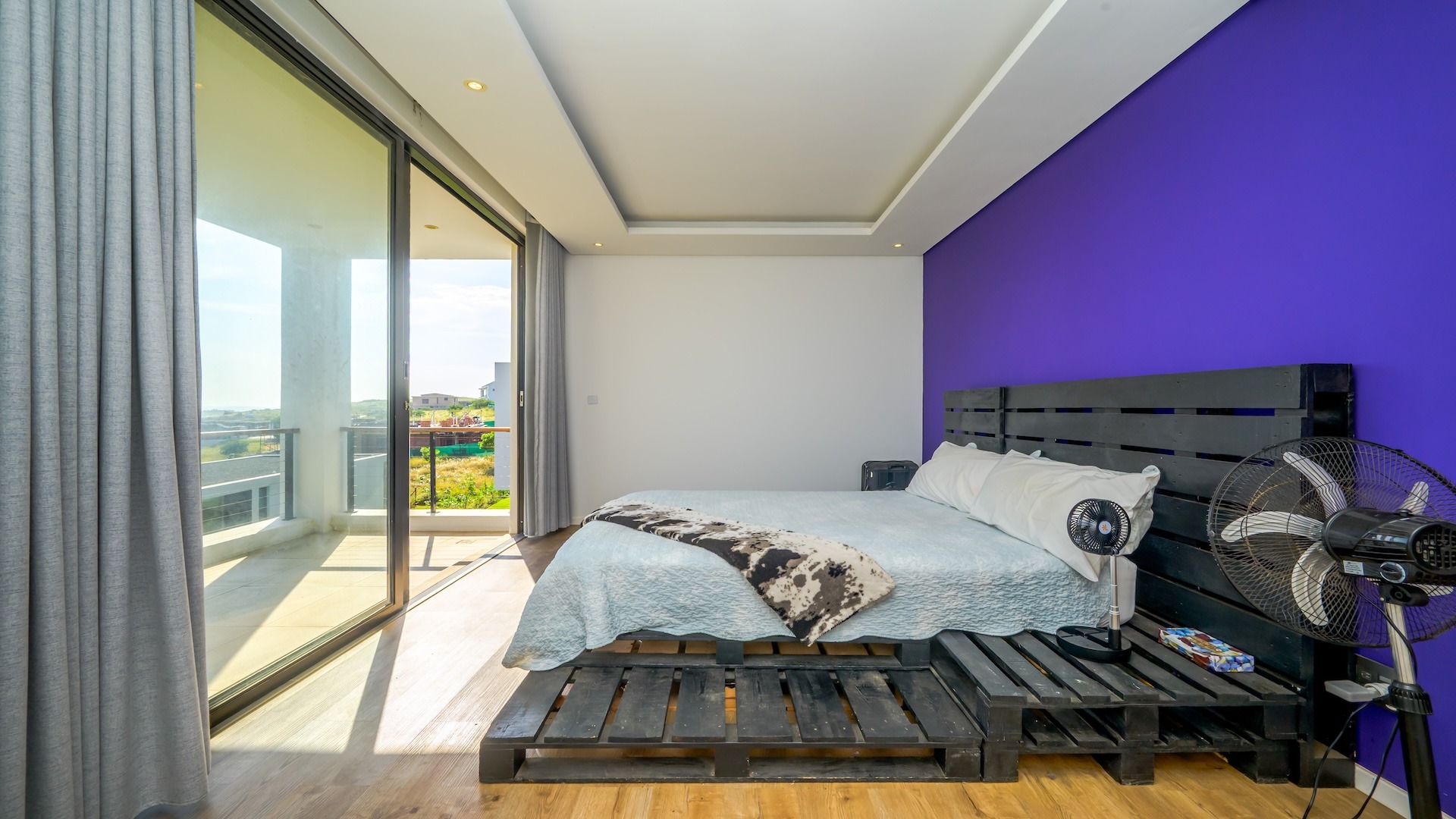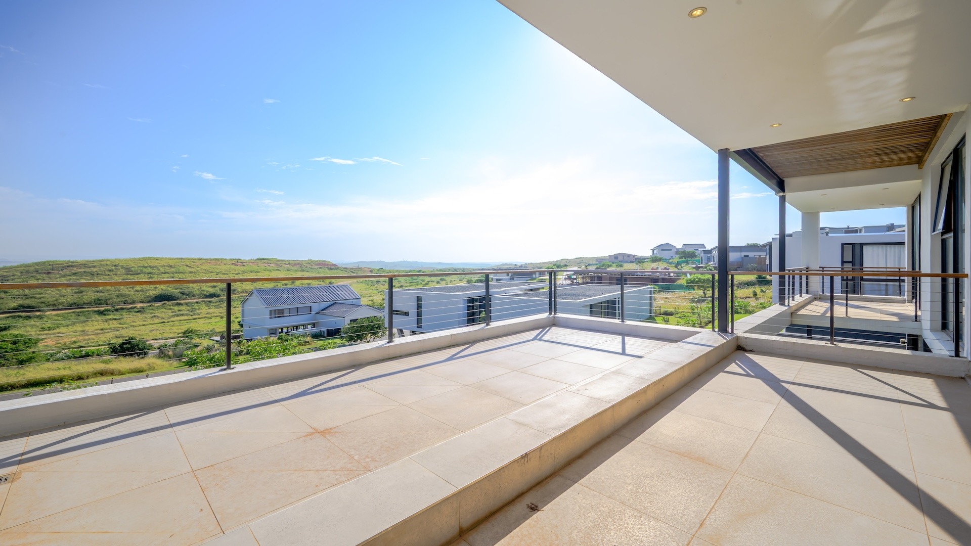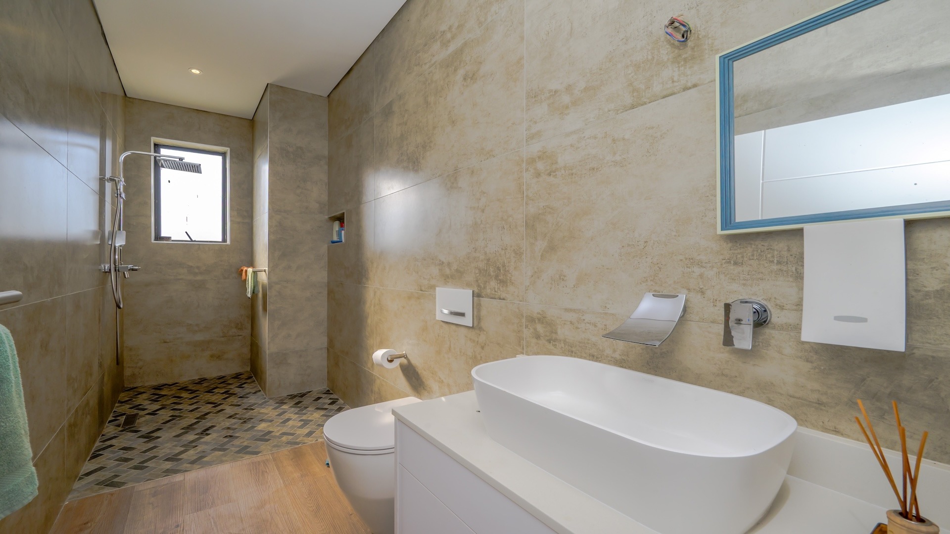 The home’s designer kitchen forms the centrepiece of the living space and is fitted with high quality appliances. It flows effortlessly into the open plan lounge and dining areas, creating a bright and welcoming environment for everyday living. A separate scullery adds practicality and keeps the kitchen neat and organised. Large sliding doors lead out to a covered patio with a built in braai, overlooking the swimming pool, the perfect setting for entertaining while enjoying beautiful sunset views.