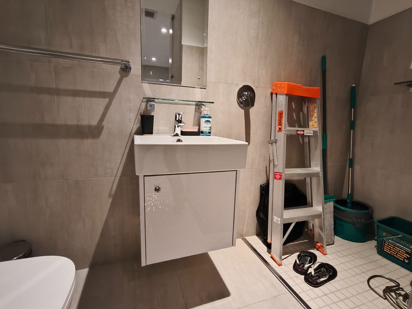 Both the main bedroom and the second bedroom have built-in cabinets and an en-suite bathroom with a shower and a bath.