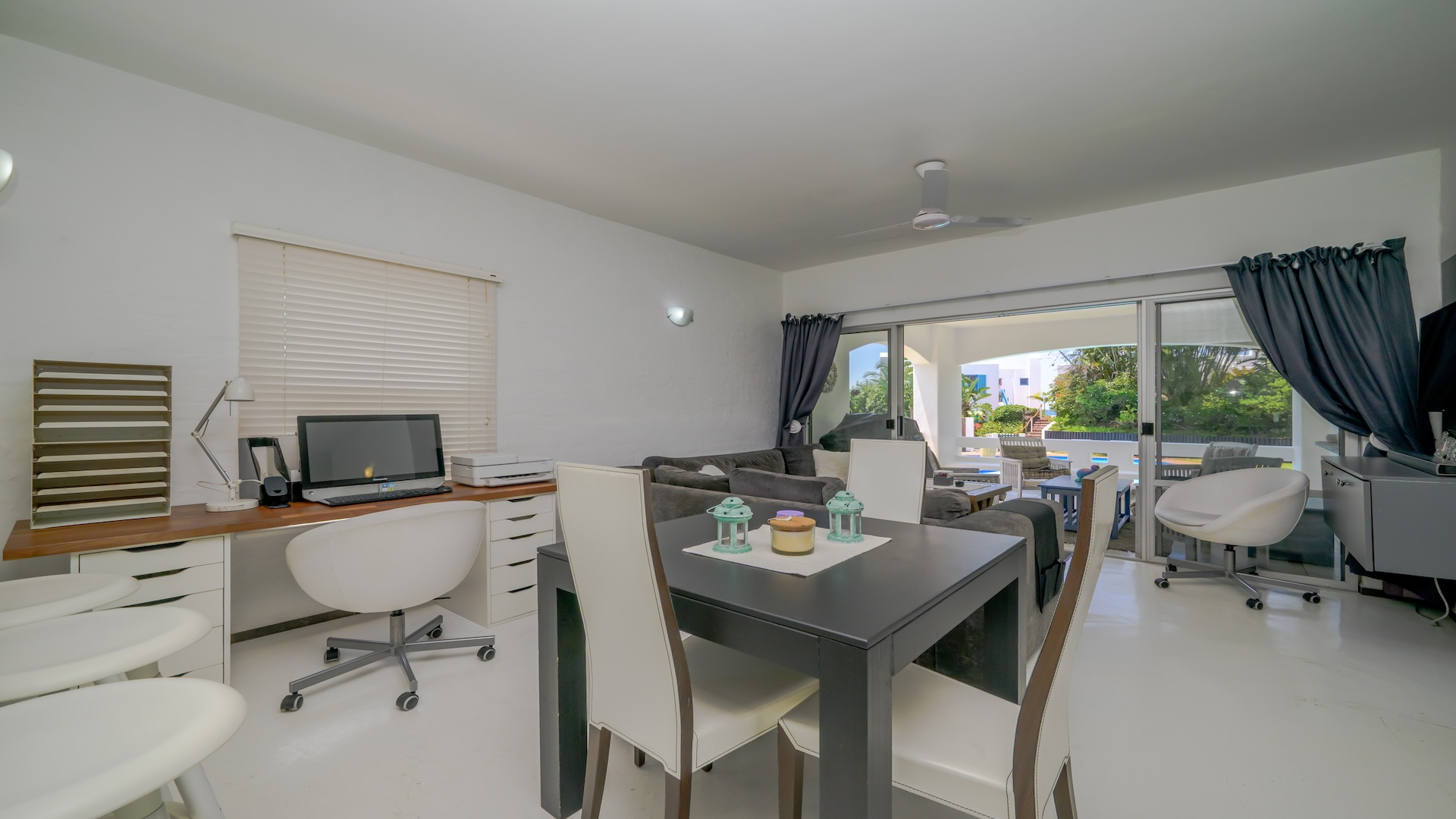 A standout feature is the second undercover balcony off the main bedroom – unusually large and ideal for quiet morning coffees or relaxed evening downtime. The main living area opens onto another balcony that looks directly onto the estate pool, with secure direct access – perfect for families who want to keep an eye on the kids while still enjoying the comfort of home.