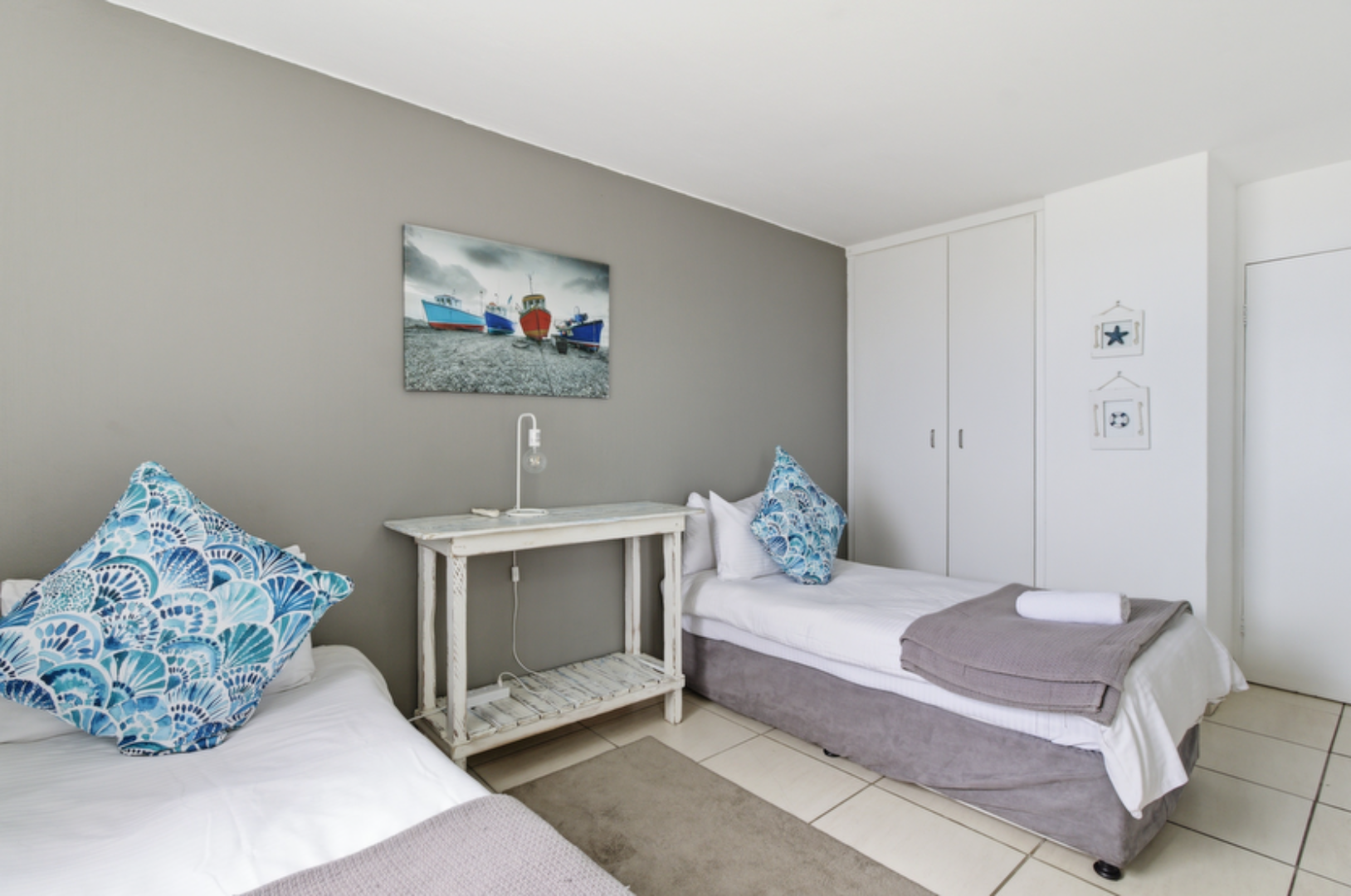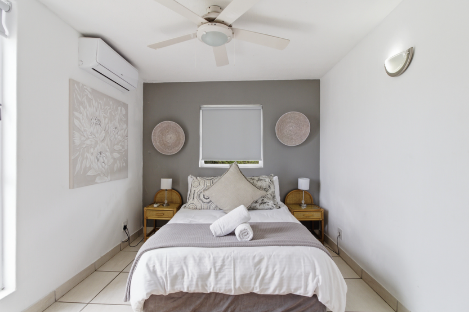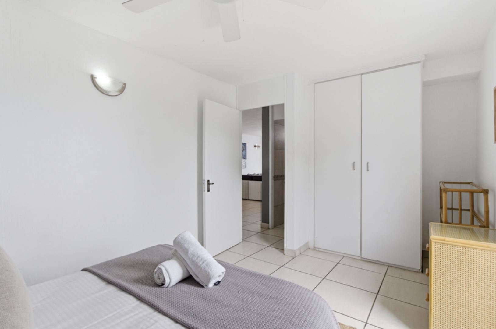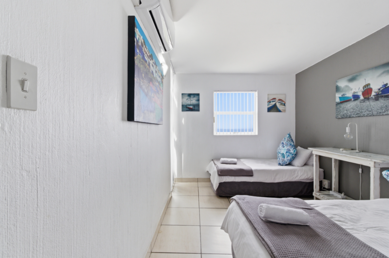 The home features three bedrooms and two bathrooms, with two bedrooms enjoying sea views, including a well-appointed main suite. The open-plan living space is light, contemporary, and air-conditioned, flowing seamlessly into a open kitchen with ample storage and a breakfast counter. A covered patio extends from the living area, creating the ideal space to unwind, entertain, and enjoy sea breeze.