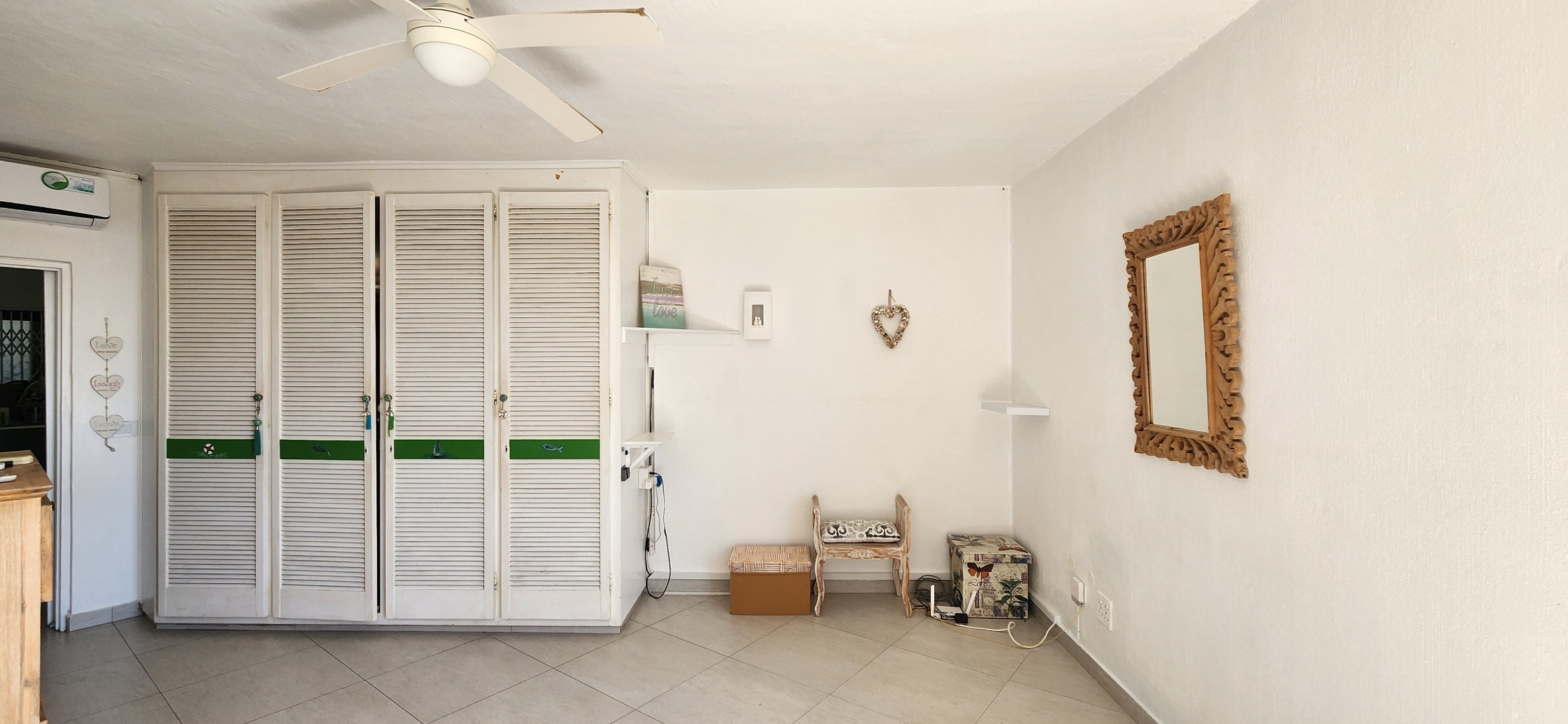 Enjoy modern bathrooms, one with a glass-enclosed shower. Outdoors, a lush garden, communal braai area, and pool await. The property includes a single garage, additional parking, paved access, and is pet-friendly. Enhanced with a security gate, and a battery inverter, this home ensures comfort and peace of mind.