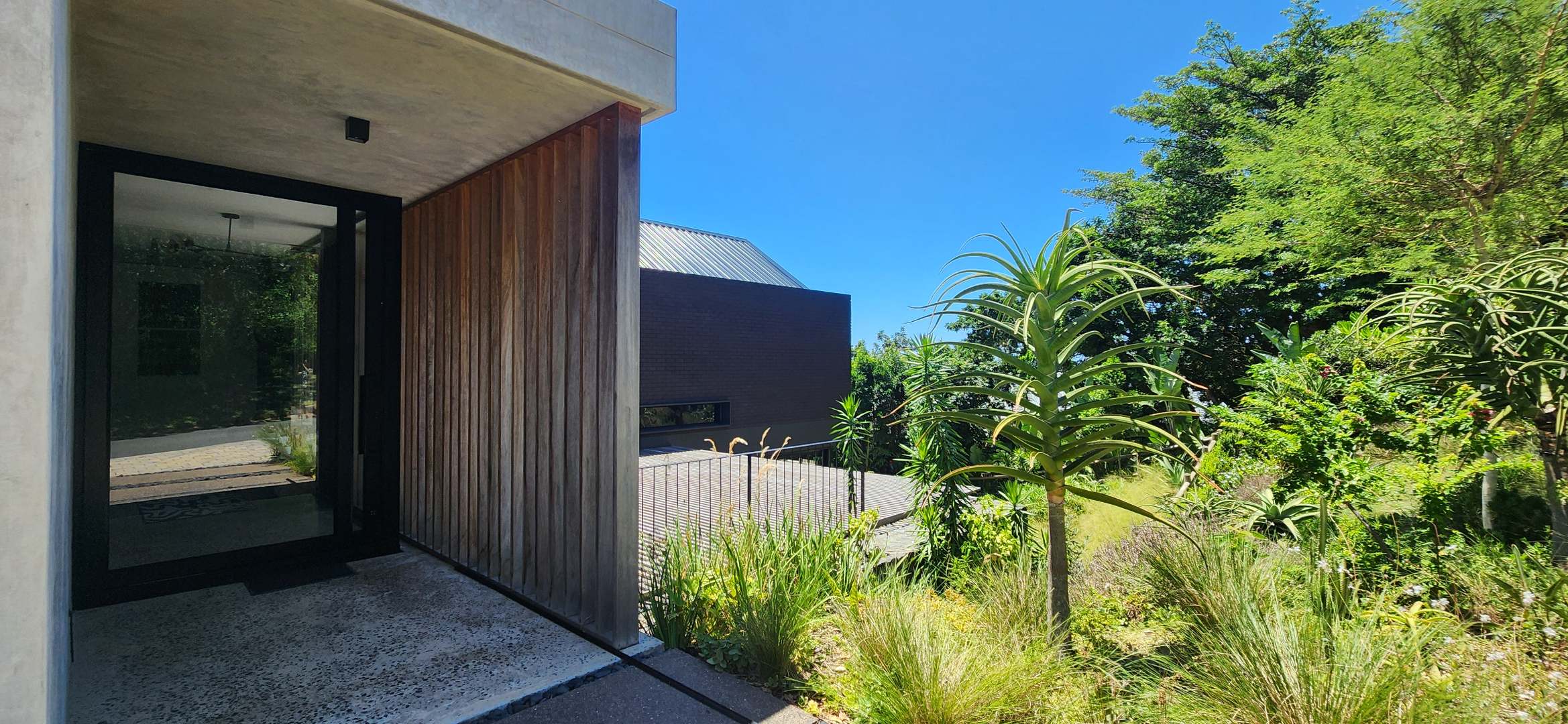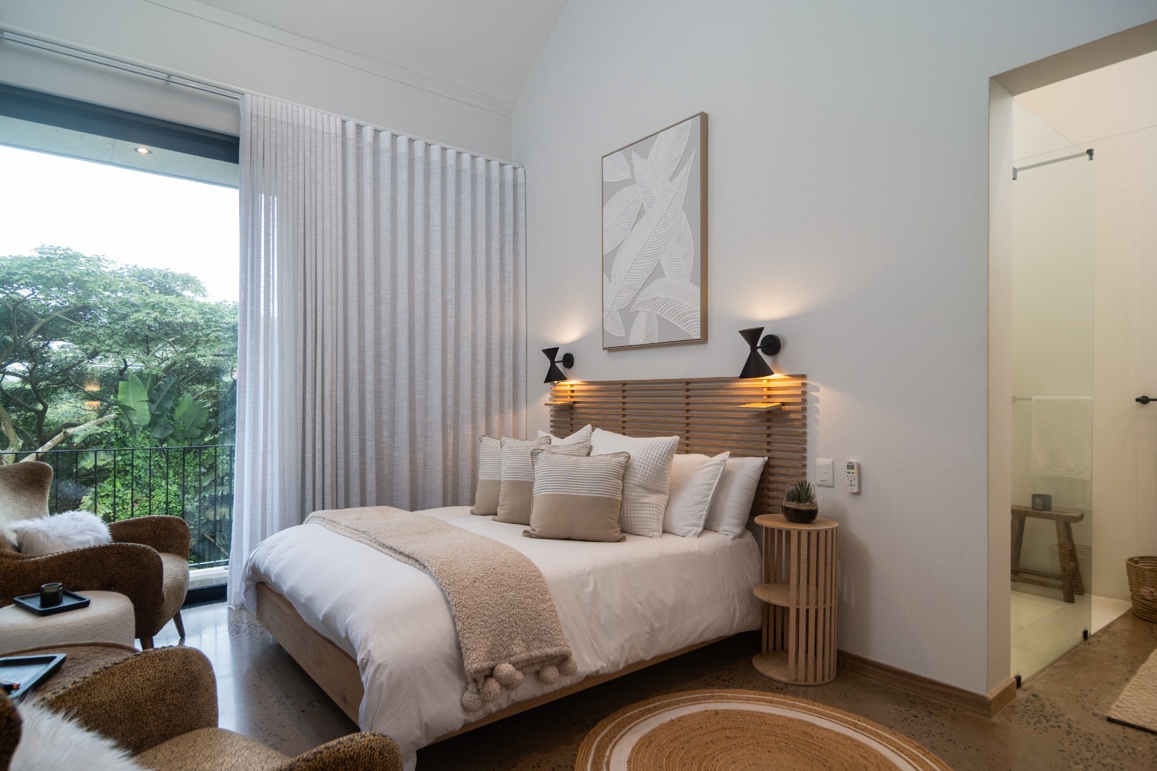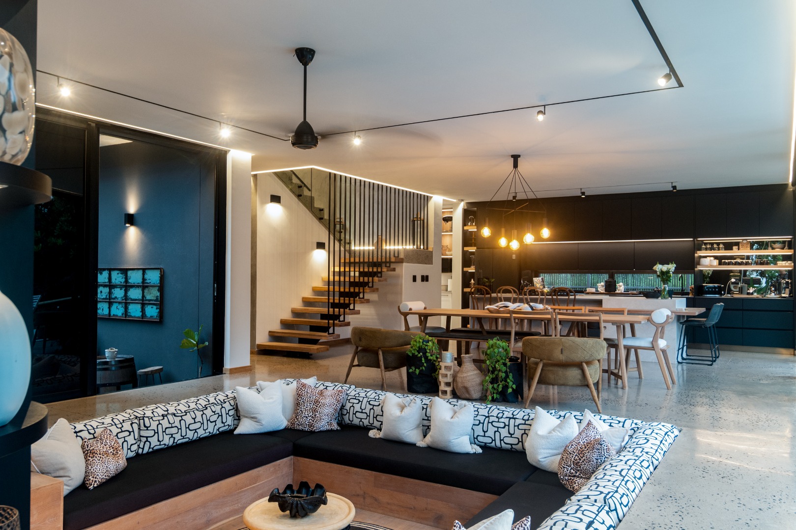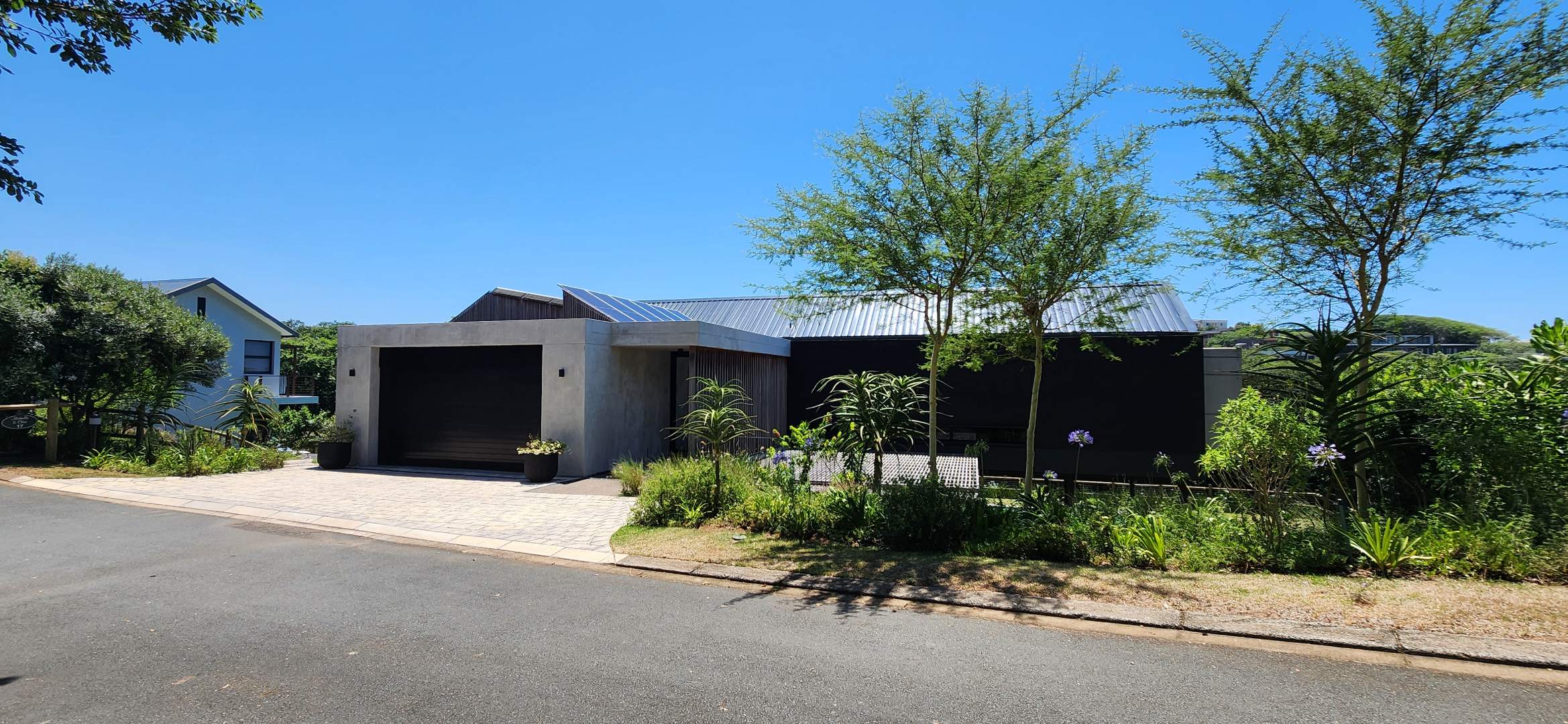 This Designer home is a contemporary masterpiece. Polished concrete floors and a striking designer black kitchen with integrated appliances anchor the open-plan living spaces, complemented by electric blinds and seamless flow to the outdoors. Four luxurious bedrooms and four and a half bathrooms, finished with sleek black fixtures and walk-in showers, provide serene retreats. Beyond, a salt-chlorinated pool, expansive deck, built-in braai, pizza oven, fire pit, and putting green create an entertainer’s paradise set within lush, private gardens.