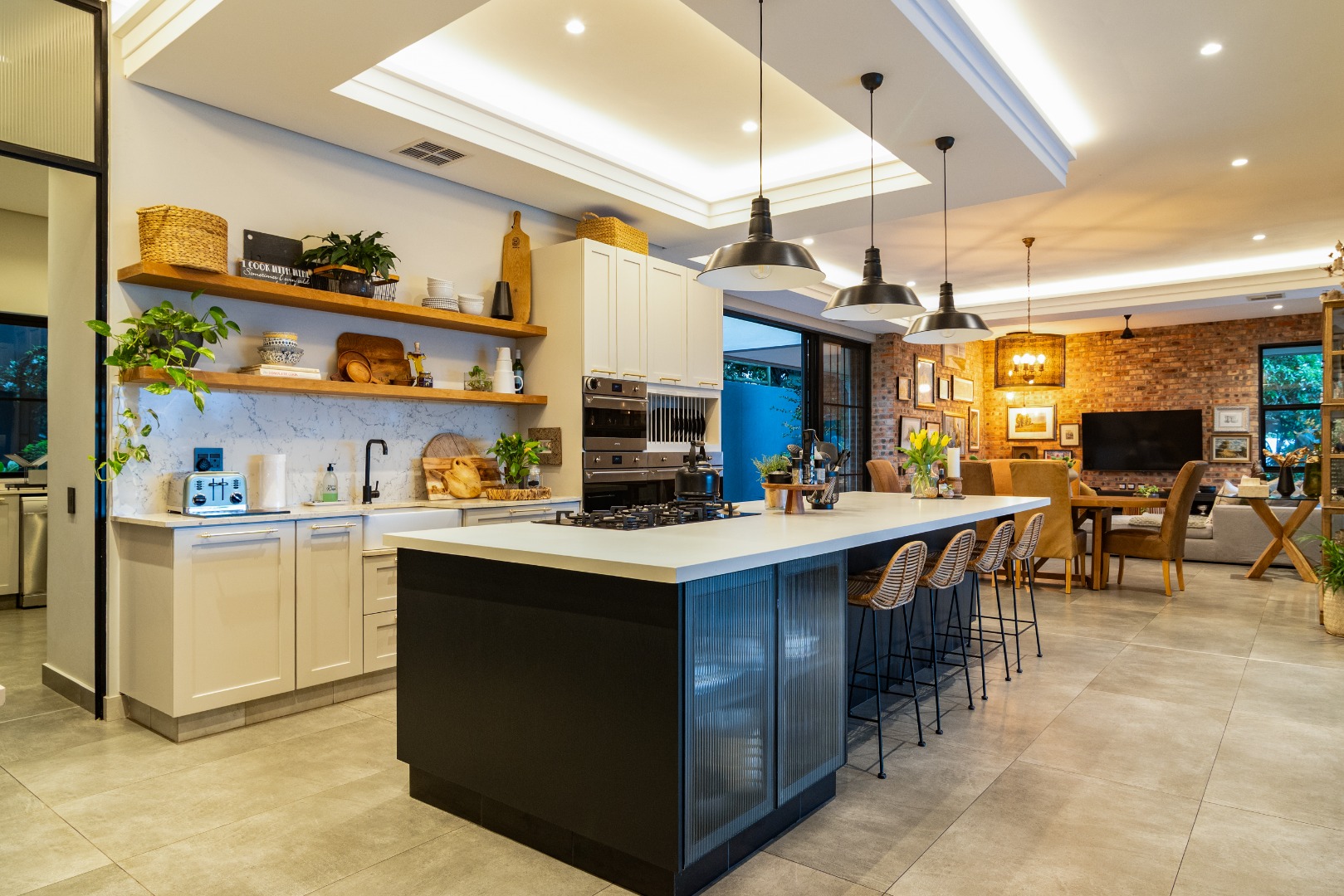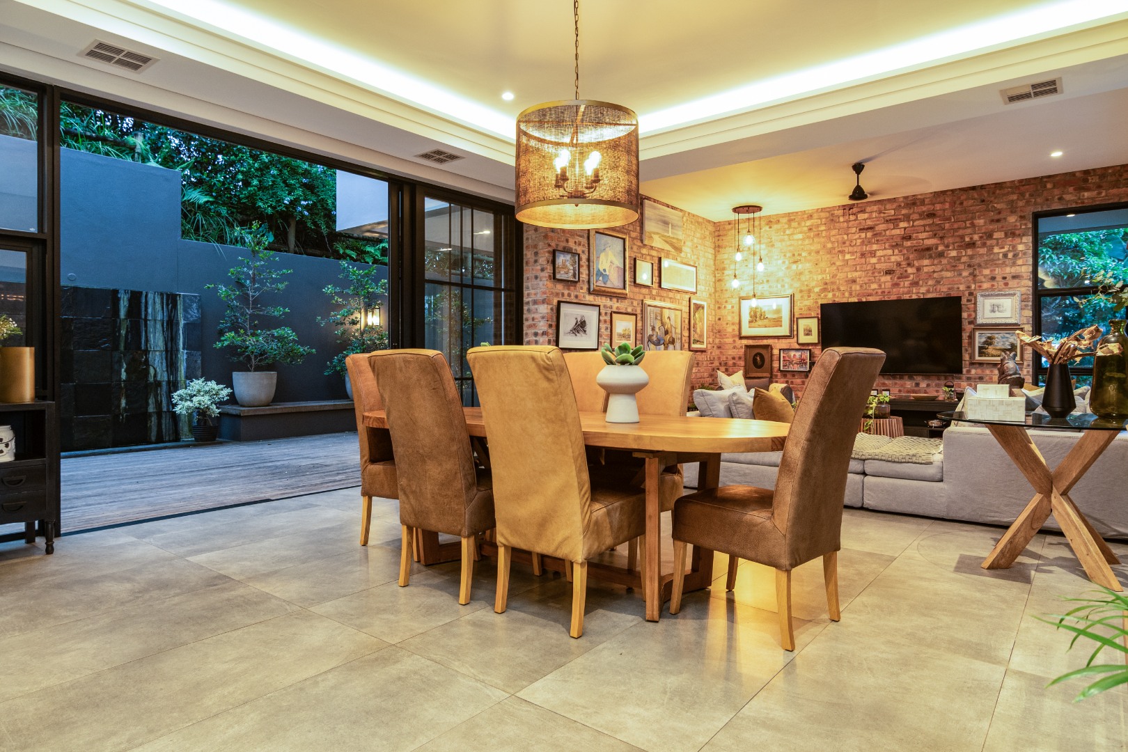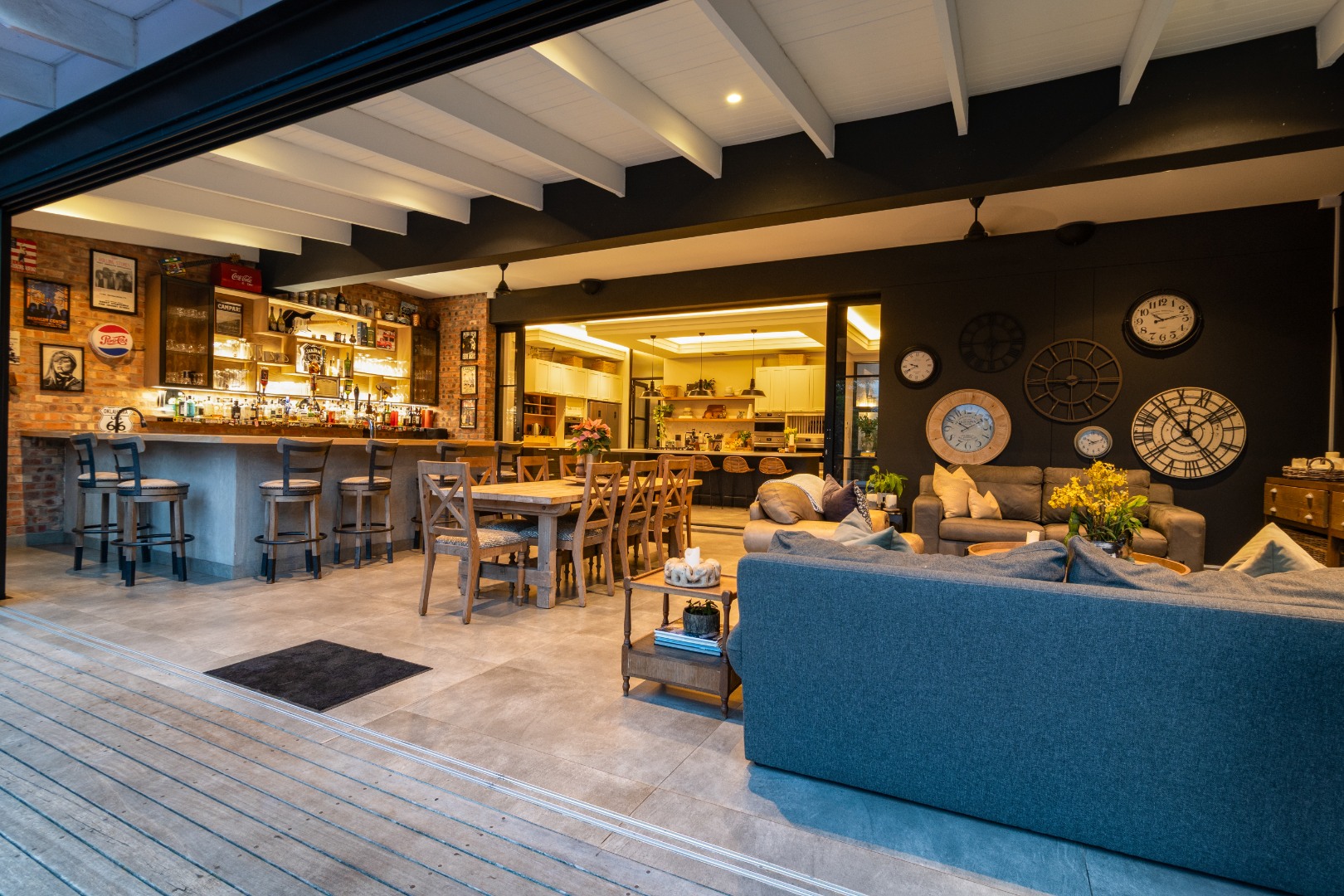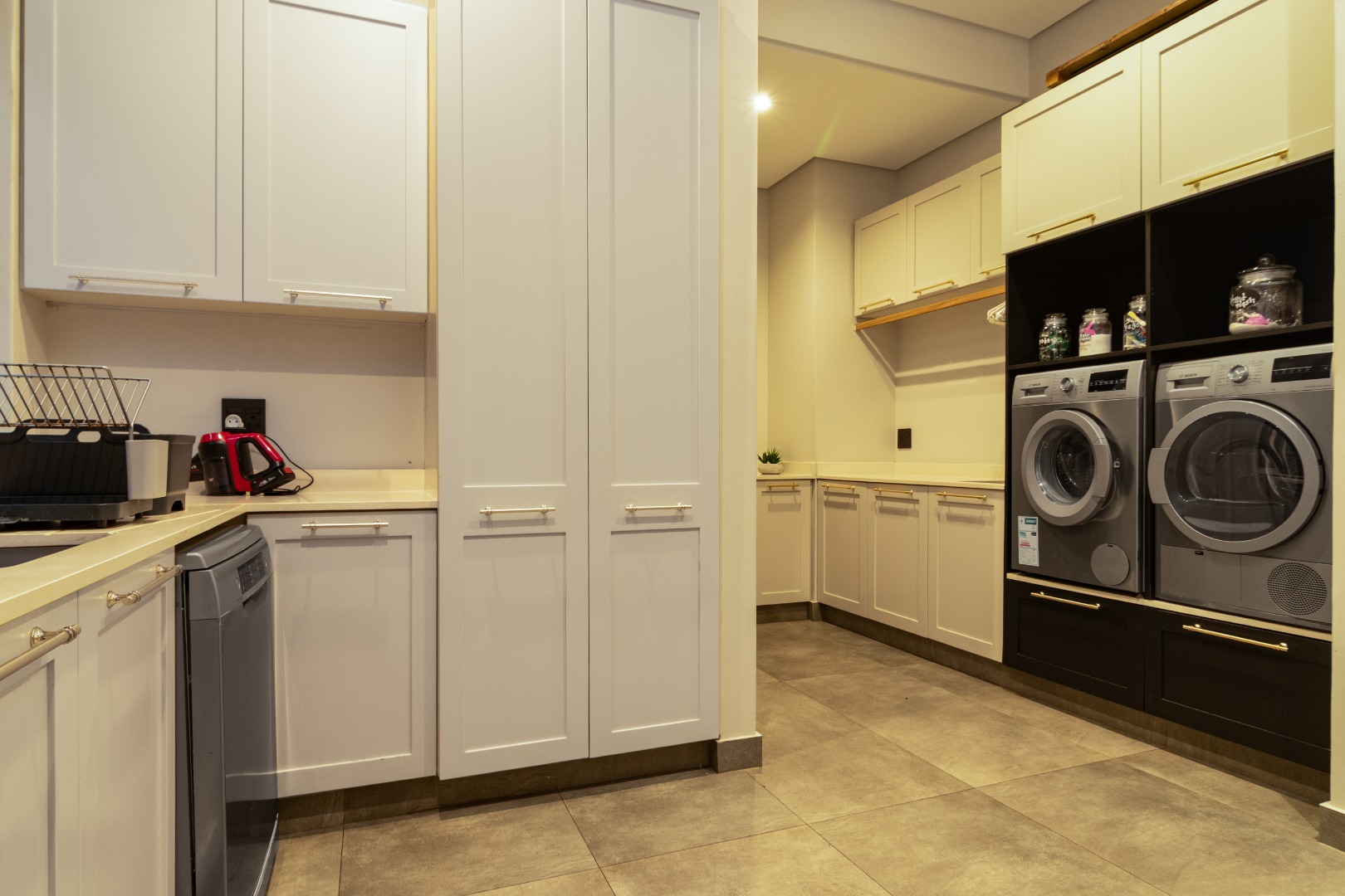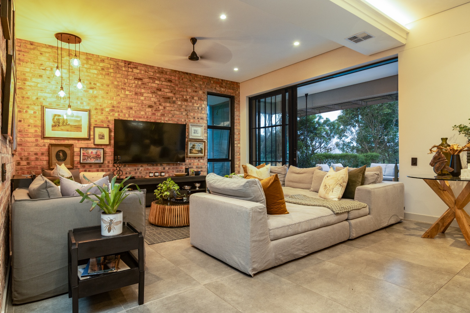 Perched within an exclusive security estate in the coveted coastal enclave of Sheffield Beach, Ballito, this magnificent 5-bedroom, 4.5-bathroom residence epitomises sophisticated seaside living. From its elevated position, on a double stand, the home commands breath-taking distant ocean views, framed by lush landscapes, offering a serene and private sanctuary. The modern architectural design, characterised by clean lines and expansive black-framed windows, creates an immediate sense of grandeur and seamlessly integrates the stunning natural surroundings.