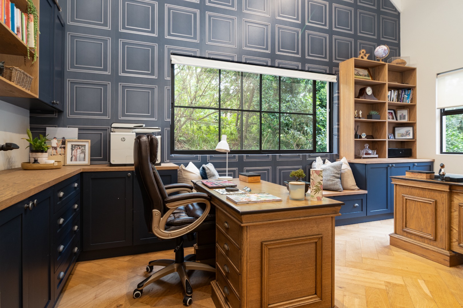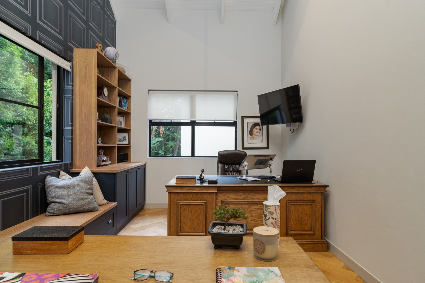 Each of the five generously proportioned bedrooms offers a private retreat, with three boasting opulent en-suite bathrooms. Multiple bedrooms feature private balconies, inviting residents to savour the panoramic sea and greenery vistas. A dedicated study, featuring bespoke built-in cabinetry, a vaulted ceiling, and a cozy window seat, provides an inspiring workspace. The home also includes staff quarters and ample storage solutions.