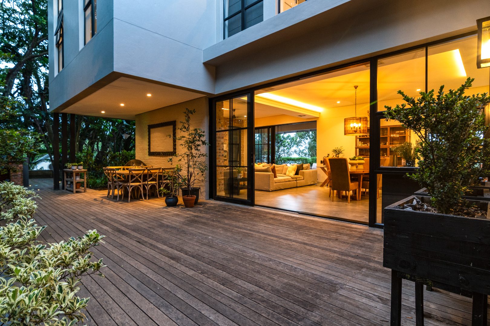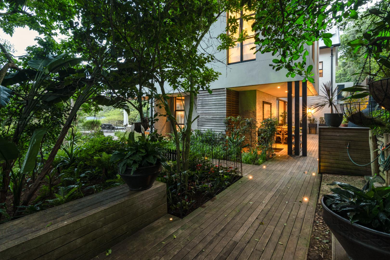 Outdoor living is a true delight, with multiple balconies and a spacious patio providing idyllic spots for relaxation and al fresco dining, all overlooking the sparkling pool and meticulously maintained garden. The property offers three garages and five additional parking spaces. Enhanced by 24-hour security, solar panels, a battery inverter, and water tanks, this residence ensures sustainable and secure living. Air conditioning throughout guarantees year-round comfort.