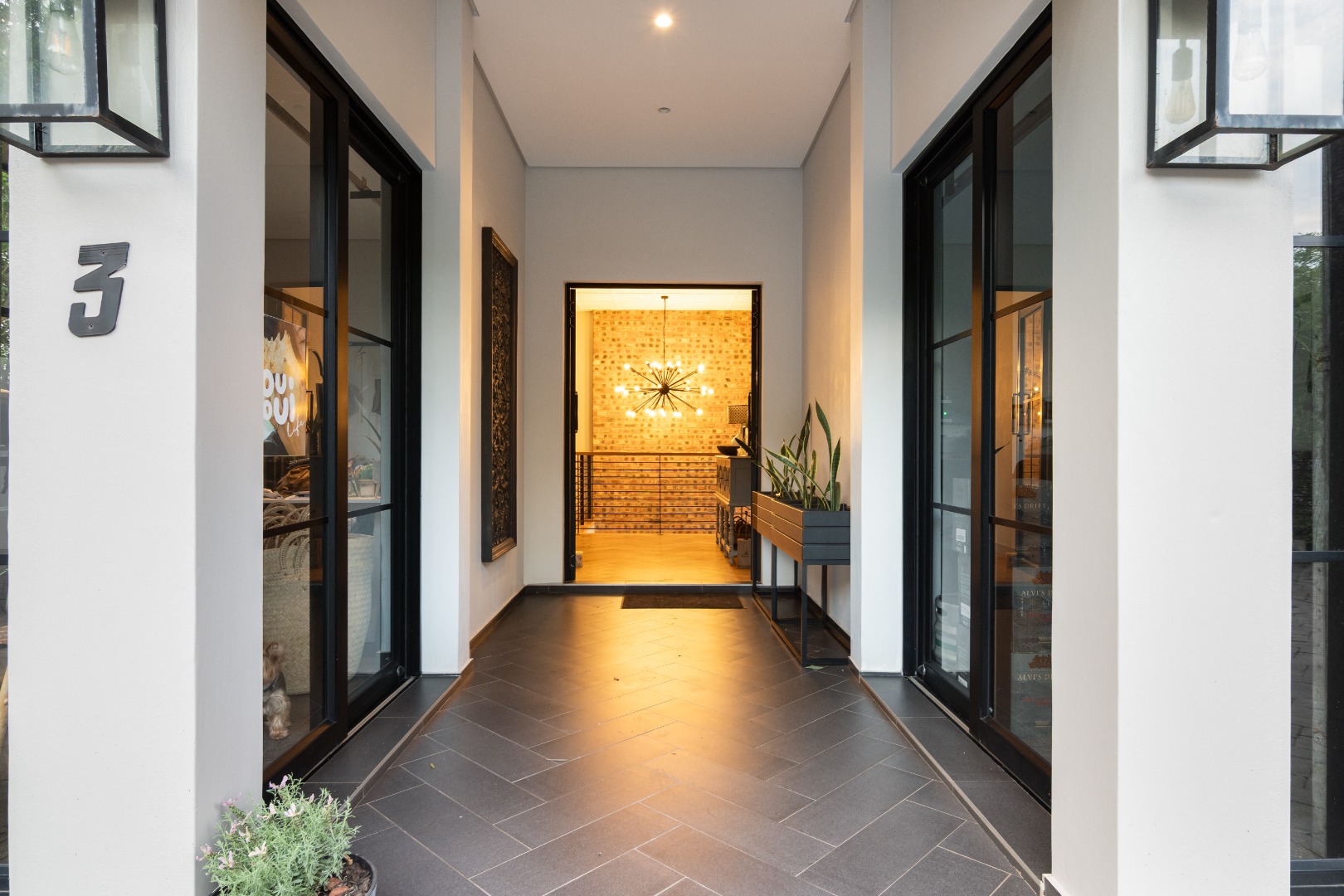 Step inside to discover an interior crafted for discerning tastes. The open-plan living spaces, adorned with elegant herringbone wood flooring and high ceilings, are bathed in abundant natural light. A striking exposed brick wall adds character, while the integrated built-in bar provides an ideal setting for entertaining. The gourmet kitchen, complete with a dedicated pantry, is designed for both functionality and style. For ultimate convenience, a private lift ensures effortless access across all levels of this luxurious abode.
