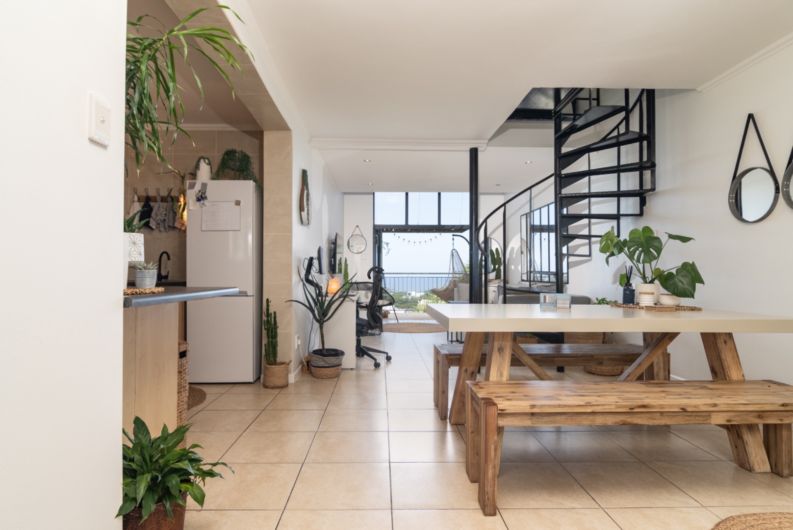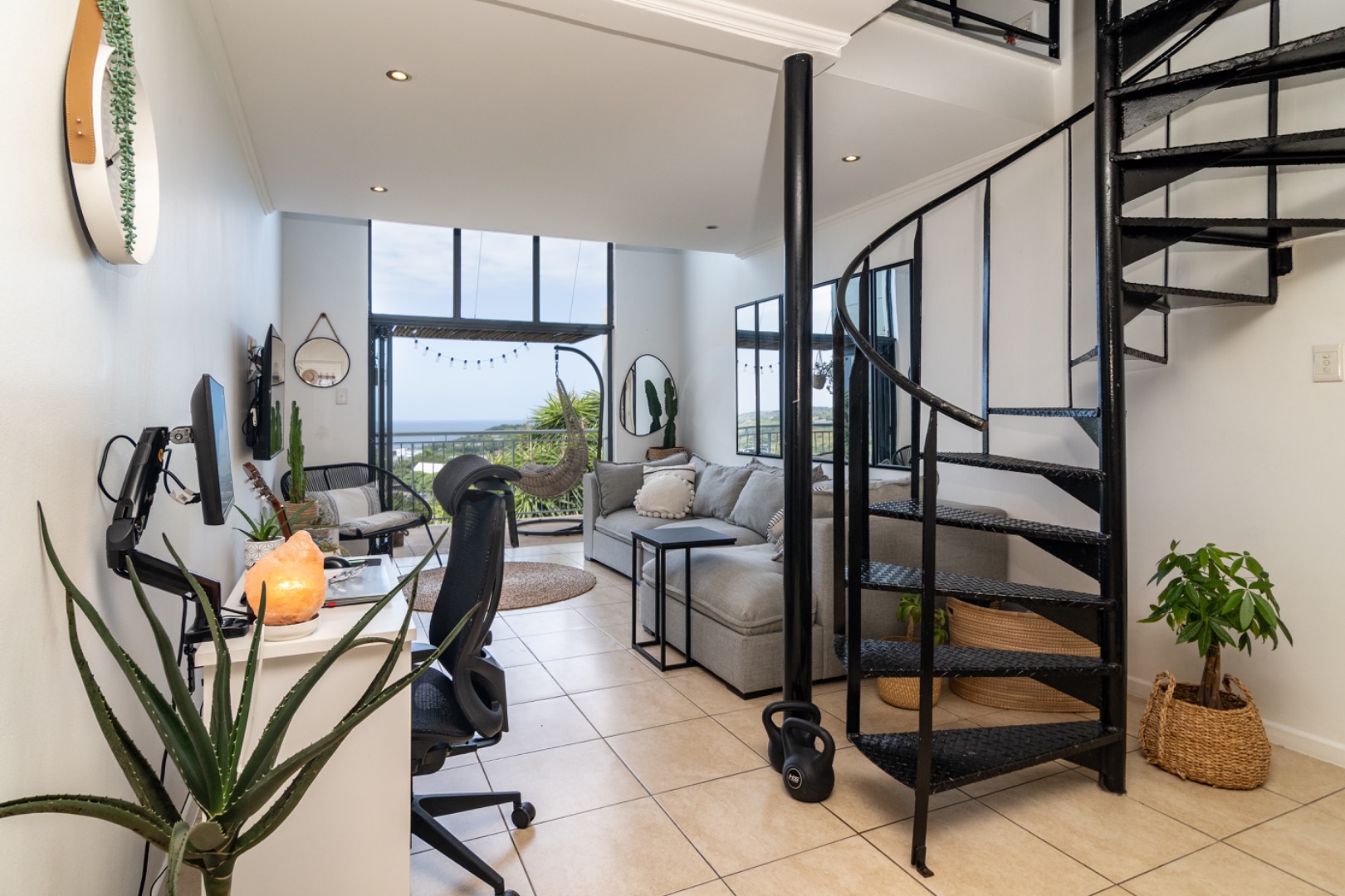 Strategically positioned for easy access to the Main gate, Country Club, and golf course, this property offers the discerning buyer the perfect lock-up-and-go lifestyle. The kitchen features ample counter space and seamlessly connects to the dining and lounge area. The living space is complemented by an elegant spiral staircase leading up to a generous en-suite bedroom upstairs.