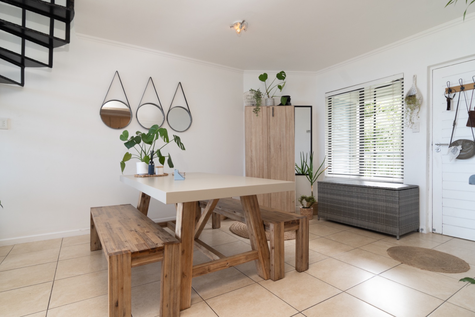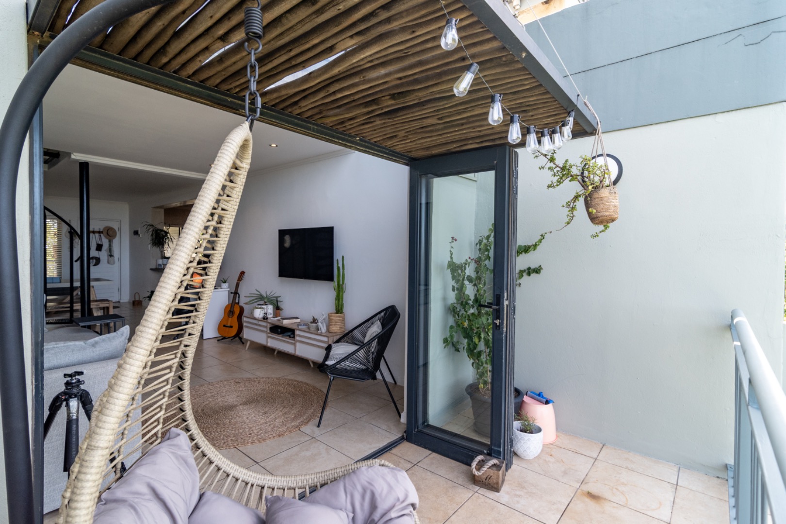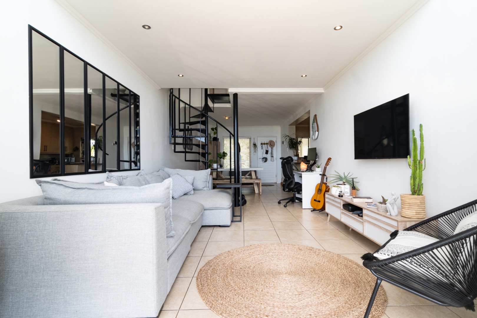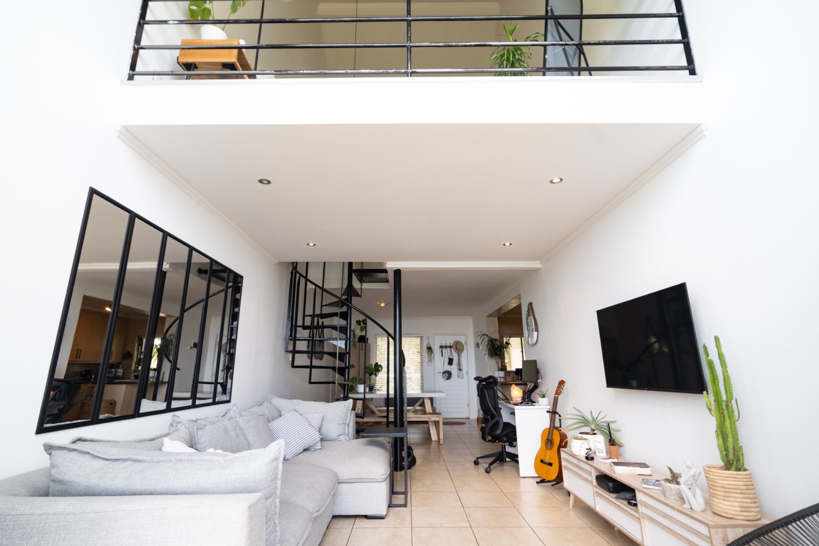 Strategically positioned for easy access to the Main gate, Country Club, and golf course, this property offers the discerning buyer the perfect lock-up-and-go lifestyle. The kitchen features ample counter space and seamlessly connects to the dining and lounge area. The living space is complemented by an elegant spiral staircase leading up to a generous en-suite bedroom upstairs.