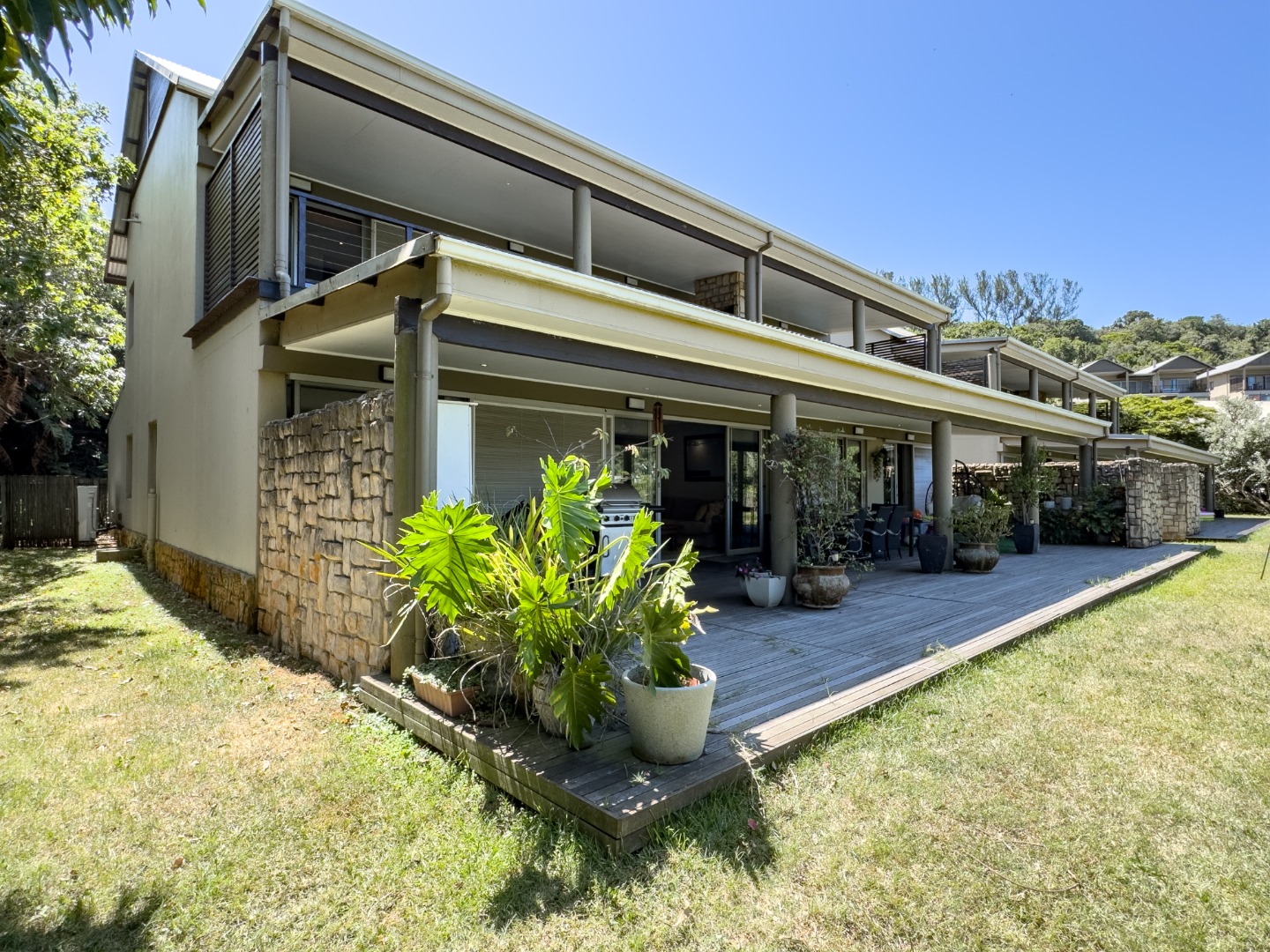 Exclusive Mandate. Discover modern living within the prestigious Simbithi Eco Estate, Ballito, South Africa. This contemporary apartment, spanning 271 sqm is set amongst natural surroundings. Featuring appealing stone accent walls and a well-maintained exterior and a double lock up garage plus there are no stairs.