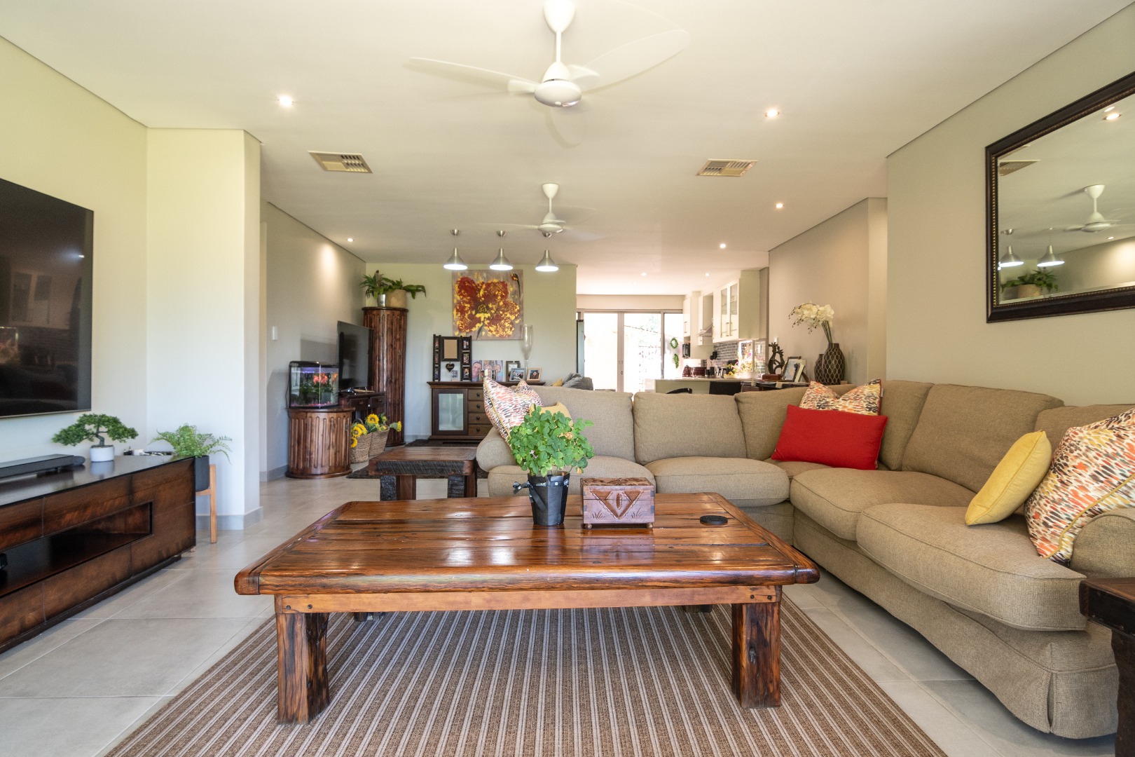 Further enhancing comfort and sustainability, the home is equipped with air conditioning, a water tank, and a battery inverter, ensuring efficiency and resilience. Its wheelchair-friendly access adds to its broad appeal.
