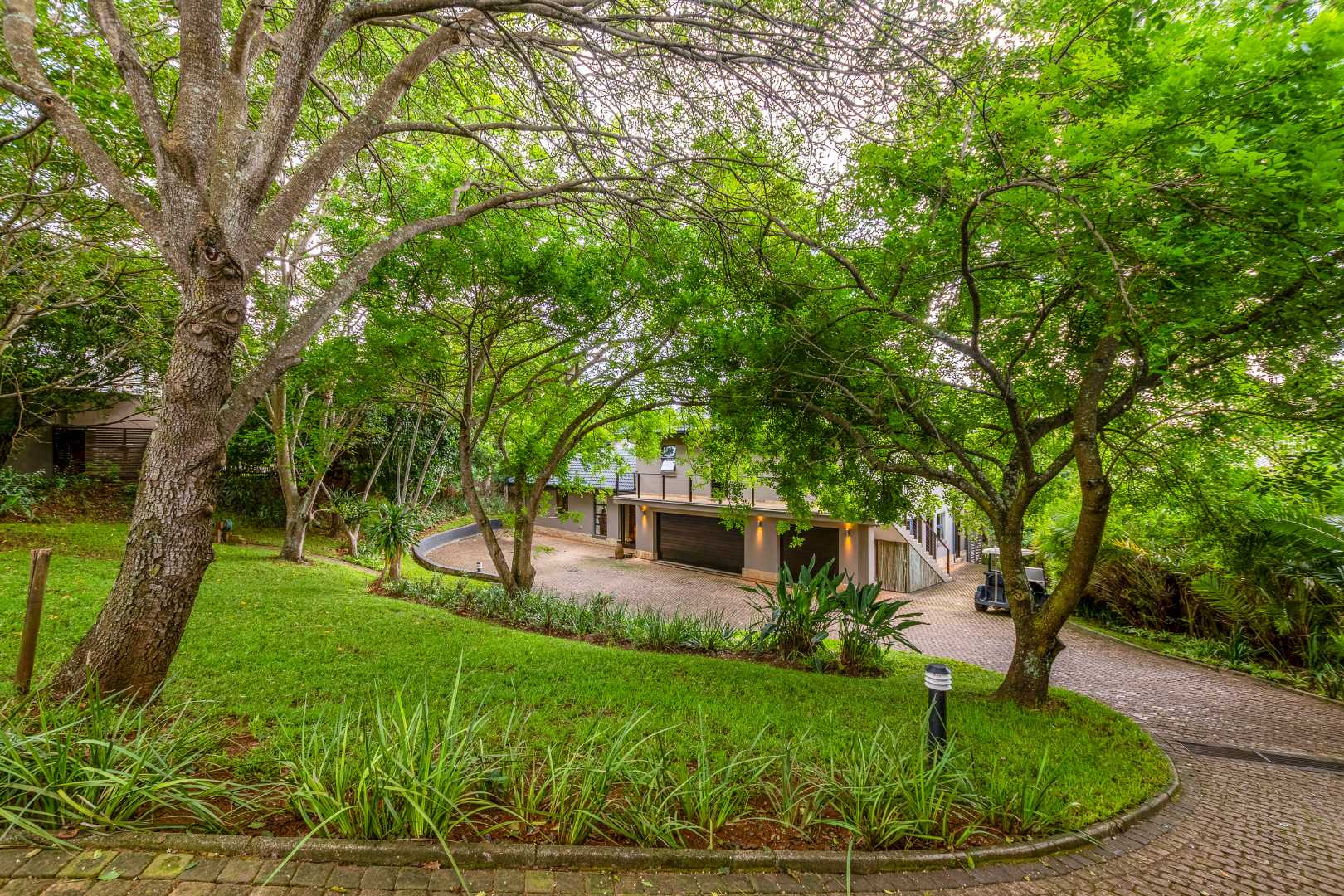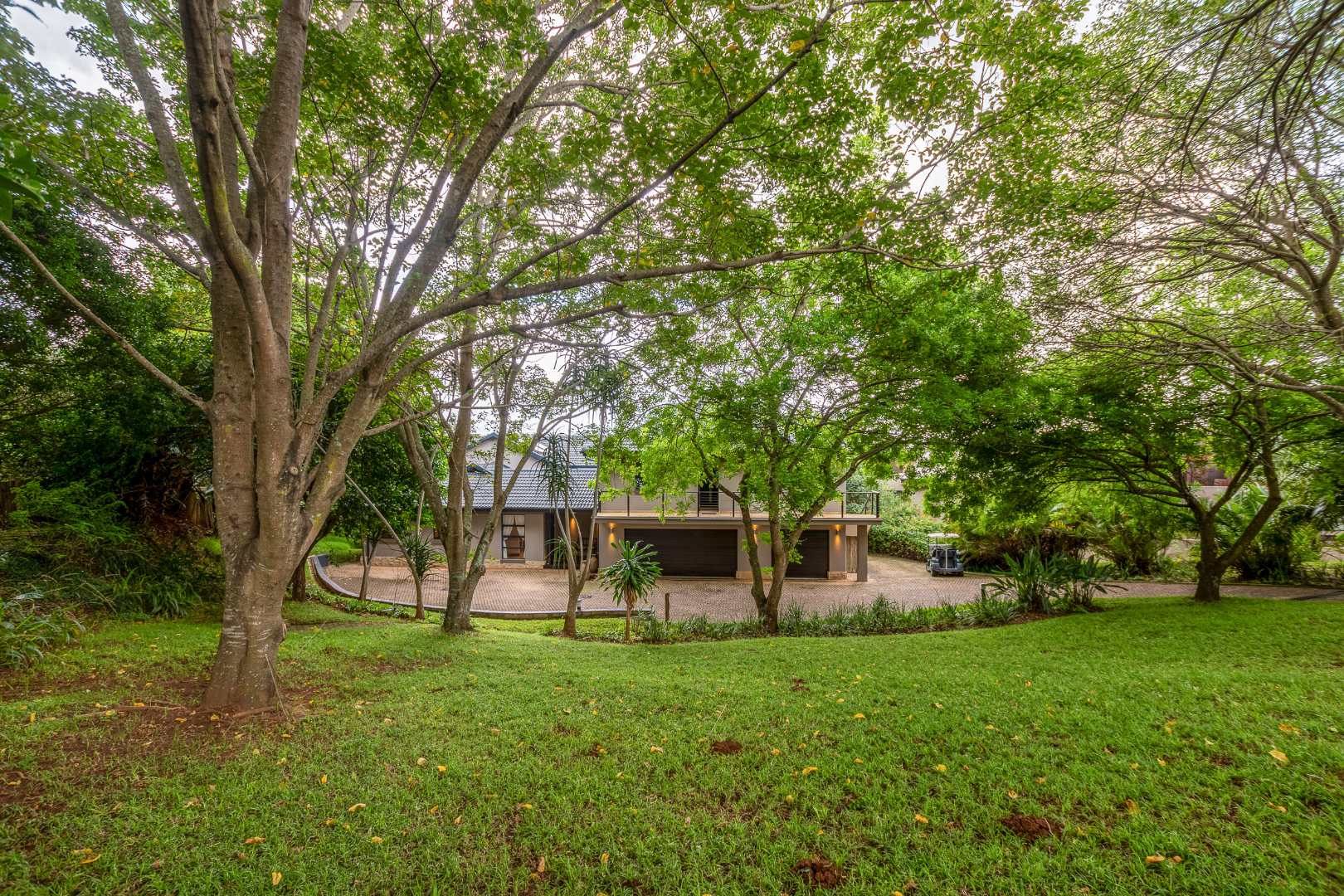 A beautiful driveway lined with mature fever trees and flat-crown trees creates a strong sense of arrival, privacy, and tranquillity from the moment you enter the property.