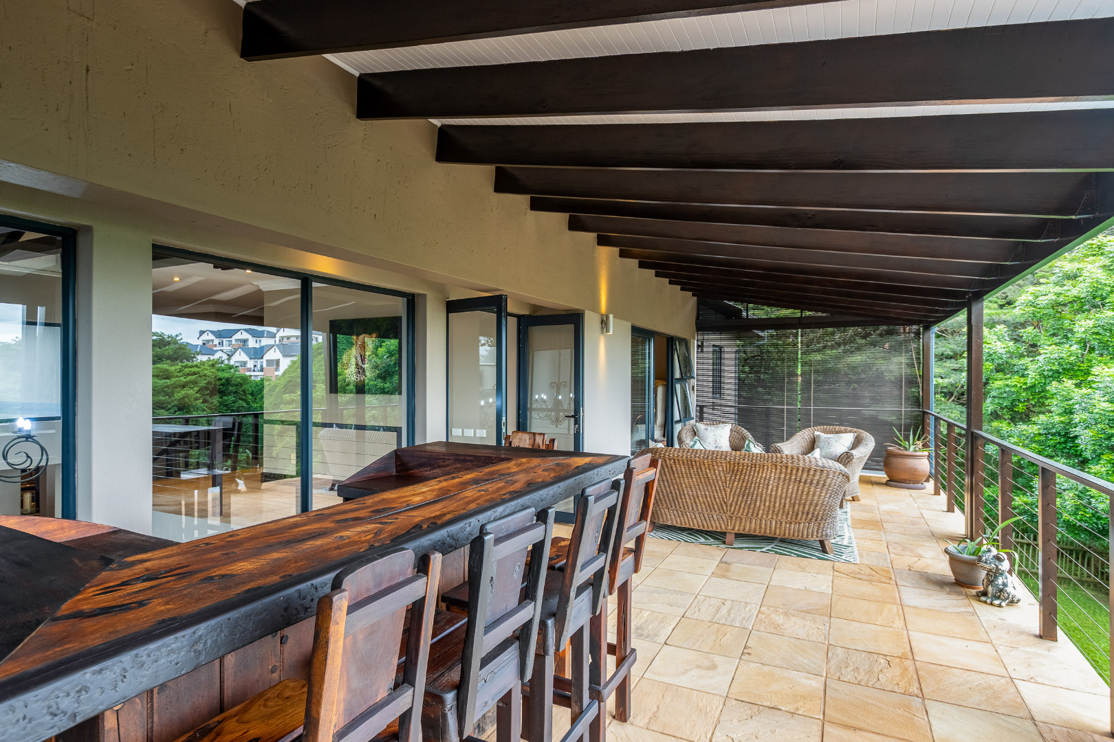 Set on a rare, oversized 2,344m² stand, well above the estate average. This home offers space, privacy, and a true bush-lodge lifestyle within a secure estate in the heart of Ballito.