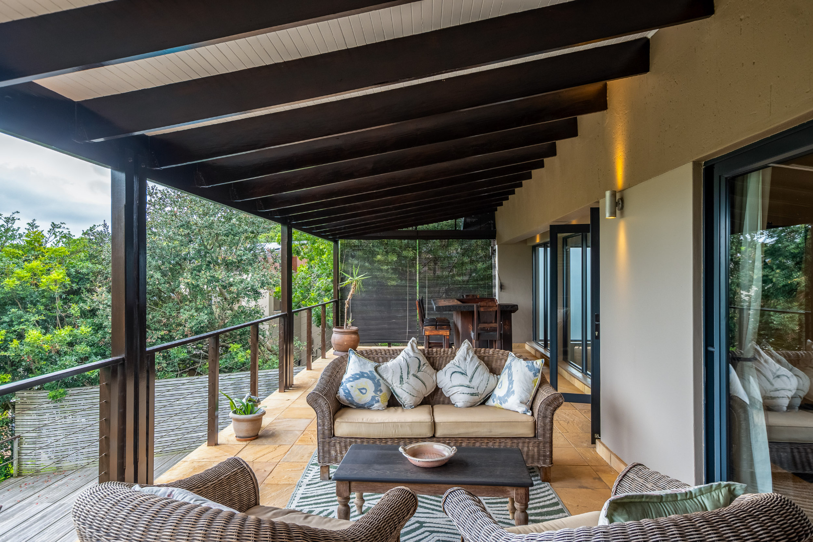Surrounded by indigenous vegetation, roaming buck, and tranquil forest, the property delivers a setting that feels far removed from suburban living, with beautiful sunsets and a natural outlook that creates a calm, immersive environment.