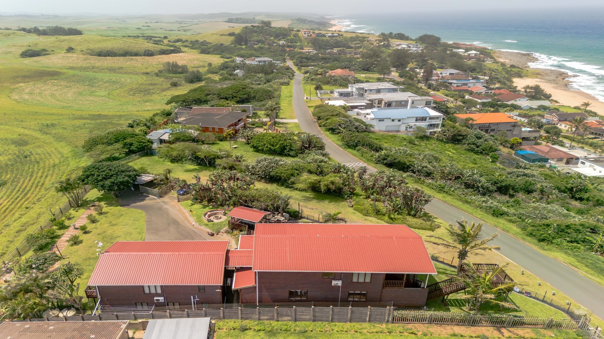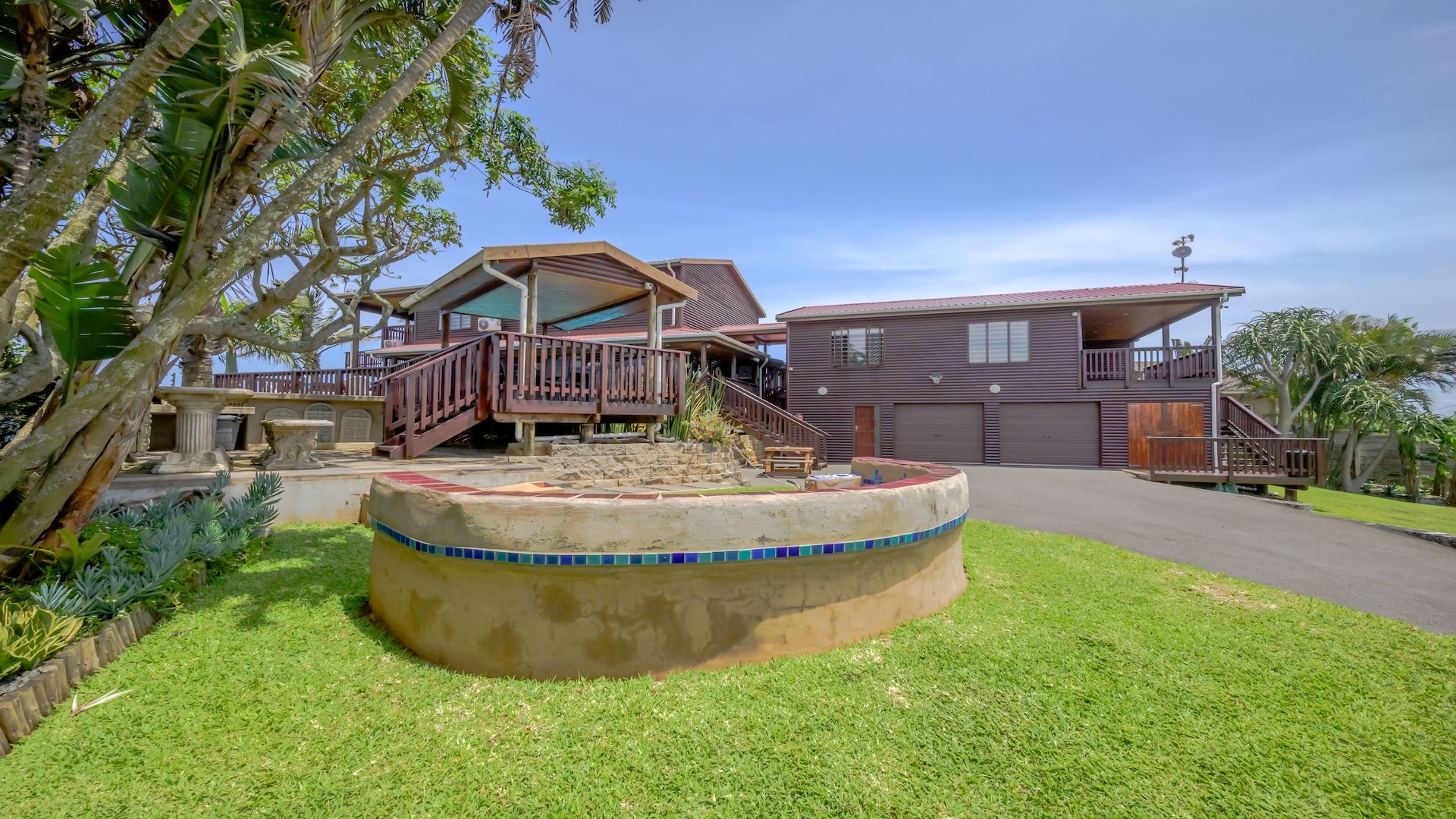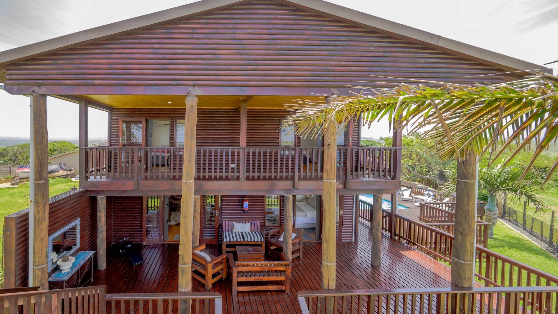 The outdoor area is designed for relaxed coastal living, complete with a sparkling