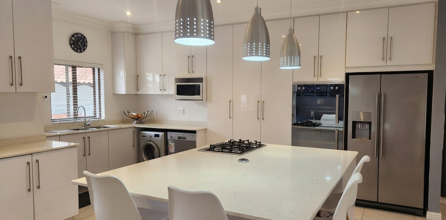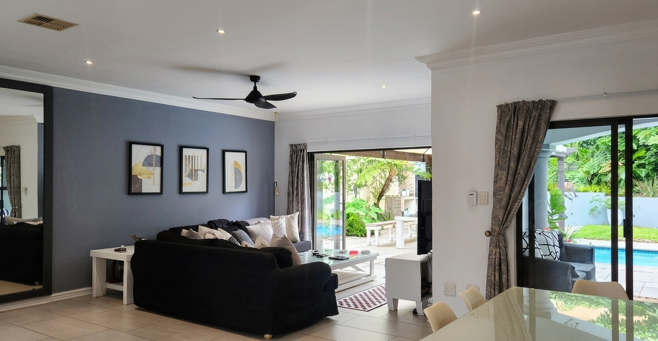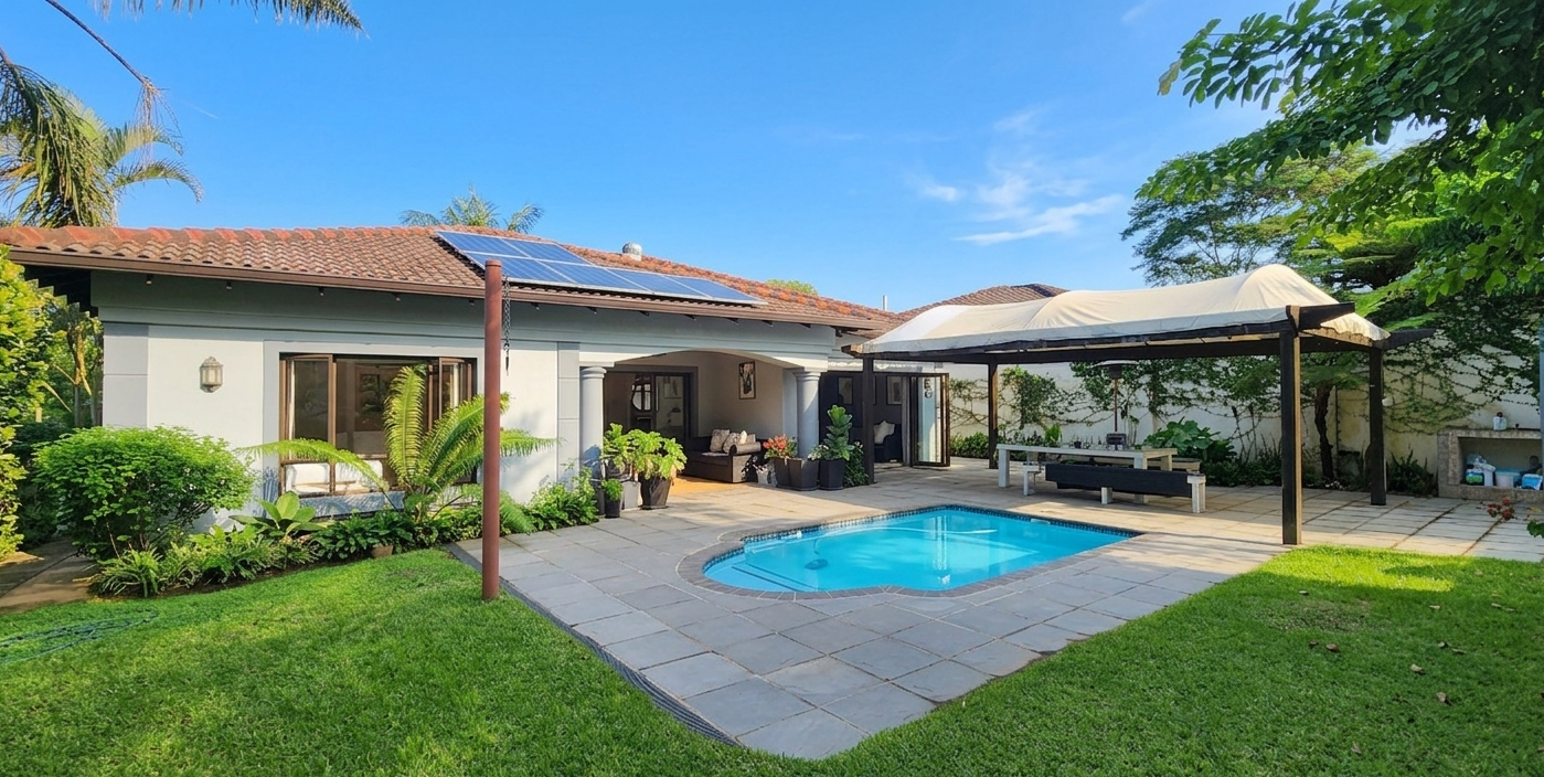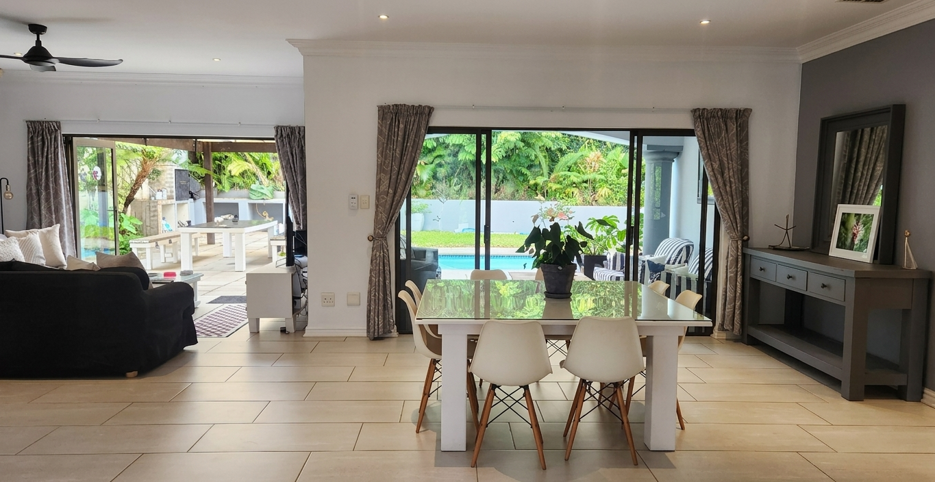 This meticulously presented residence is situated within the esteemed Umhlali Golf Estate in Ballito, offering a secure, family-oriented lifestyle. The property benefits from a comprehensive solar and inverter system, ensuring optimal energy efficiency. A spacious driveway, alongside an automated double garage, provides ample parking. The estate further enhances security with 24-hour surveillance and controlled access.