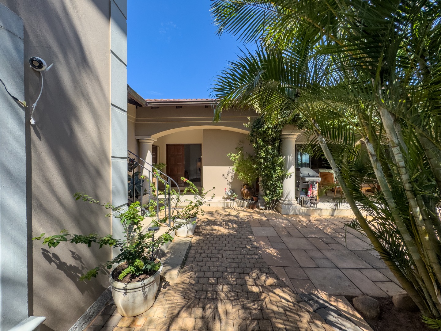 Nestled within the prestigious Umhlali Golf Estate in Ballito, South Africa, this Mediterranean-style residence offers an exceptional opportunity to purchase a home in this sought after area. The property immediately impresses with its attractive architecture, lush landscaping, and inviting entrance.