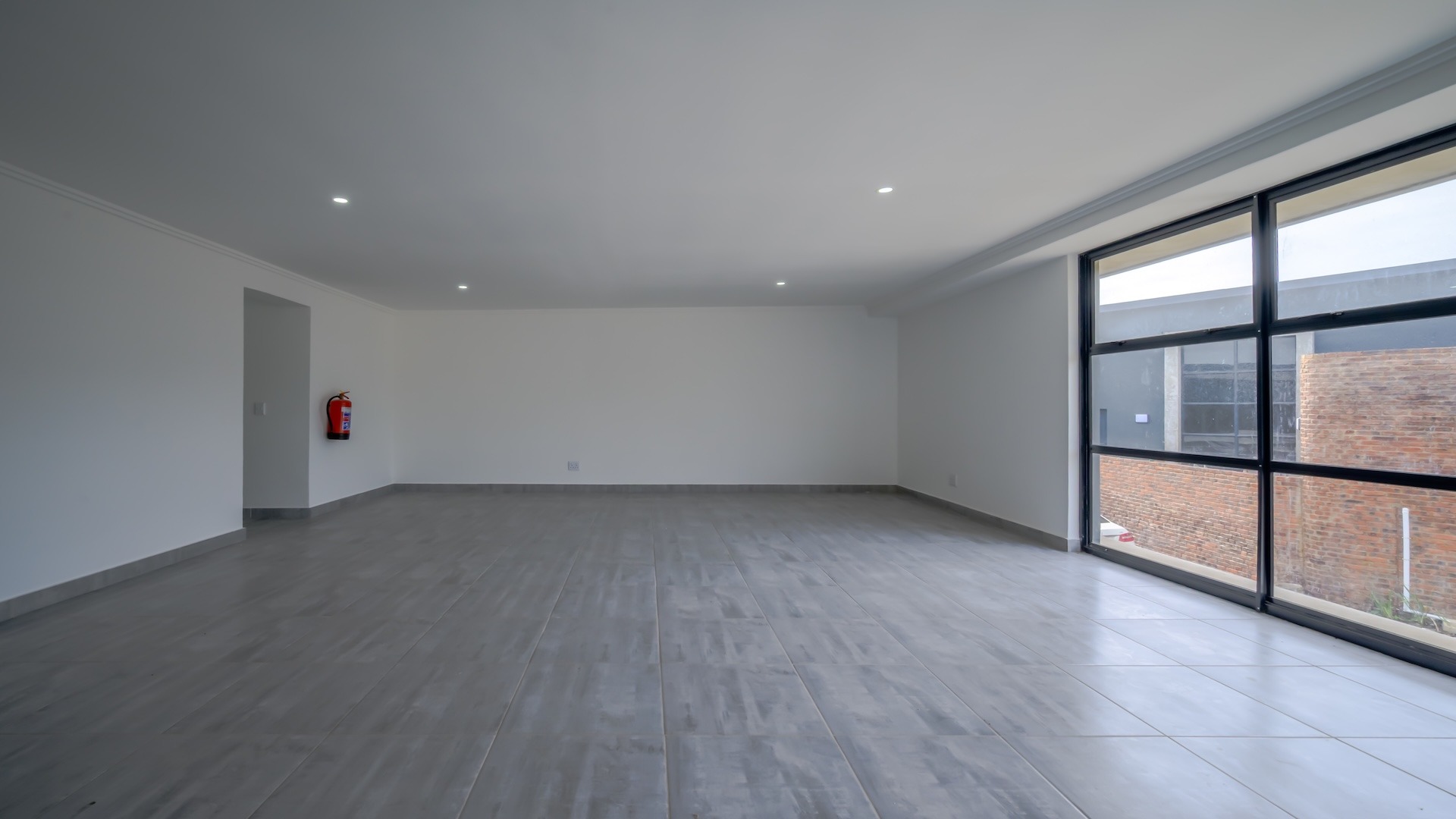 The unit is well-supported by essential infrastructure, including three-phase power, dedicated staff ablutions with a shower, and three allocated parking bays. An elevated, modern office component overlooks the warehouse floor, providing a practical administrative area complete with its own bathroom and kitchenette, offering a comfortable and functional workspace.