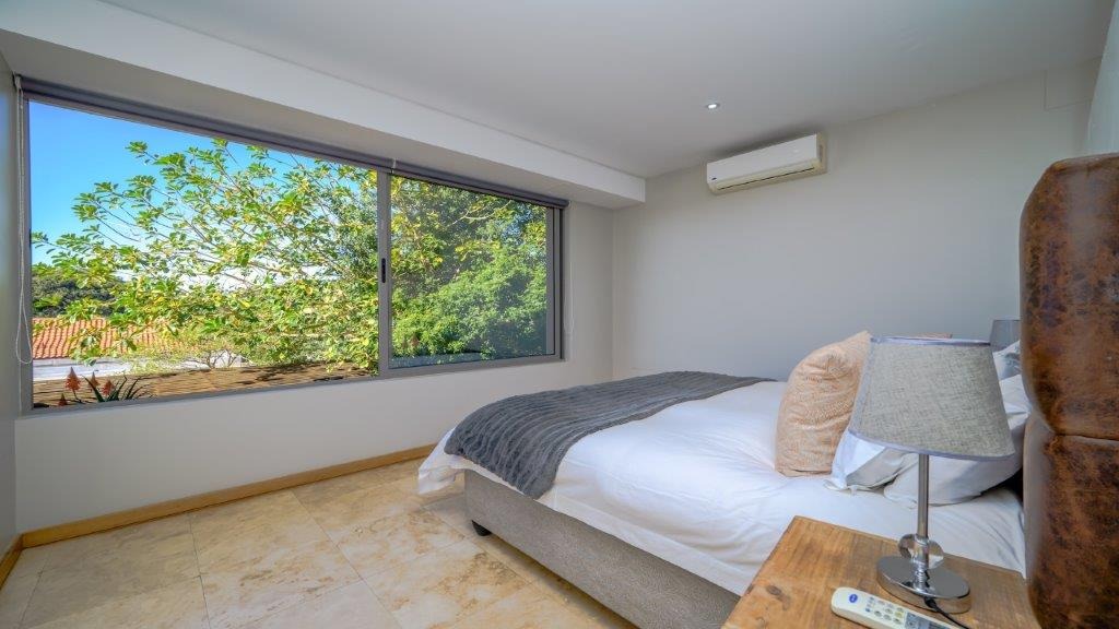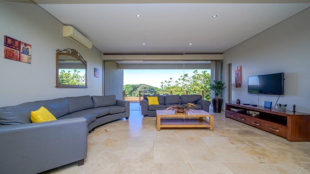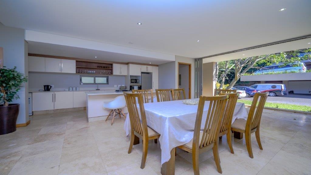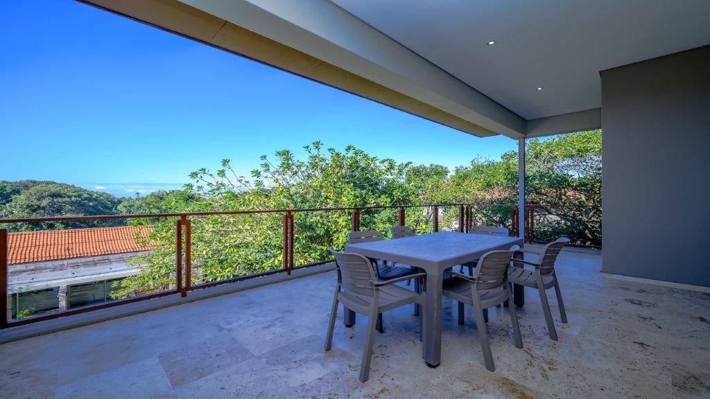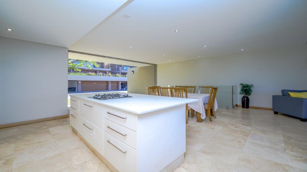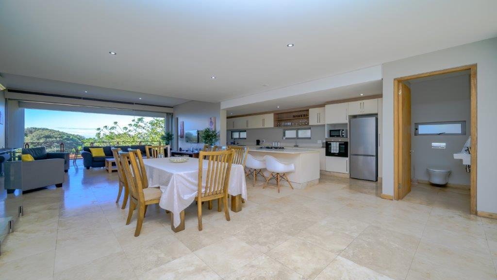 This modern residential property, nestled within the prestigious Zimbali Coastal Resort & Estate in Ballito, South Africa, offers an exceptional lifestyle. Its contemporary architectural design immediately impresses, featuring large glass doors that create a seamless indoor-outdoor flow and provide abundant natural light. The property boasts a prime location within a security estate, offering both coastal proximity and country club amenities, including a golf course and clubhouse. Step inside to discover an expansive open-plan layout that effortlessly connects the living, dining, and kitchen areas. The modern kitchen is a chef's delight, equipped with a large central island, a gas hob, and integrated appliances, complemented by ample cabinet and counter space. Large sliding glass doors throughout the main living areas open to reveal breathtaking scenic views, enhancing the sense of space and tranquility. A contemporary glass-railed staircase adds a touch of elegance, while air conditioning ensures comfort year-round. The home features three comfortable bedrooms, each designed for relaxation. With three en-suite bathrooms and an additional guest toilet, convenience and privacy are paramount for residents and visitors alike. The thoughtful layout ensures that every space is utilized efficiently, providing a harmonious living environment. Outside, the property extends its appeal with a private pool, perfect for relaxation and entertaining. The large sliding doors lead to a balcony and a well-maintained garden, offering a serene retreat with picturesque views. A dedicated parking space adds to the practicality of this exquisite home. The estate's 24-hour security and access gate provide peace of mind, allowing residents to fully enjoy the exclusive coastal and country club lifestyle. Key Features: * 3 Bedrooms, 3.5 Bathrooms (3 En-suite) * Modern Open-Plan Living * Contemporary Kitchen with Gas Hob & Island * Large Sliding Glass Doors & Scenic Views * Private Pool & Balcony * Air Conditioning * 1 Parking Space * 24-Hour Security Estate with Access Gate * Coastal & Country Club Lifestyle