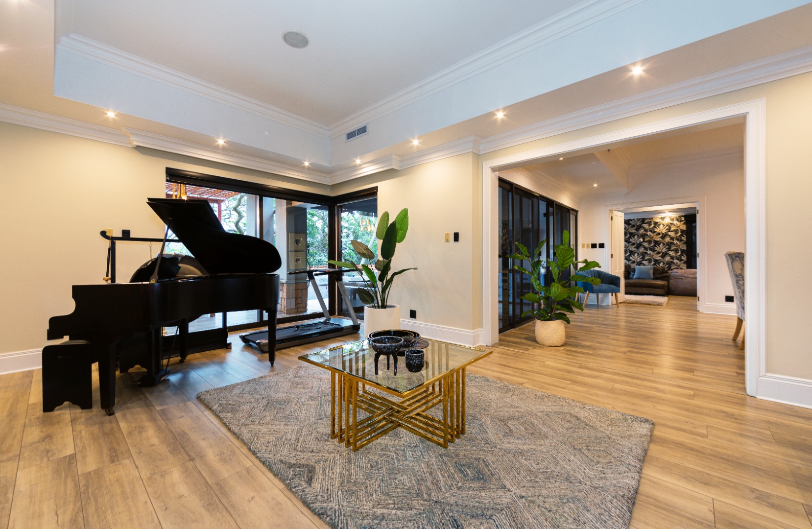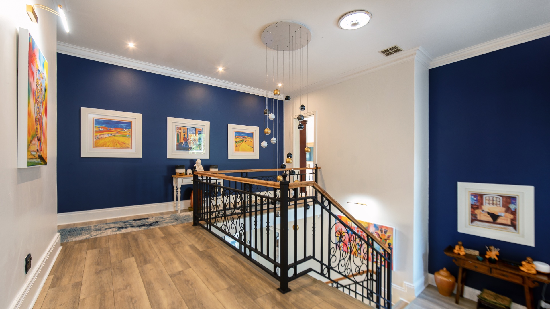 The home has three garages, staff quarters, backup power supply and additional parking for 6-8 cars.