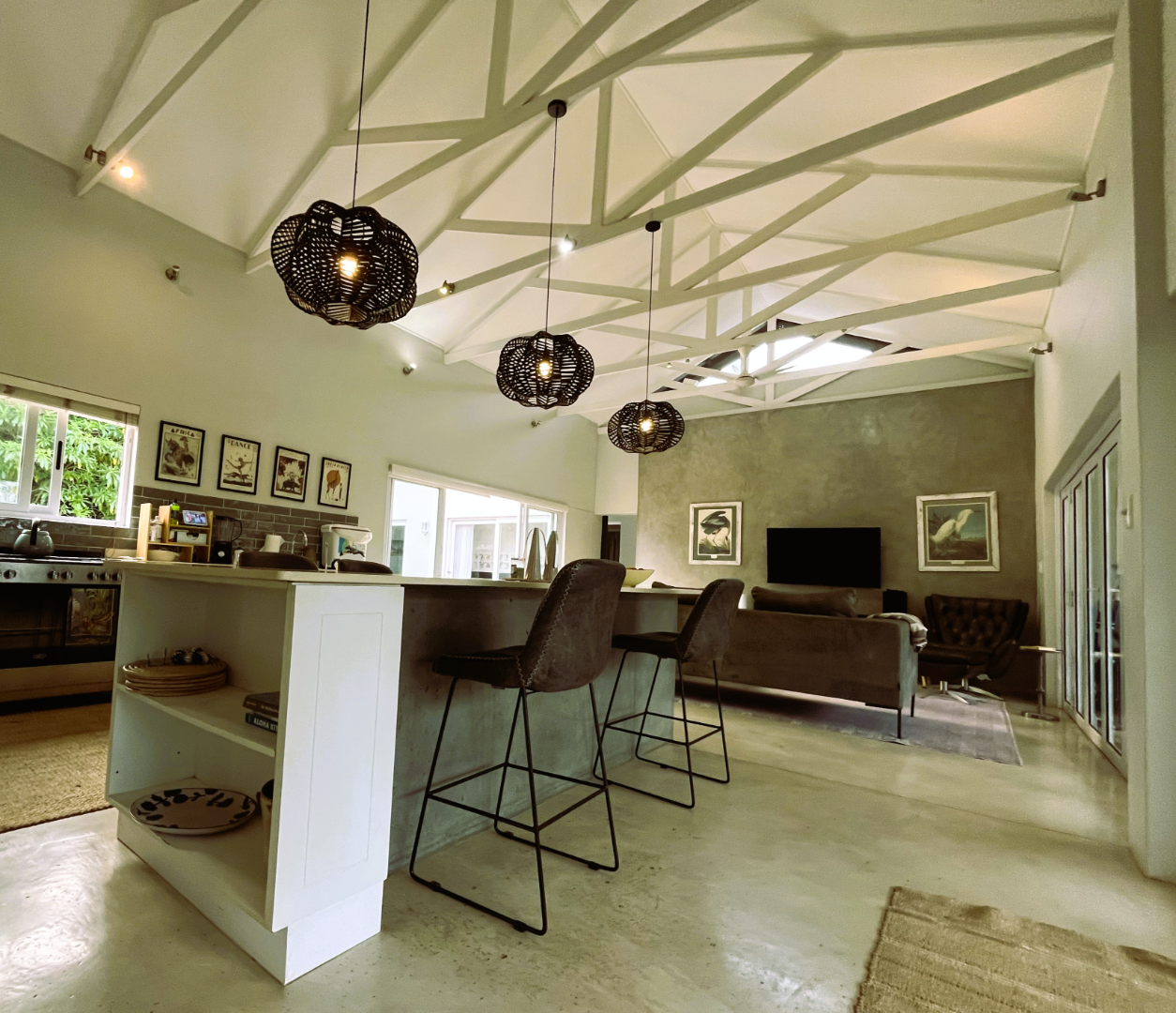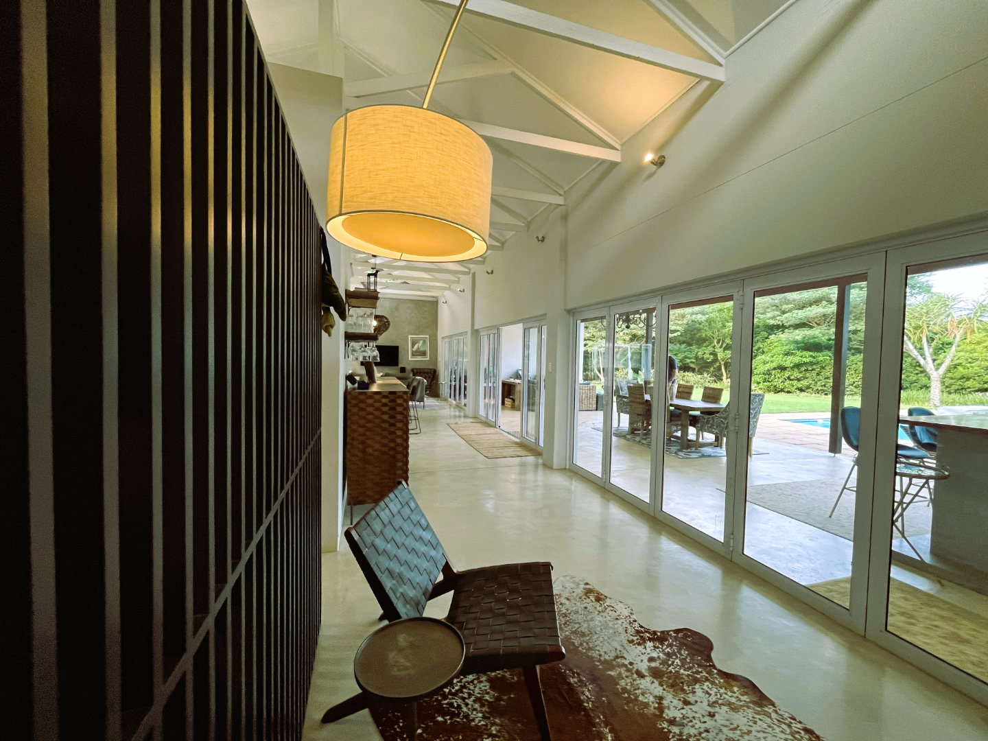A key feature of the home is the large covered veranda with sliding stacking doors, allowing the home to open up completely for effortless indoor-outdoor living. This space is perfectly designed for entertaining, featuring a generous outdoor lounge, dining area, and a built-in bar overlooking the garden.