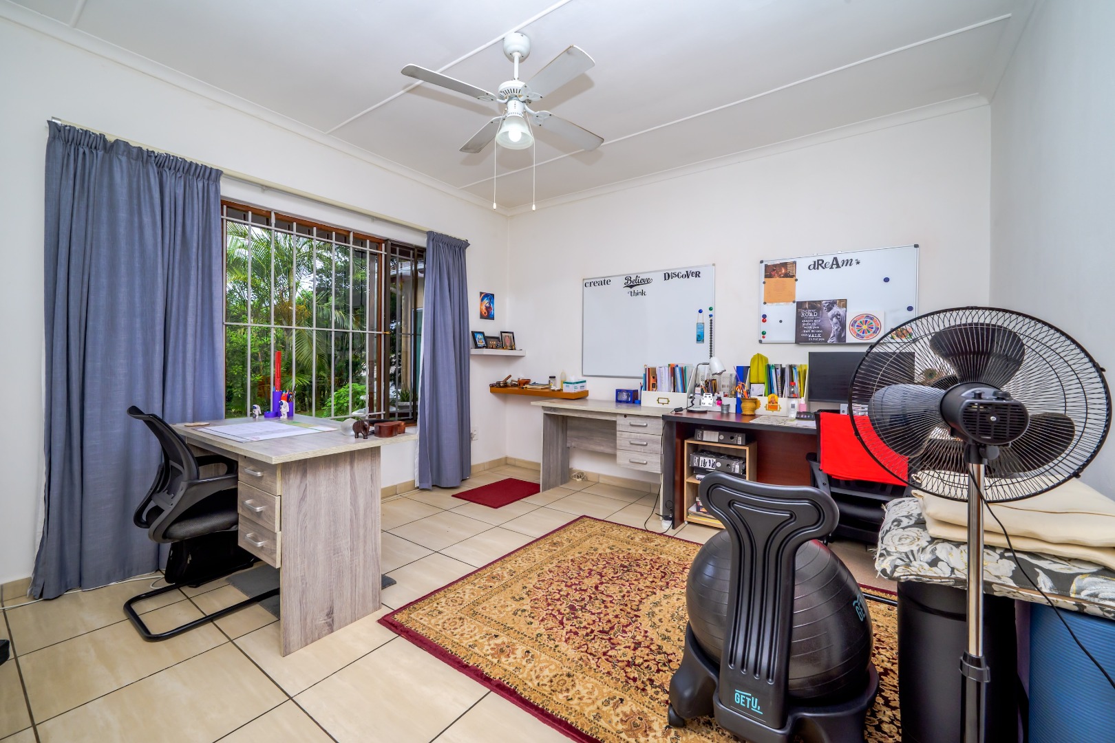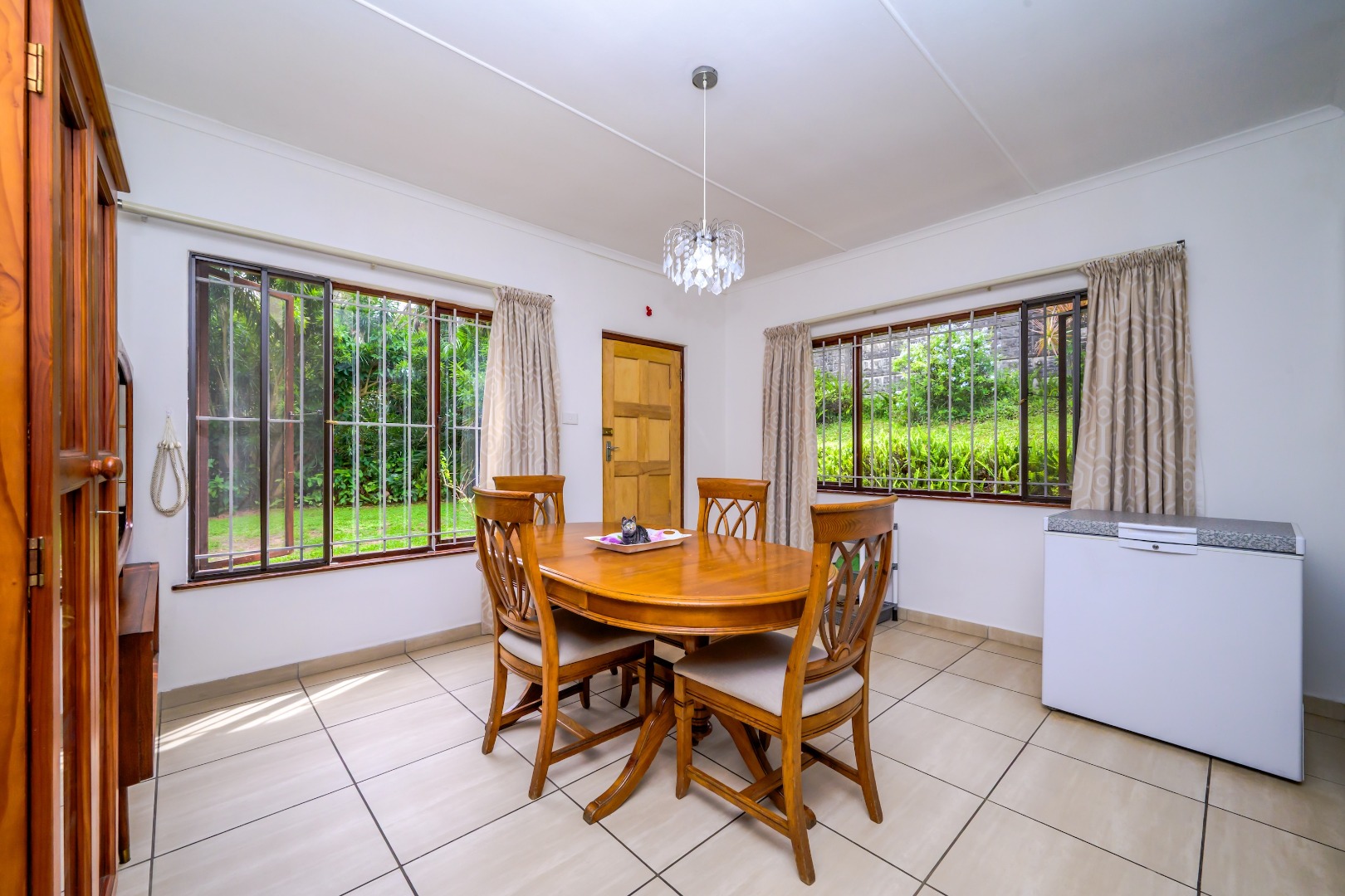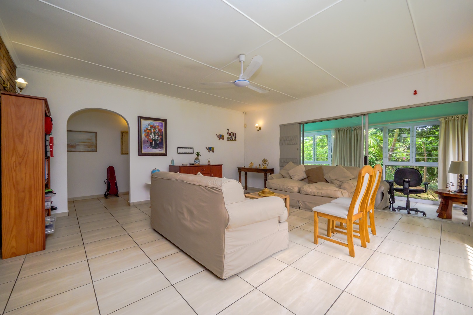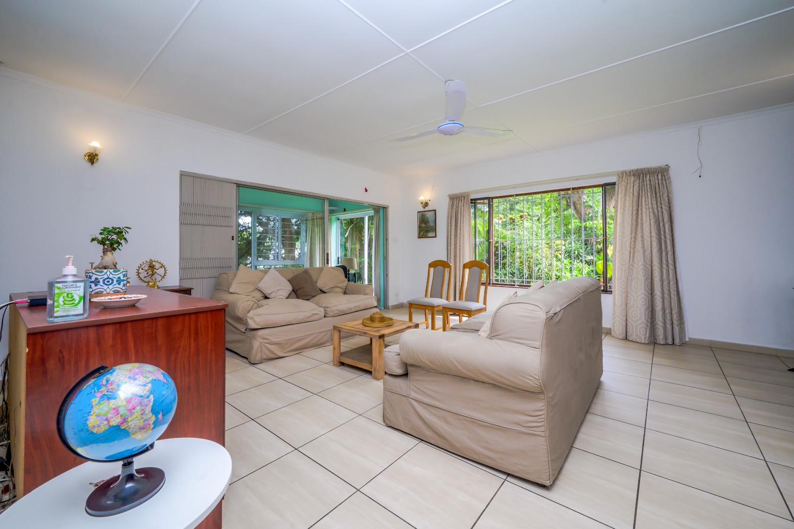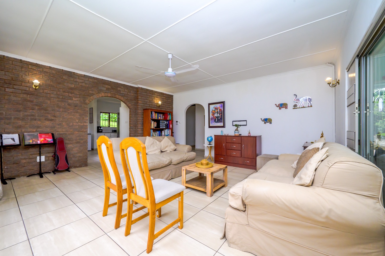 There are four well-sized bedrooms and 2.5 bathrooms, including a main en-suite bathroom and a guest toilet for convenience. The living areas are tiled throughout, making the home easy to maintain.