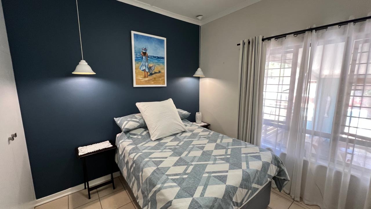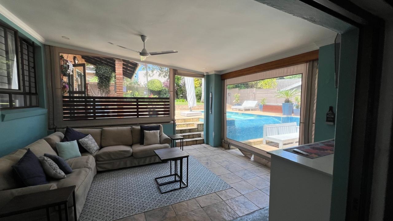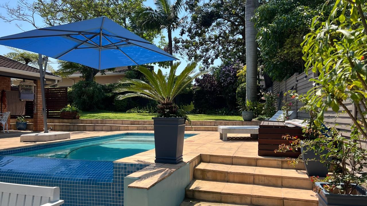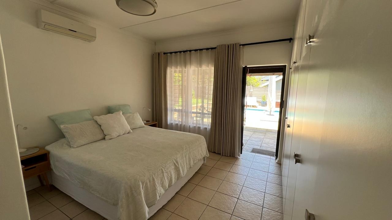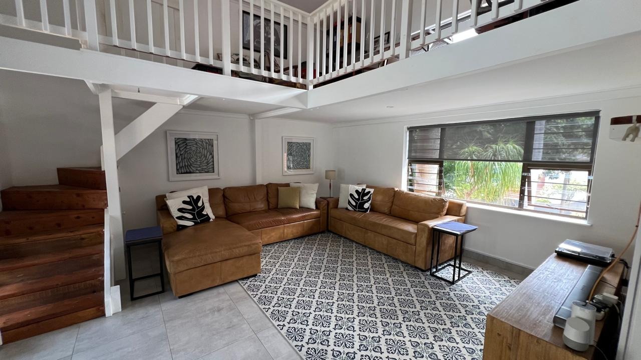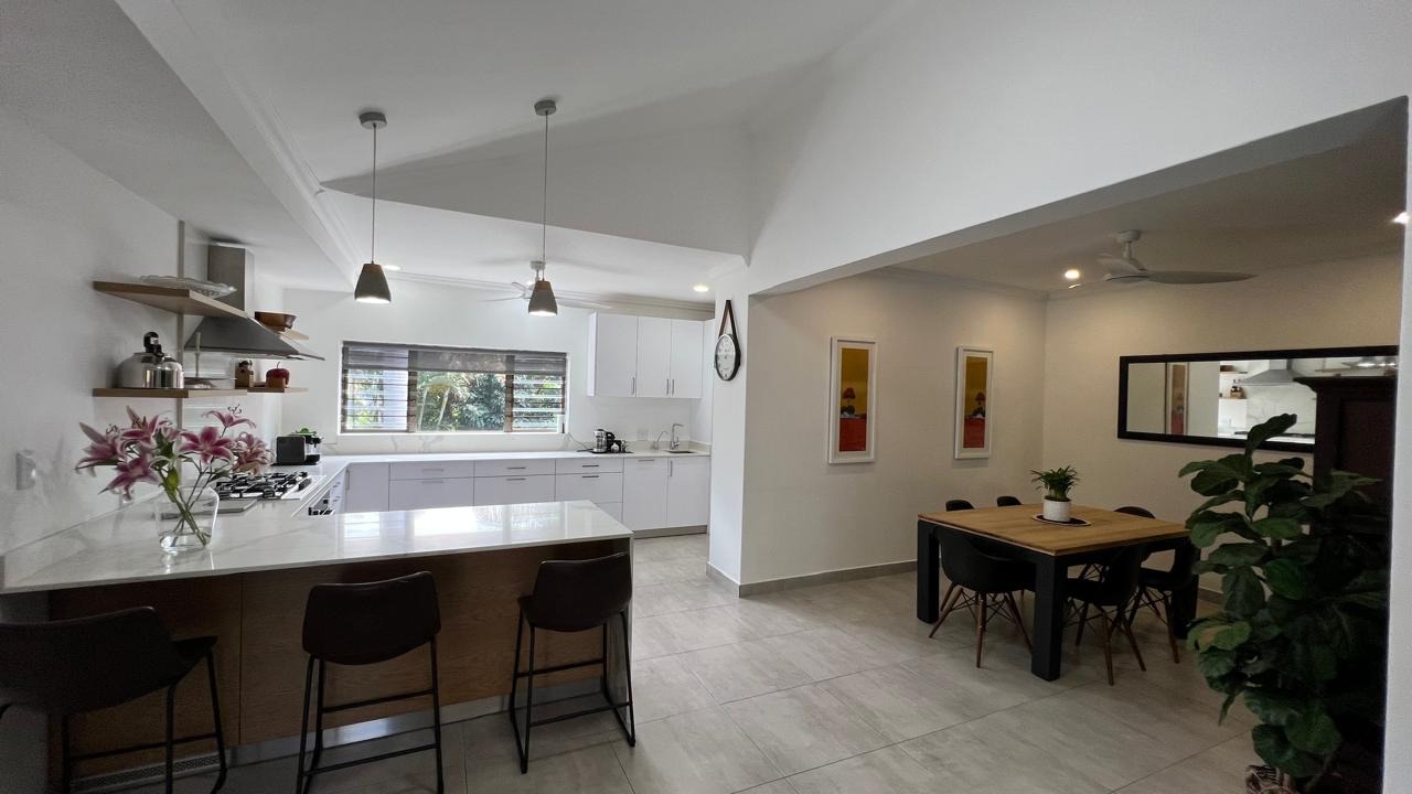 This contemporary 3-bedroom, 2.5-bathroom residence offers an ideal rental opportunity in Ballito Central. The open-plan living area features a modern kitchen with sleek white cabinetry, a large island, and a pantry. This inviting space flows into the dining and lounge areas, enhanced by air conditioning and natural light.