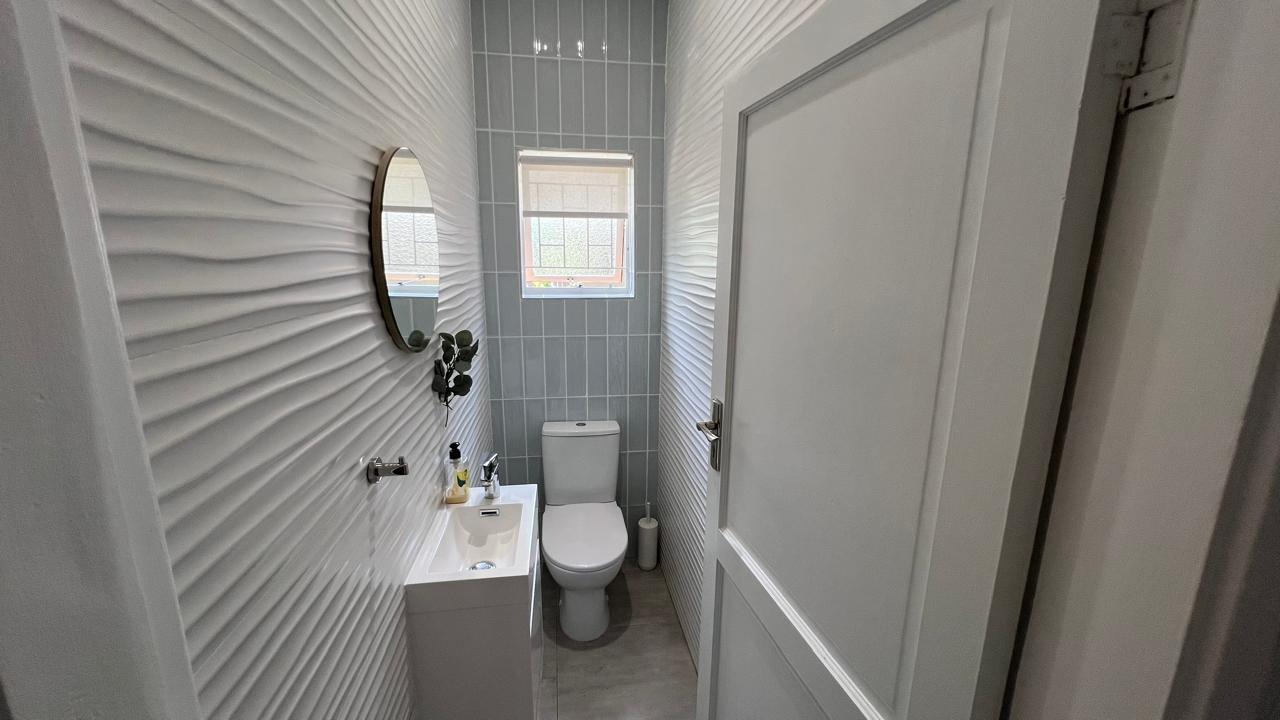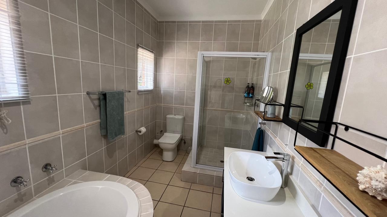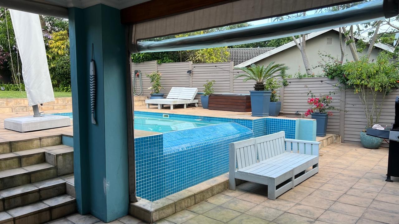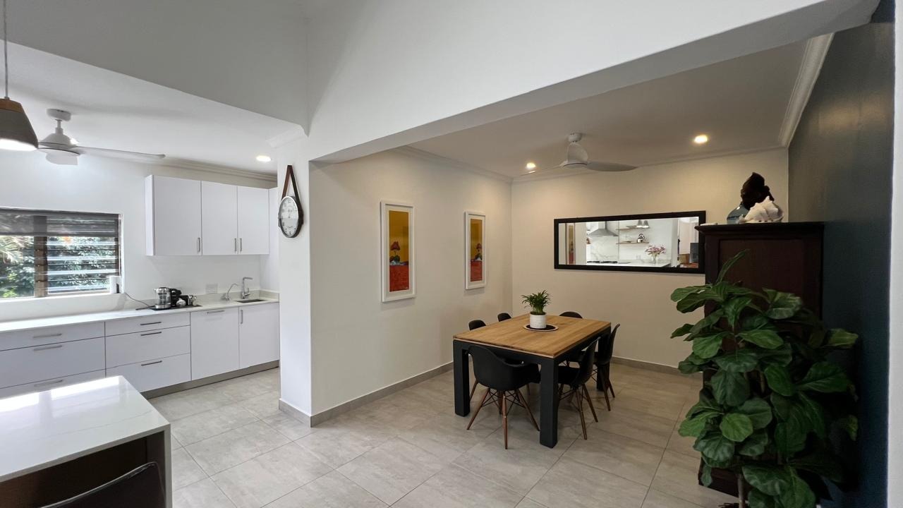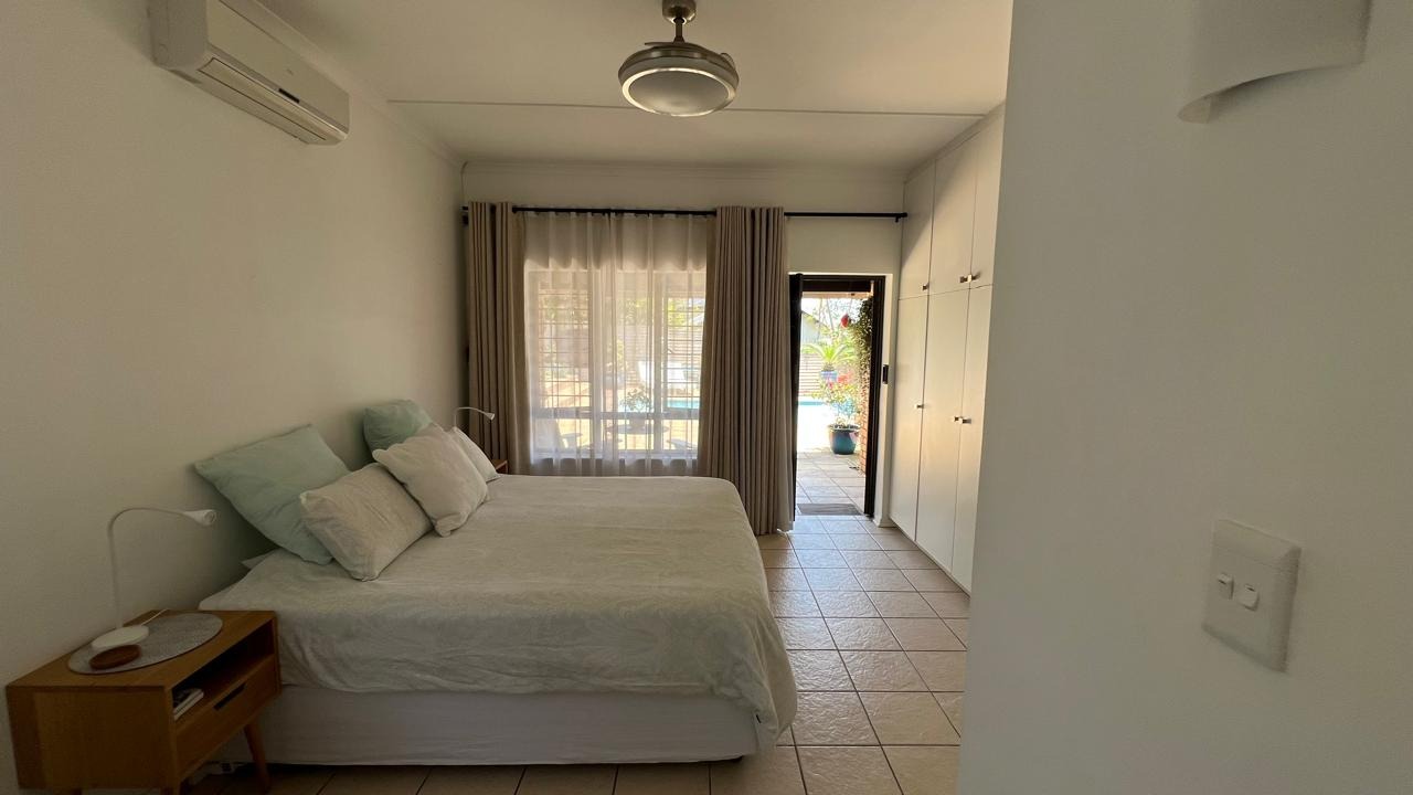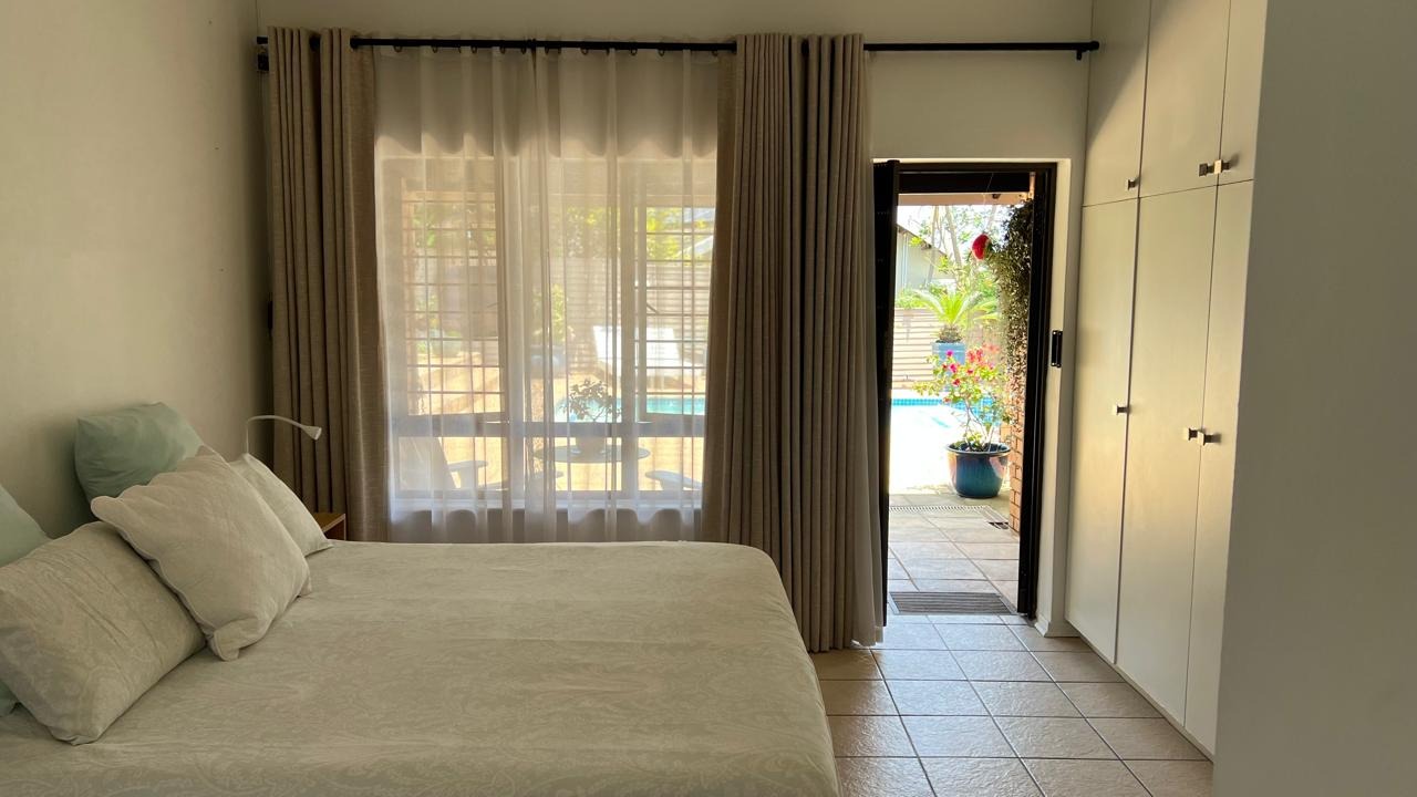 This contemporary 3-bedroom, 2.5-bathroom residence offers an ideal rental opportunity in Ballito Central. The open-plan living area features a modern kitchen with sleek white cabinetry, a large island, and a pantry. This inviting space flows into the dining and lounge areas, enhanced by air conditioning and natural light.