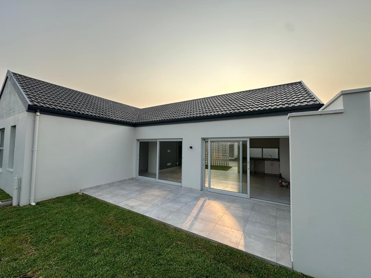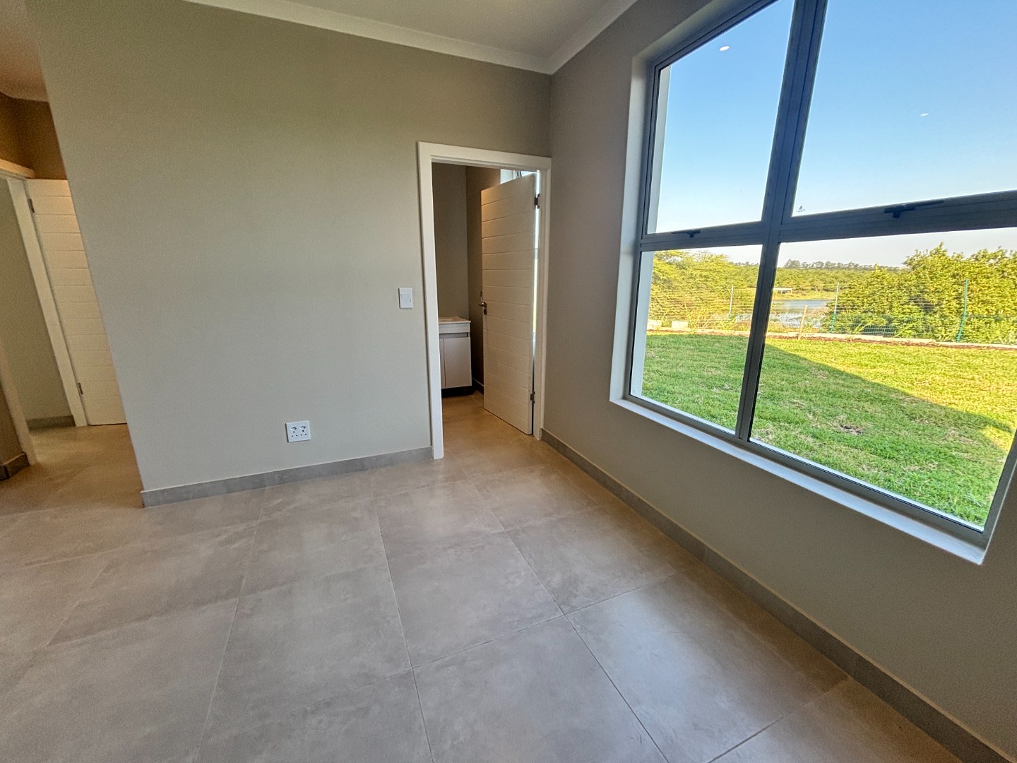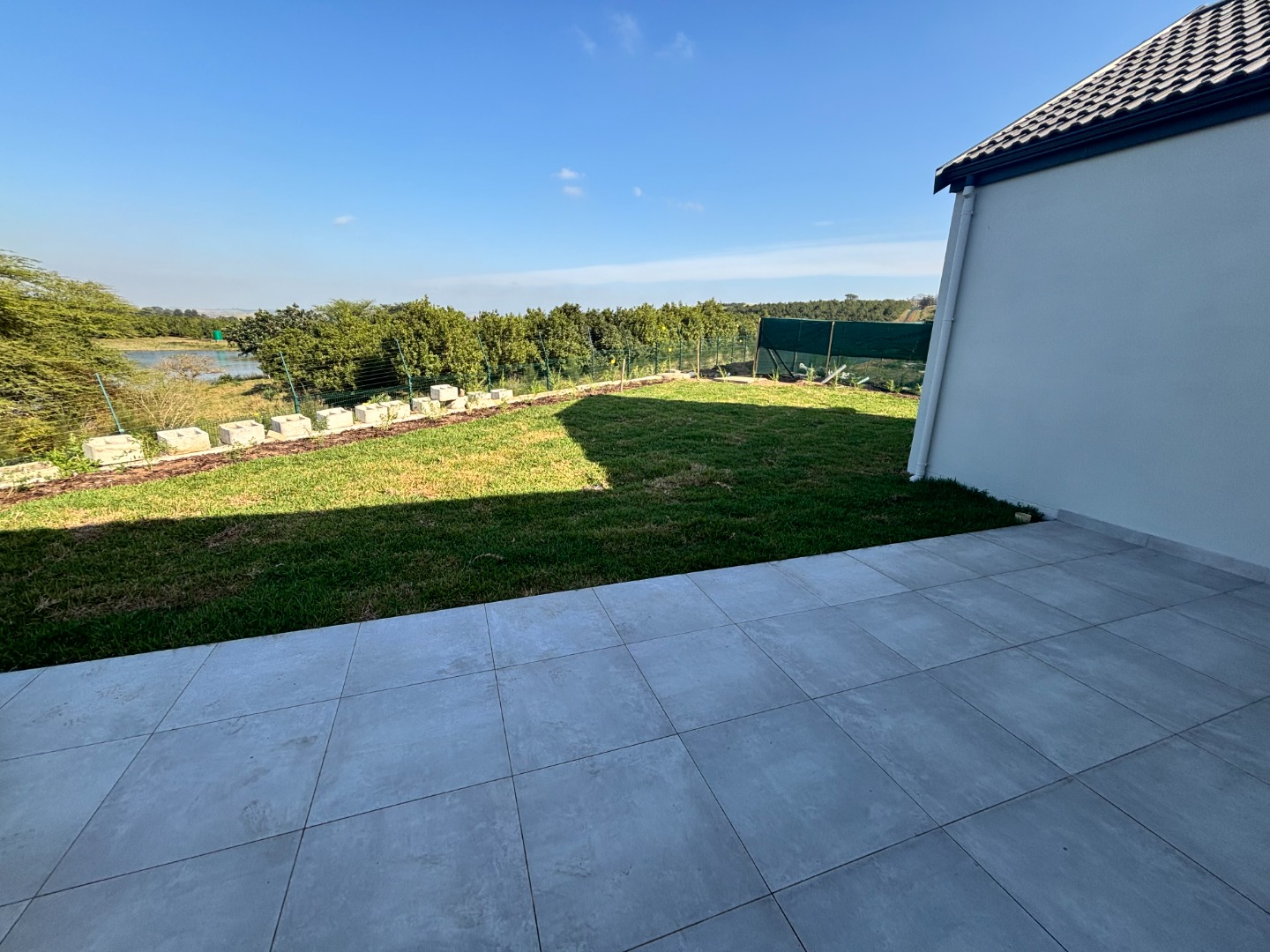 This modern home offers three bedrooms and two bathrooms, featuring an open-plan kitchen and lounge that flow seamlessly onto a covered patio and spacious pet-friendly garden with scenic dam views. All bedrooms are fitted with air-conditioning for year-round comfort. Additional features include a double garage and access to the secure lifestyle offered within Lalela Estate.