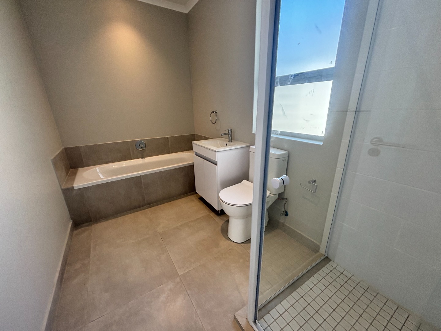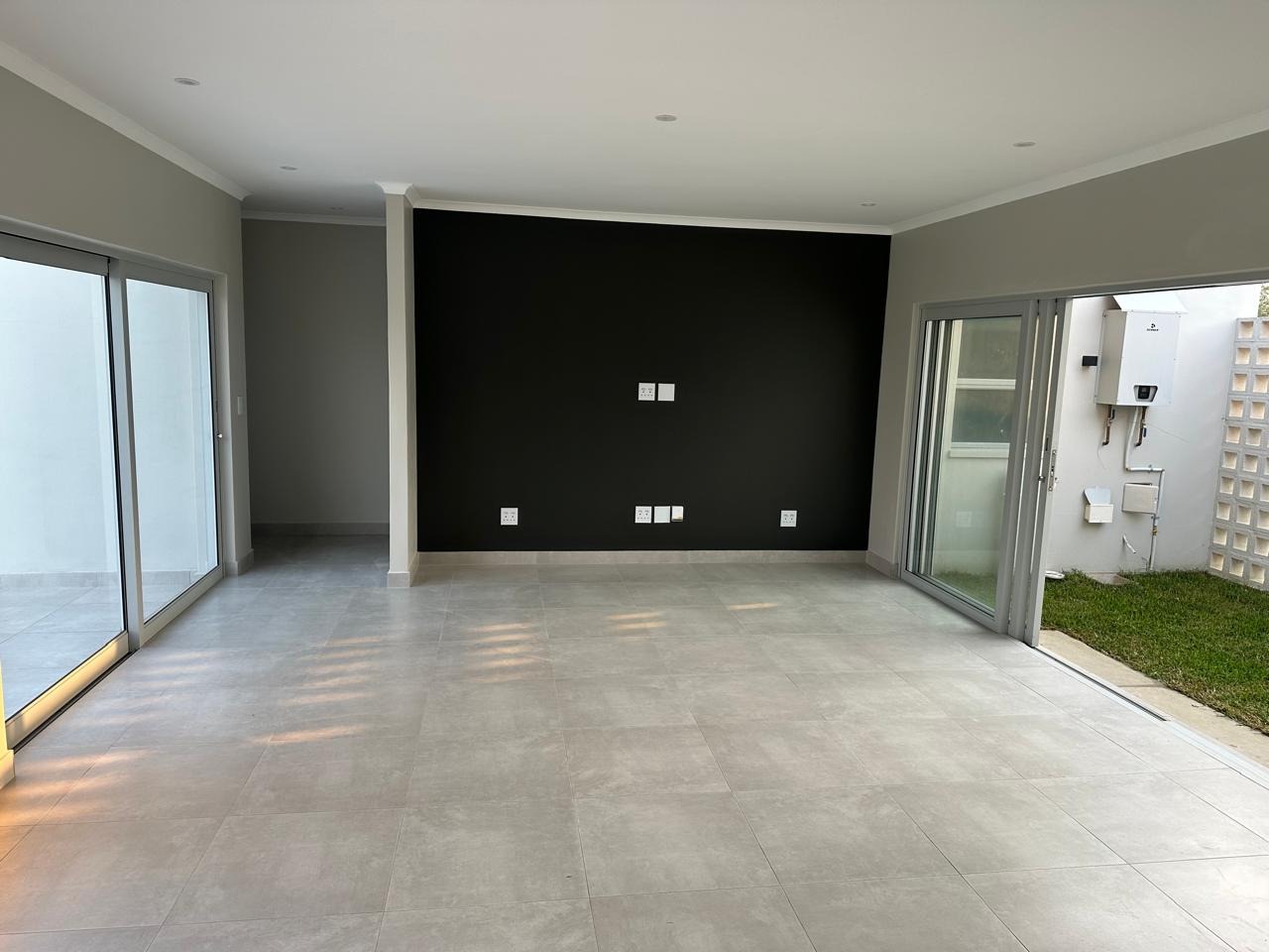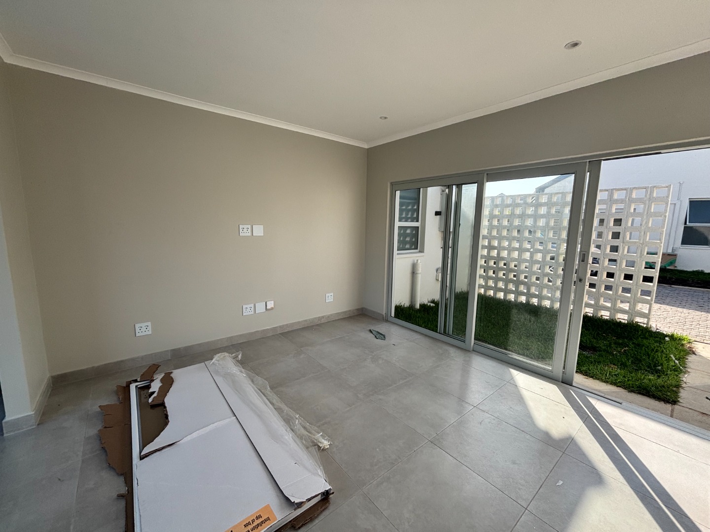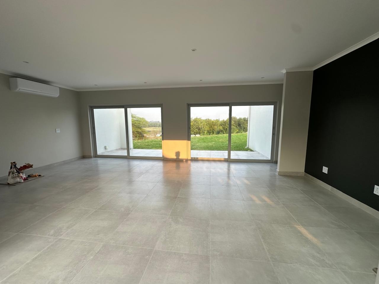 This modern home offers three bedrooms and two bathrooms, featuring an open-plan kitchen and lounge that flow seamlessly onto a covered patio and spacious pet-friendly garden with scenic dam views. All bedrooms are fitted with air-conditioning for year-round comfort. Additional features include a double garage and access to the secure lifestyle offered within Lalela Estate.