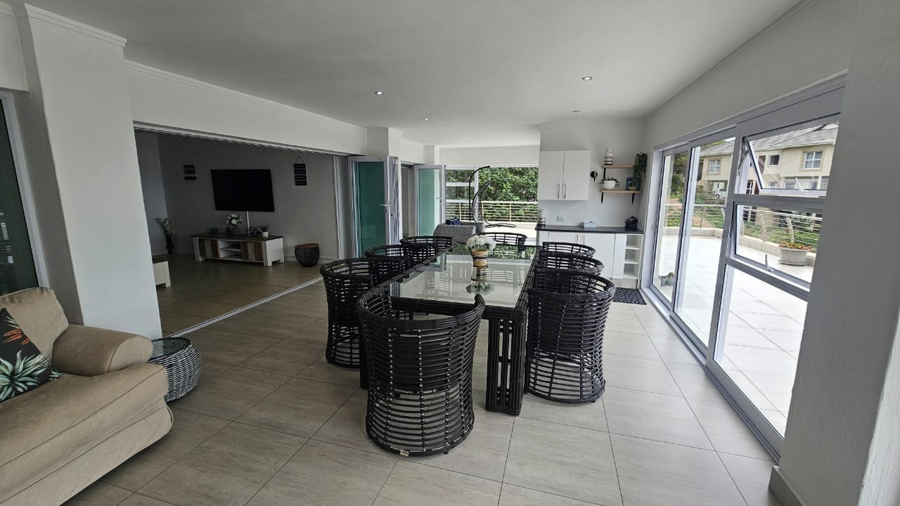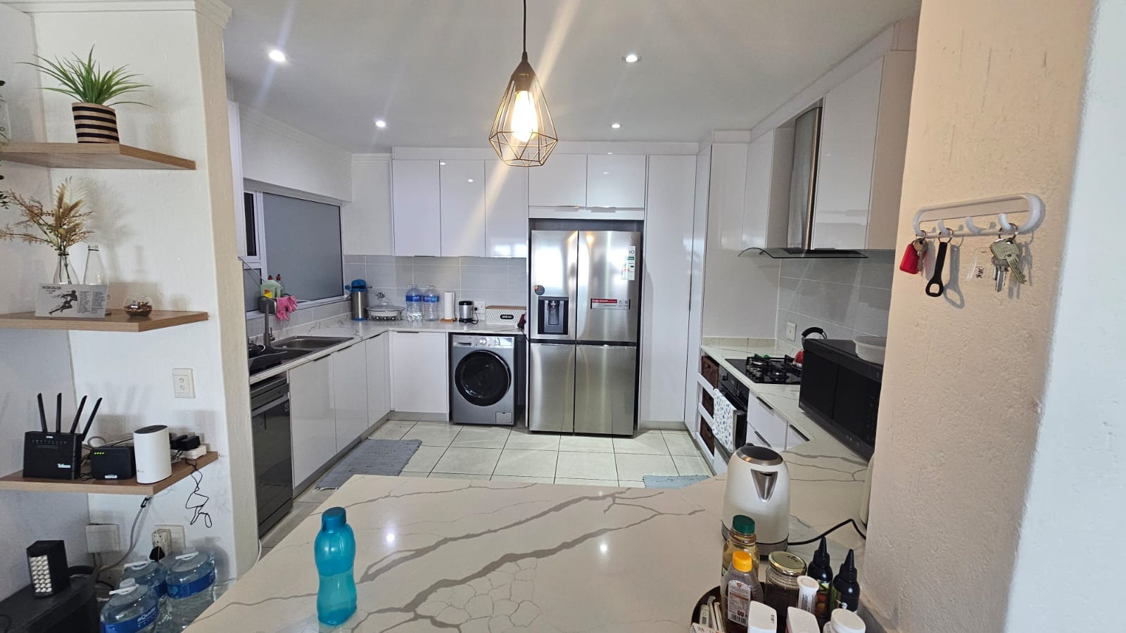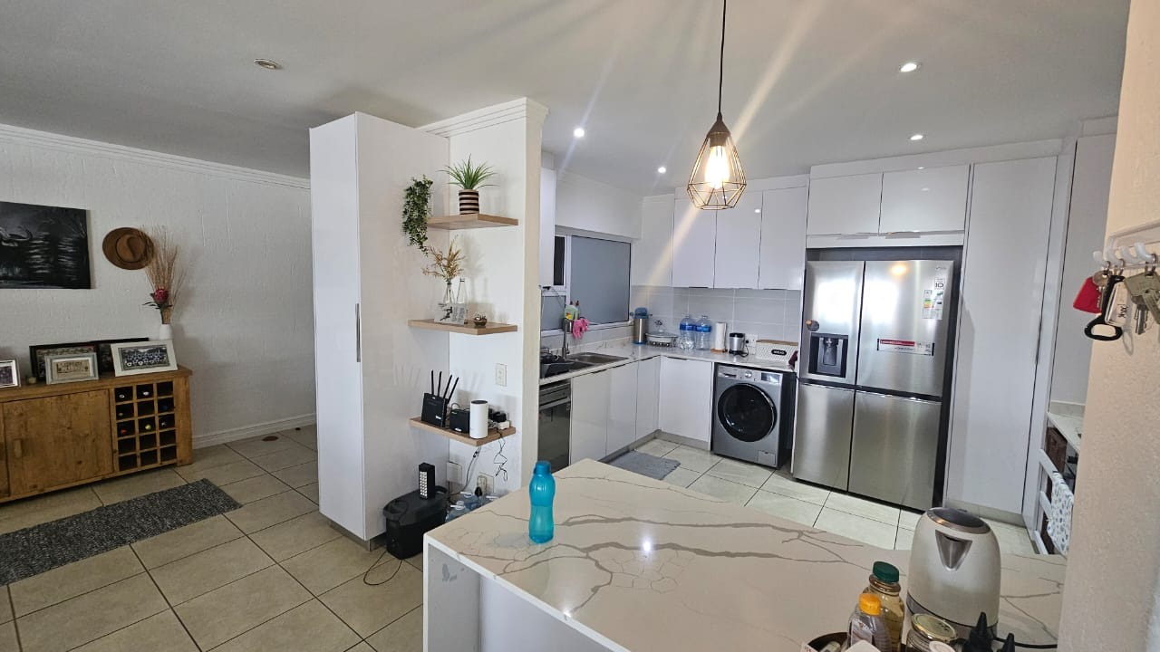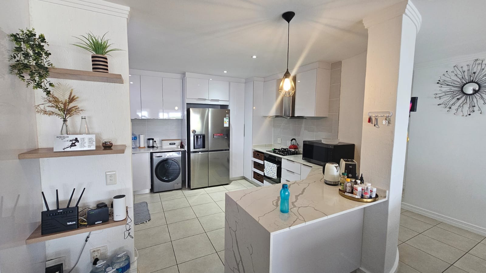 This contemporary 3-bedroom, 2.5-bathroom residence offers an exceptional rental opportunity within a prestigious eco-estate in Ballito. Designed for modern living, the property features an inviting open-plan layout seamlessly connecting the lounge, dining area, and a state-of-the-art kitchen. The kitchen boasts sleek, high-gloss white cabinetry, stylish marble-look countertops, and space for a fridge, washing machine and dishwasher. An elegant island serves as both a breakfast bar and additional workspace, complemented by practical tiled flooring throughout the main living areas and efficient air conditioning for year-round comfort. A dedicated workspace nook provides added functionality.