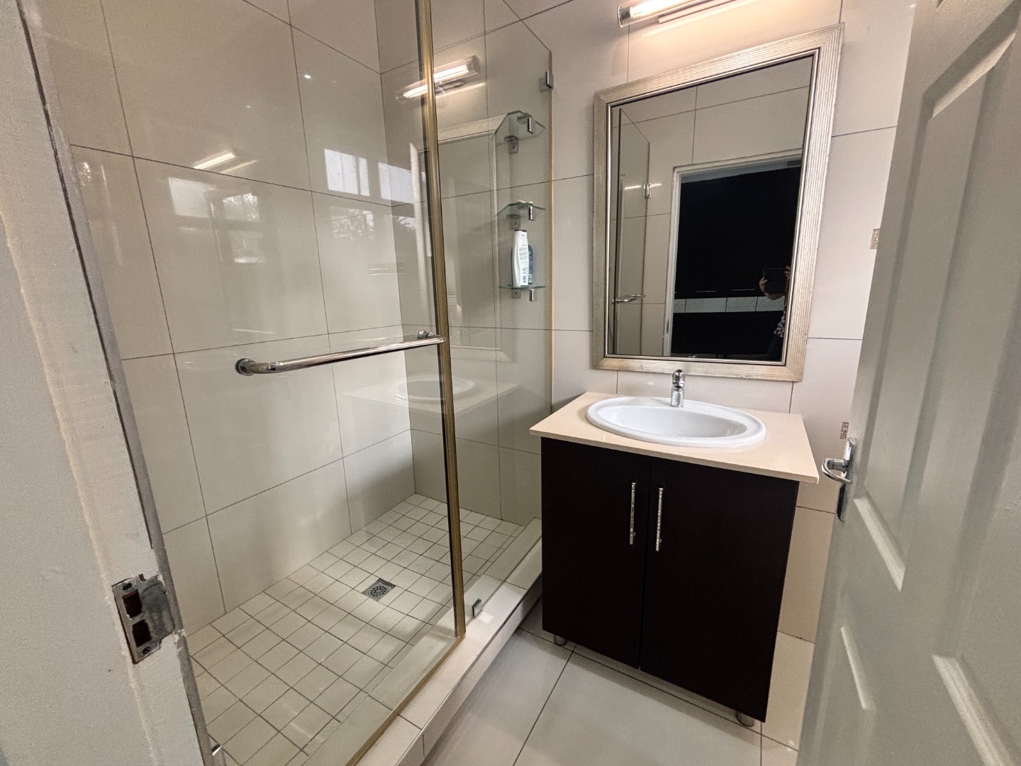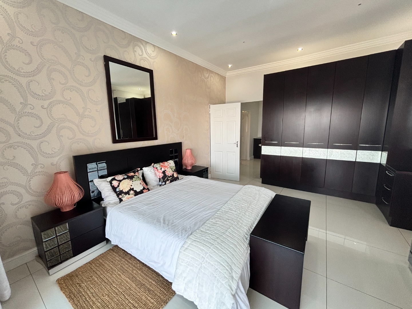 This semi-furnished 1-bedroom, 1-bathroom apartment in Westbrook, Tongaat offers comfortable coastal living. The modern kitchenette features an integrated oven and hob with ample built-in storage. The contemporary bedroom boasts extensive built-in wardrobes and tiled flooring, providing direct access to a private balcony. The sleek bathroom includes a glass-enclosed shower and modern vanity. Residents benefit from a private swimming pool and dedicated parking. Ideal for a single professional.