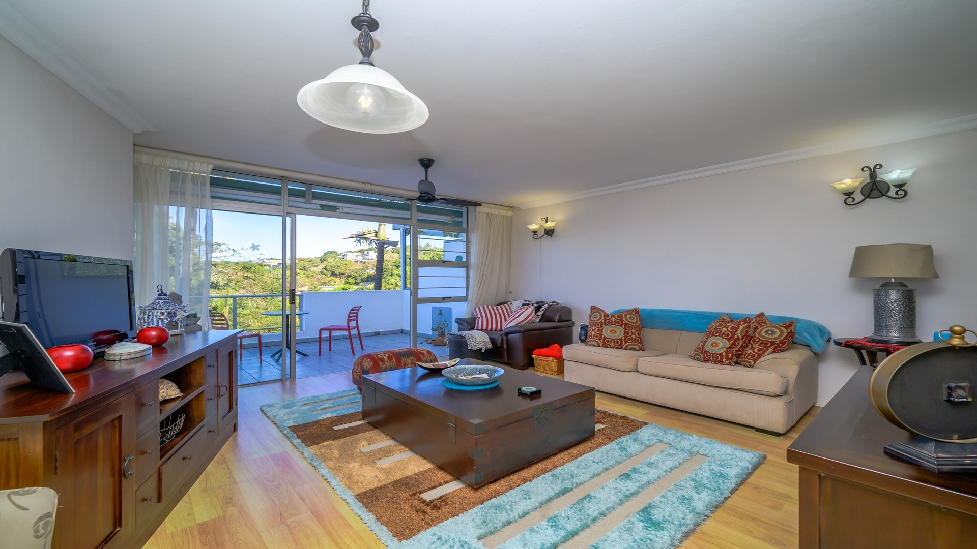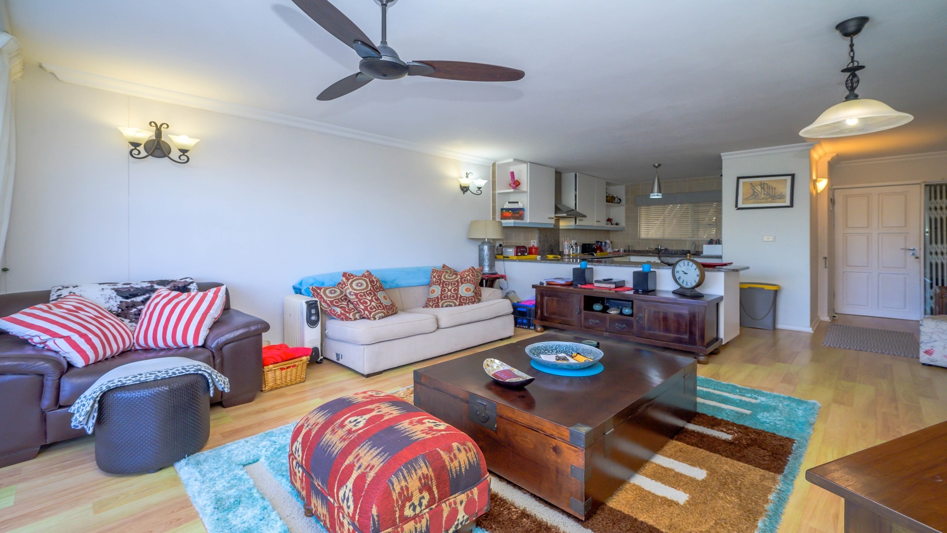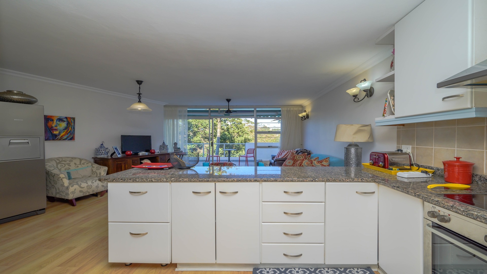 Featuring three bedrooms and two bathrooms, this home offers an open-plan living area that seamlessly flows onto a balcony, ideal for outdoor entertainment. Two of the three bedrooms have direct access to the balcony, enhancing the indoor-outdoor living experience.