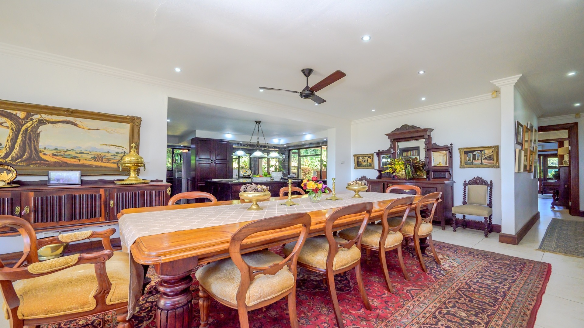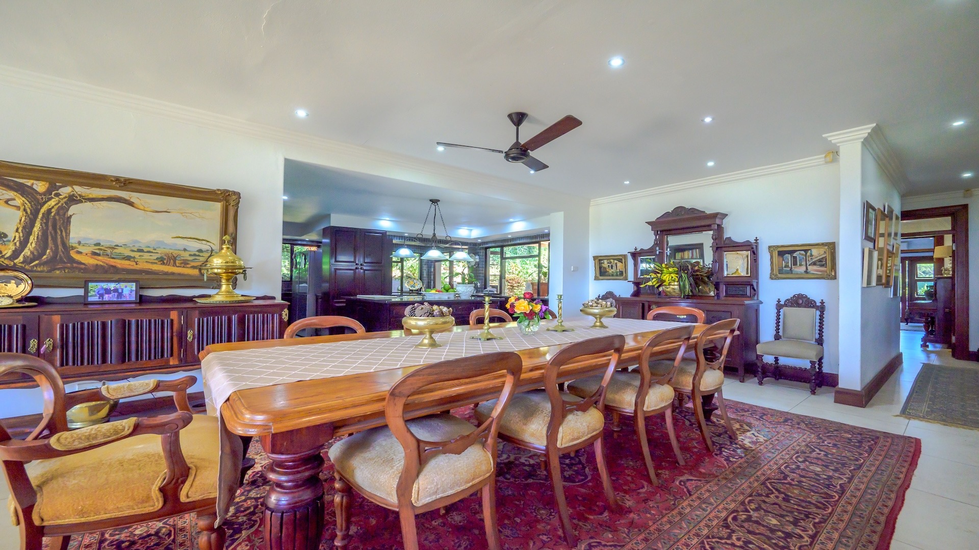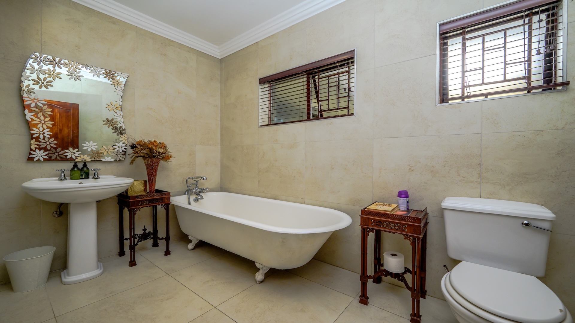 Step inside to discover an inviting, open-plan layout that exudes warmth and charm. This lived-in, much-loved residence boasts 3 spacious bedrooms, 3 well-appointed bathrooms, a cozy pajama lounge, a study (or possibly a 4th bedroom), and both formal and informal living areas — including a welcoming TV room and a classic sitting room. The large dining area and generous kitchen are complemented by a separate scullery, ideal for seamless hosting and family gatherings.